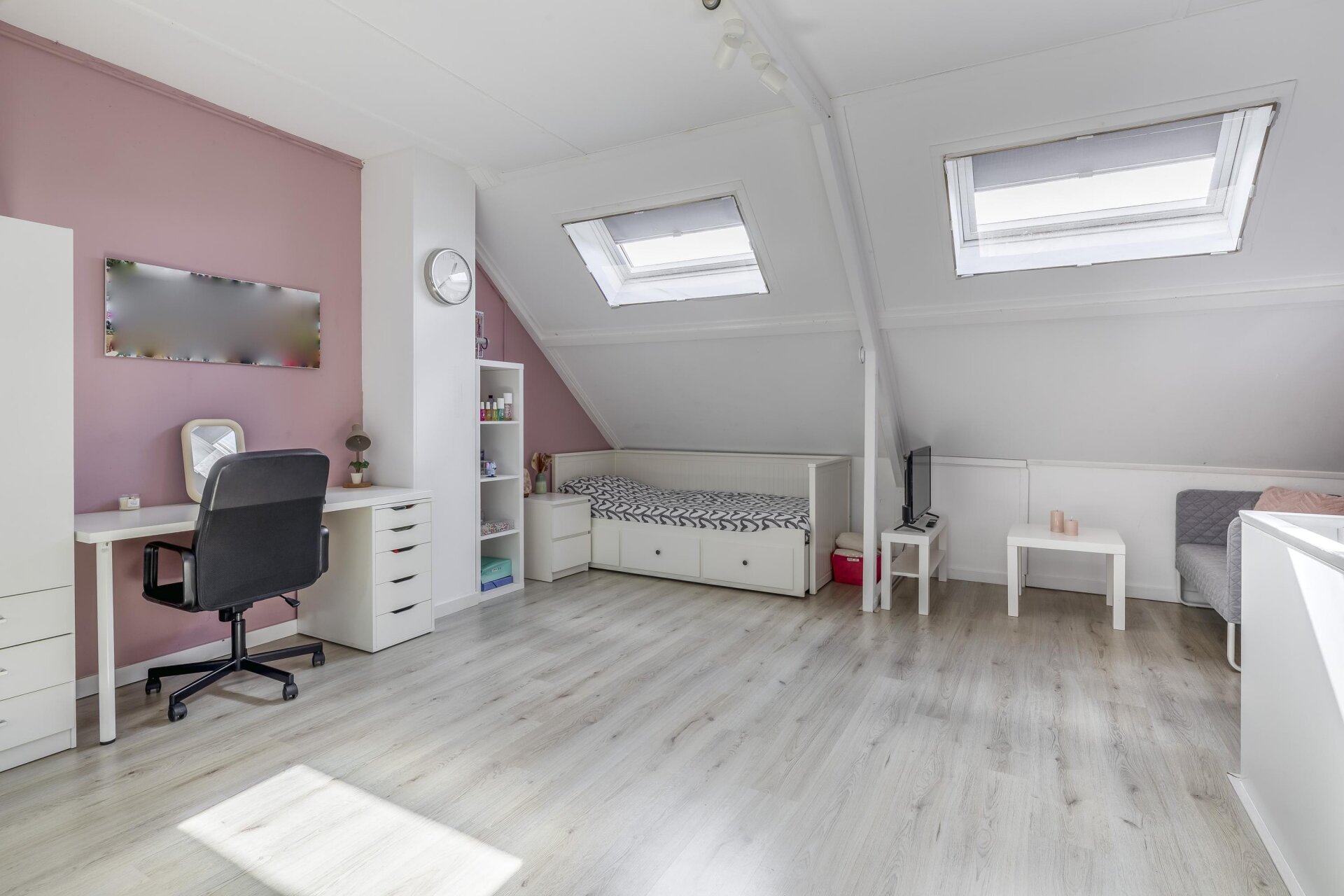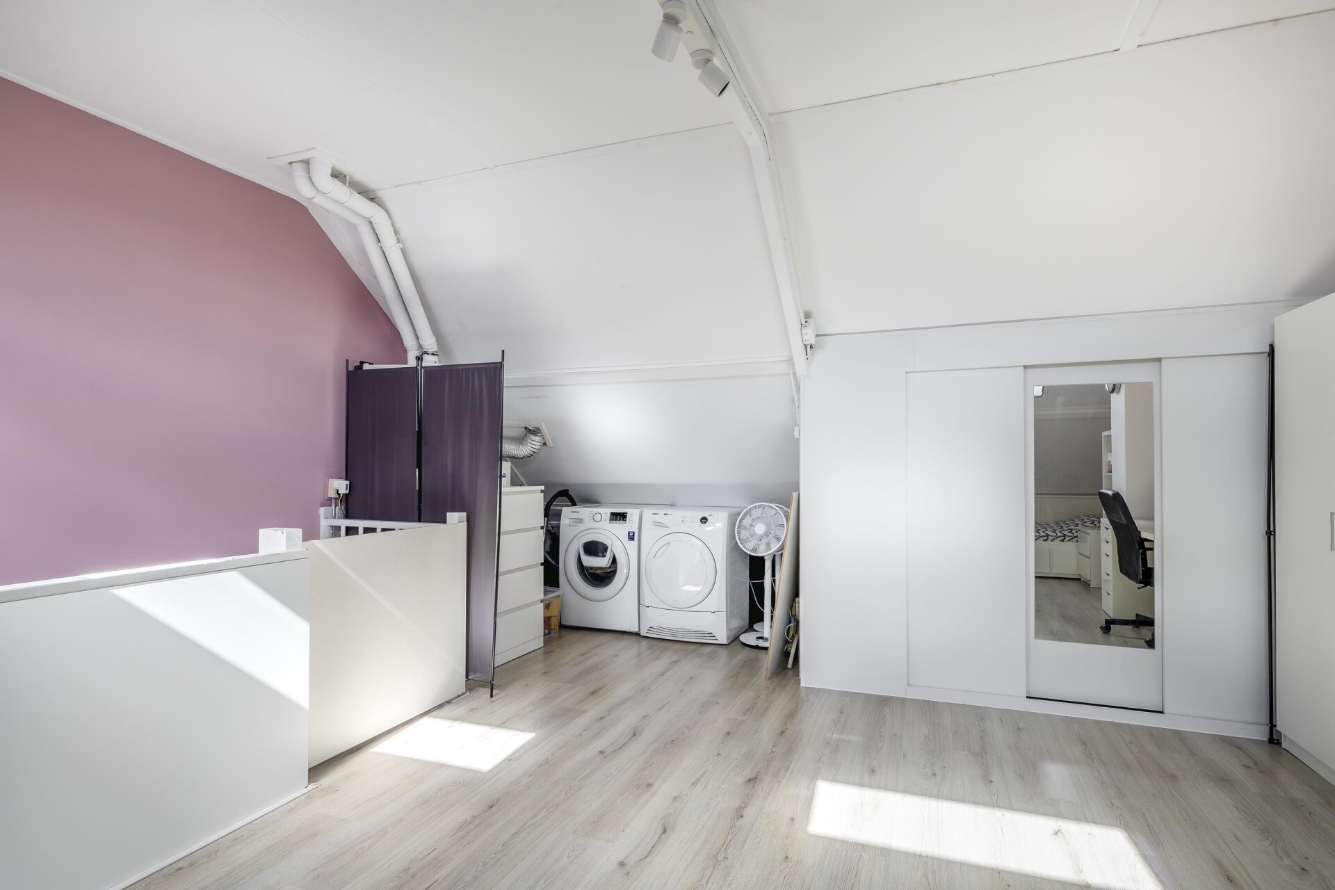 De zolderverdieping is een volwaardige vierde slaapkamer met veel ruimte en opbergruimte achter de knieschotten. Ook vind je hier aansluitingen voor de wasmachine en droger.
