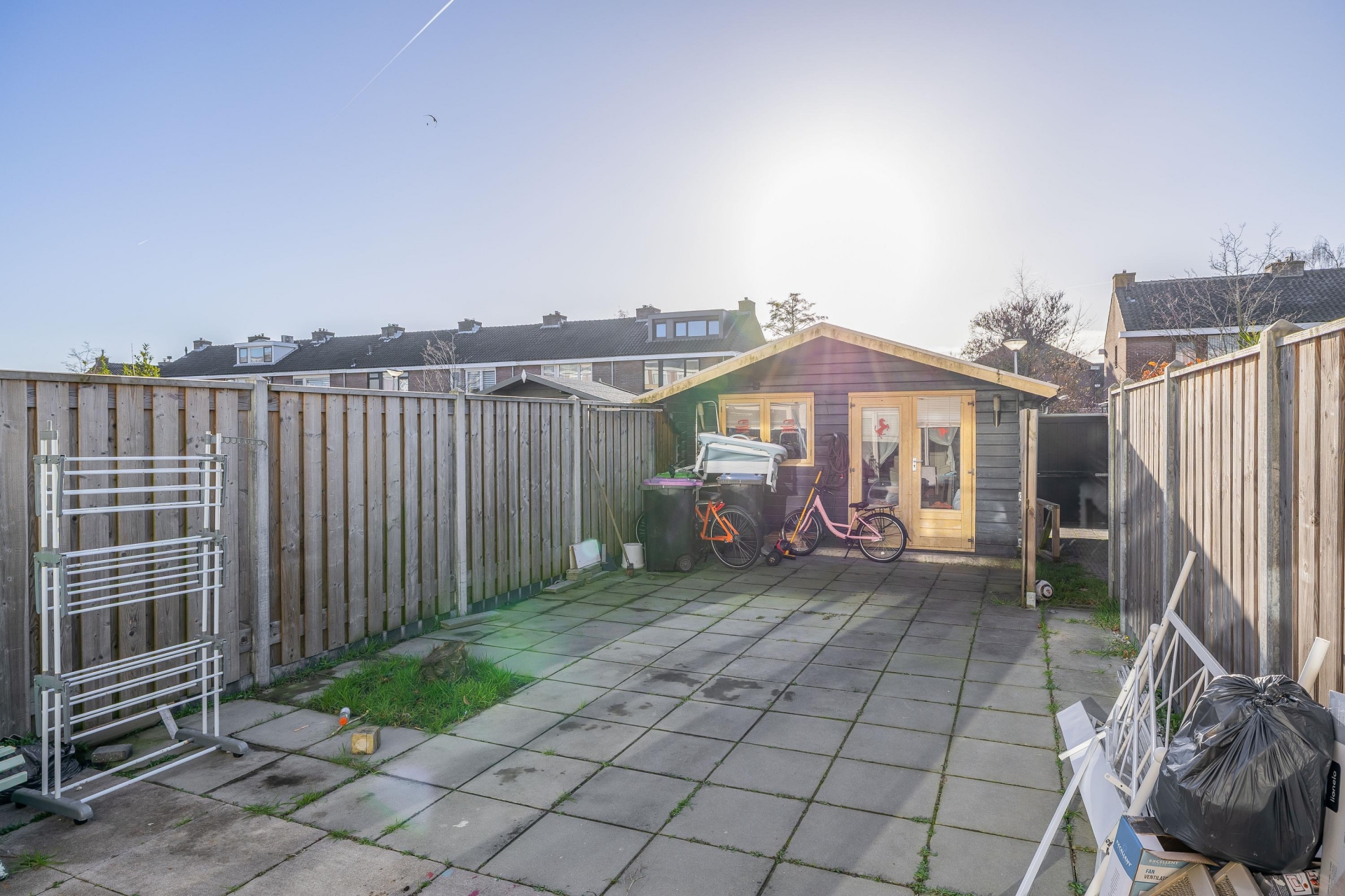 De woning is netjes onderhouden en voorzien van rolluiken, 10 zonnepanelen en kunststof kozijnen met dubbel glas. Verwarming en warm water verlopen via een Vaillant HR-combiketel uit 2021, die in eigendom is. De tuin is bereikbaar via een achterom en biedt volop privacy en zonuren. Aan de voorzijde is er parkeergelegenheid op eigen terrein.