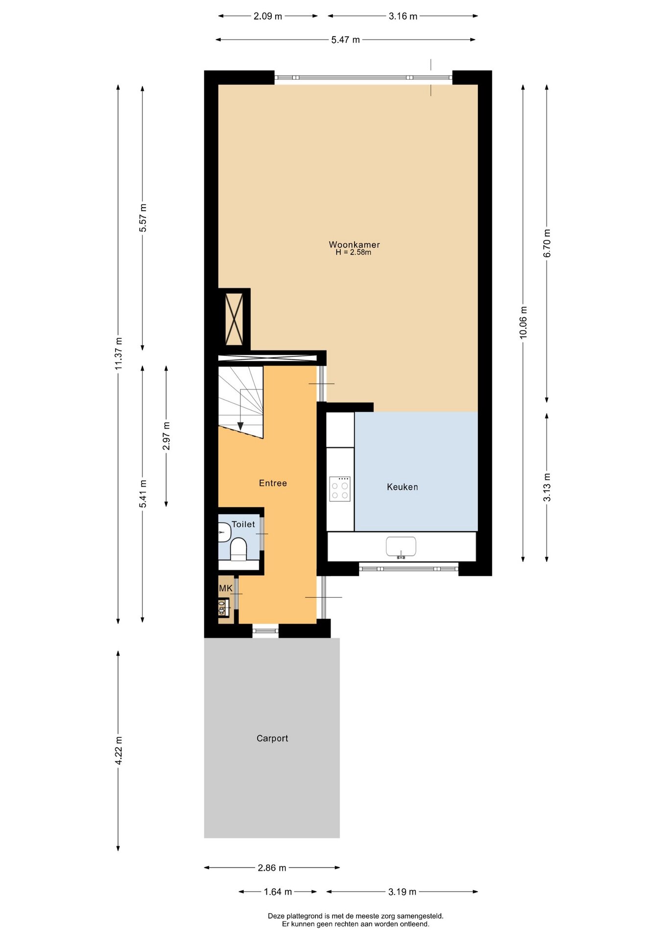 “Deze informatie is door ons met de nodige zorgvuldigheid samengesteld. Onzerzijds wordt echter geen enkele aansprakelijkheid aanvaard voor enige onvolledigheid, onjuistheid of anderszins, dan wel de gevolgen daarvan. Alle opgegeven maten en oppervlakten zijn indicatief.”