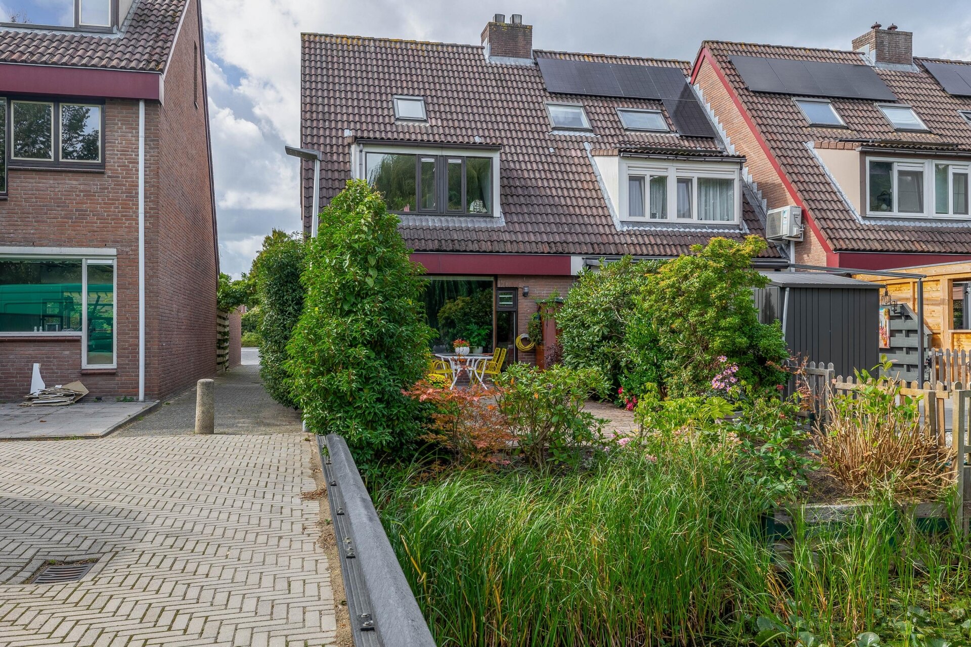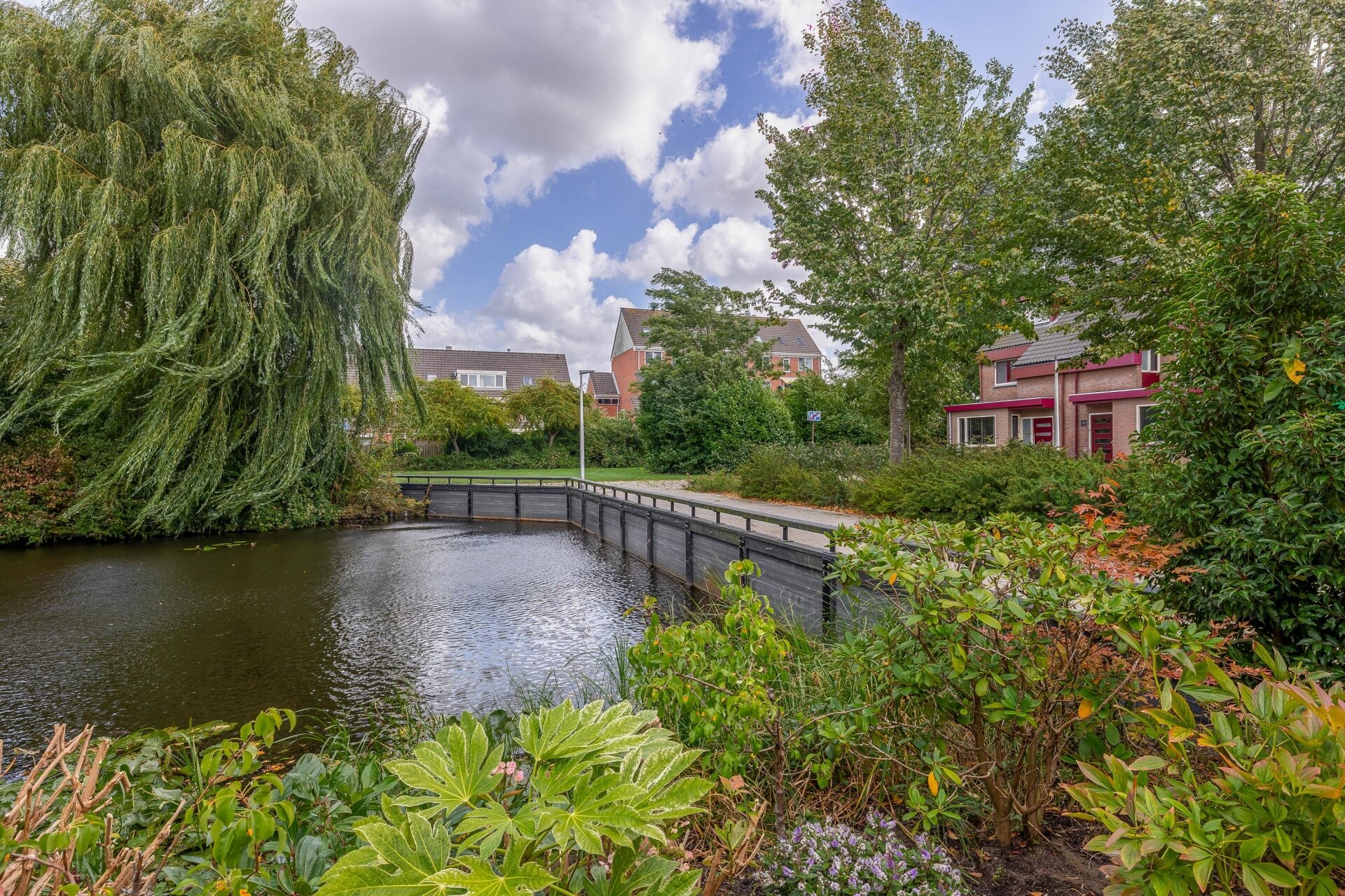 Een van de absolute pluspunten van dit huis is de achtertuin. Gelegen op het oosten betekent dat: zon in de ochtend tot laat in de middag, met voldoende schaduw op warme dagen. De tuin grenst direct aan het water, wat zorgt voor een bijzonder vrij gevoel. Of je nu met een kop koffie achter zit, een boek leest of de kinderen ziet spelen – hier ervaar je dagelijks het buitenleven in je eigen achtertuin.