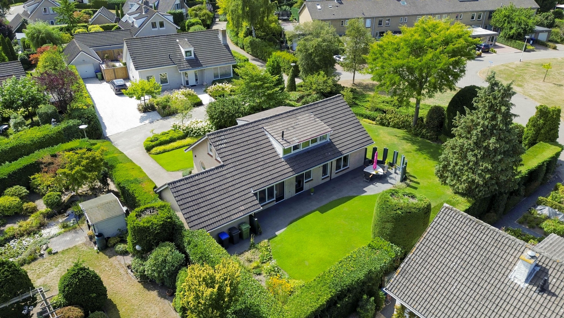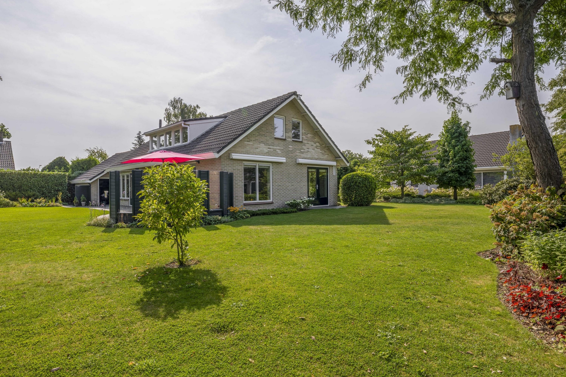 De tuin is absoluut een sterk punt van deze woning. Met een ligging op het noorden, westen en zuiden is er altijd wel een plekje in de zon of juist in de schaduw. Aan de zijkant van het huis kun je heerlijk beschut zitten, terwijl je aan de achterkant volop privacy hebt. De tuin is verzorgd aangelegd en makkelijk te onderhouden, maar biedt ook ruimte genoeg voor wie zijn groene vingers de vrije loop wil laten. En heb je een hobby of behoefte aan extra bergruimte? Dan is de garage met elektrische deur ideaal. Deze biedt volop plek voor fietsen, gereedschap of het parkeren van je auto.
