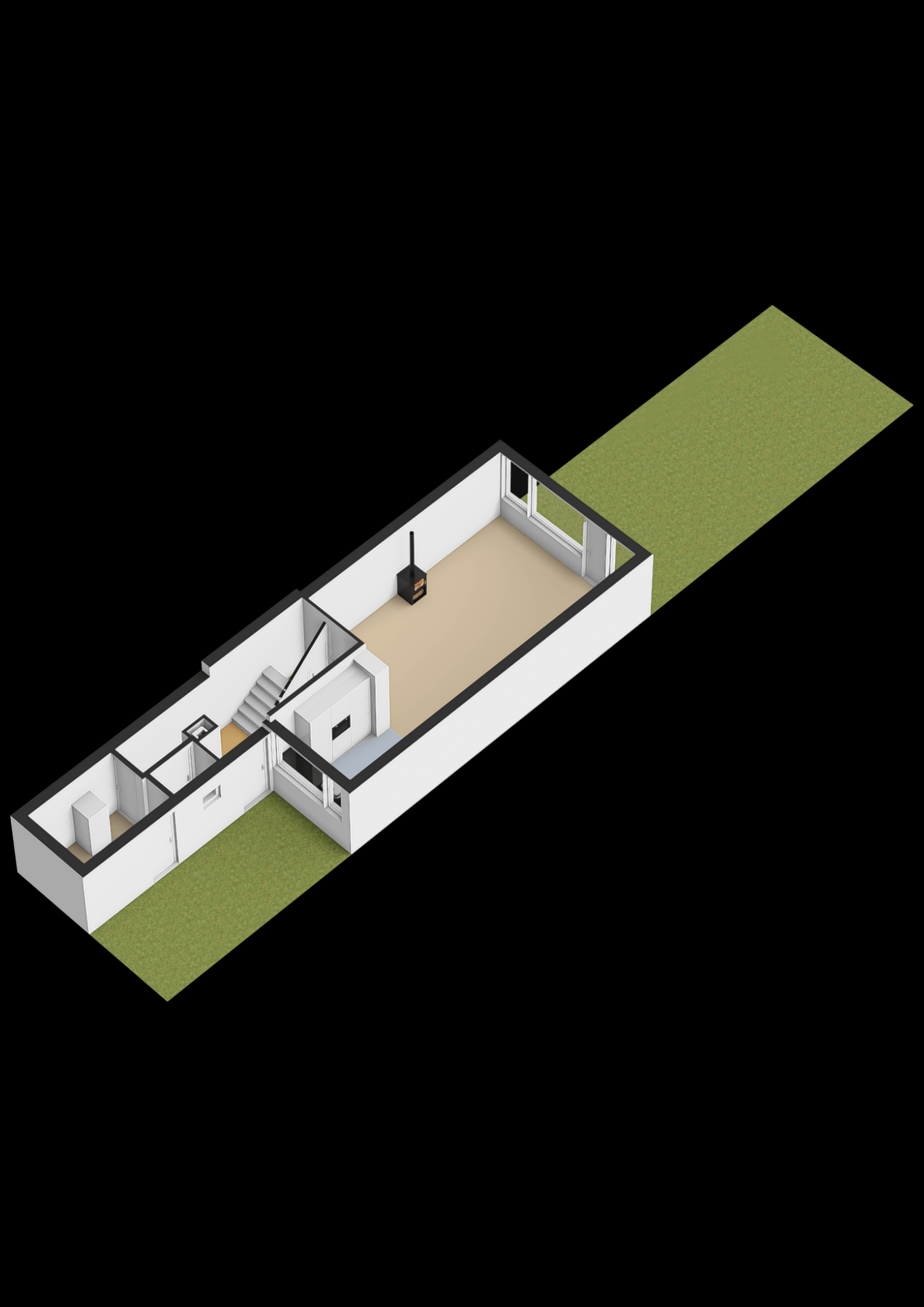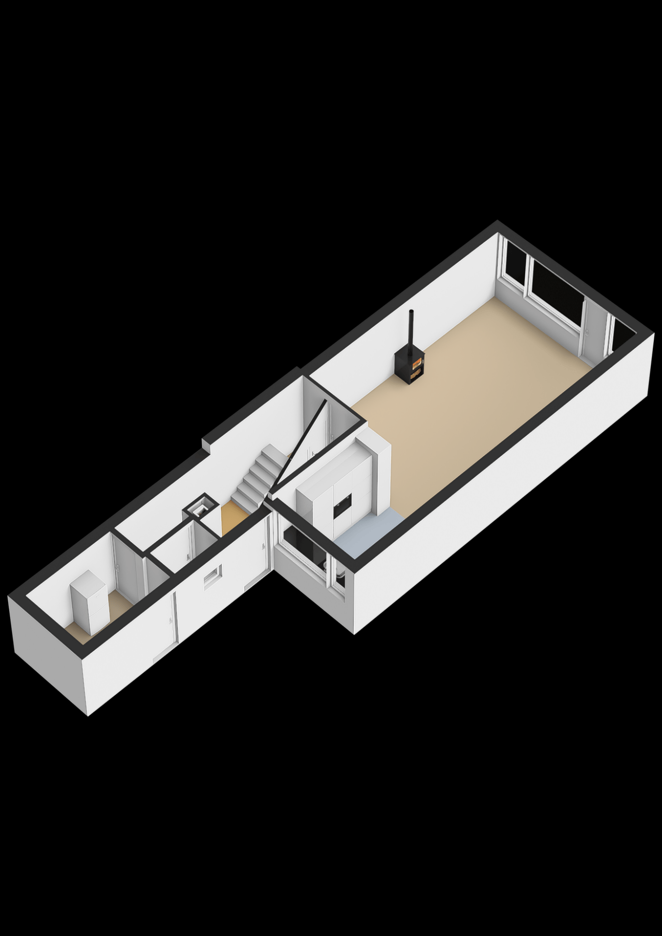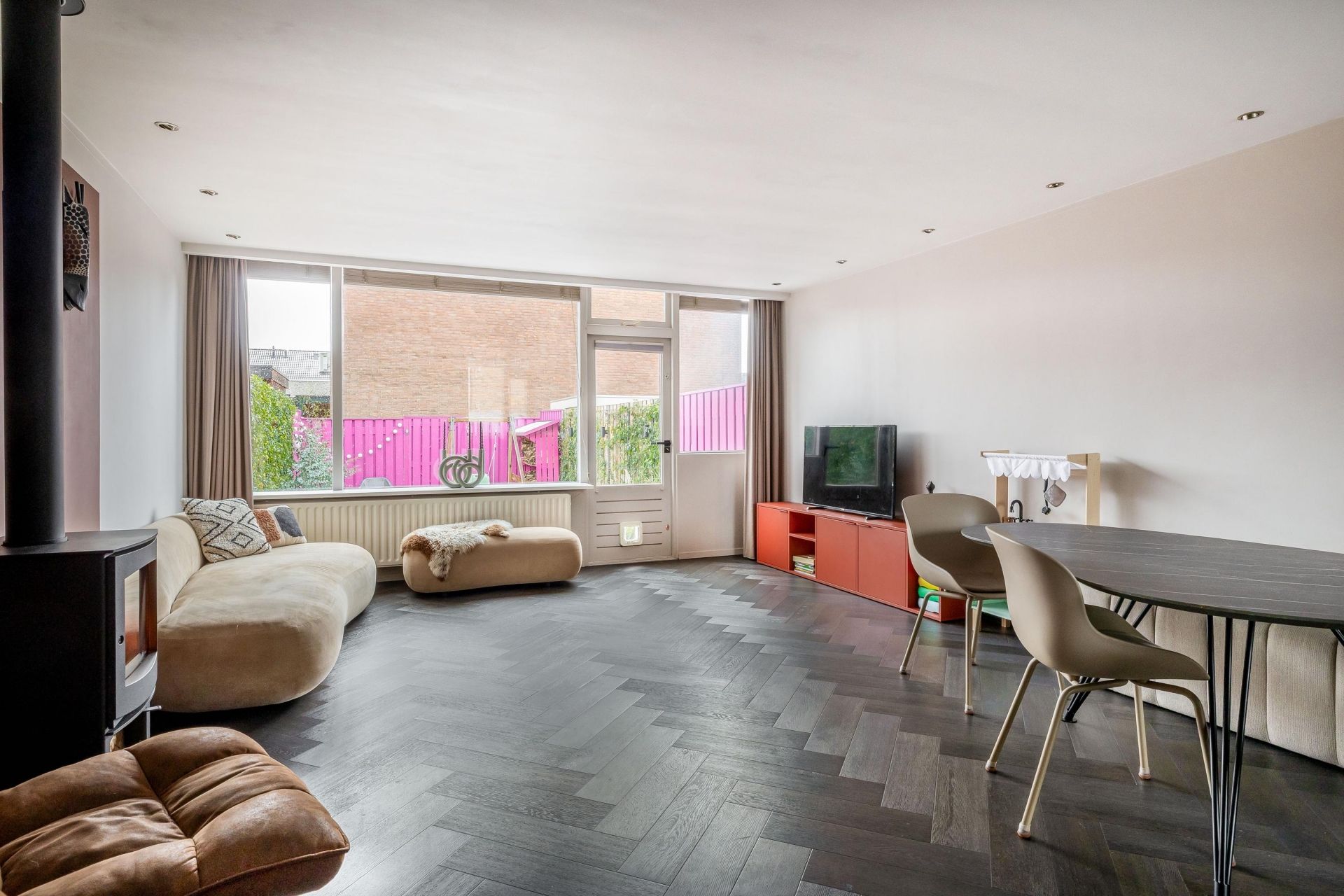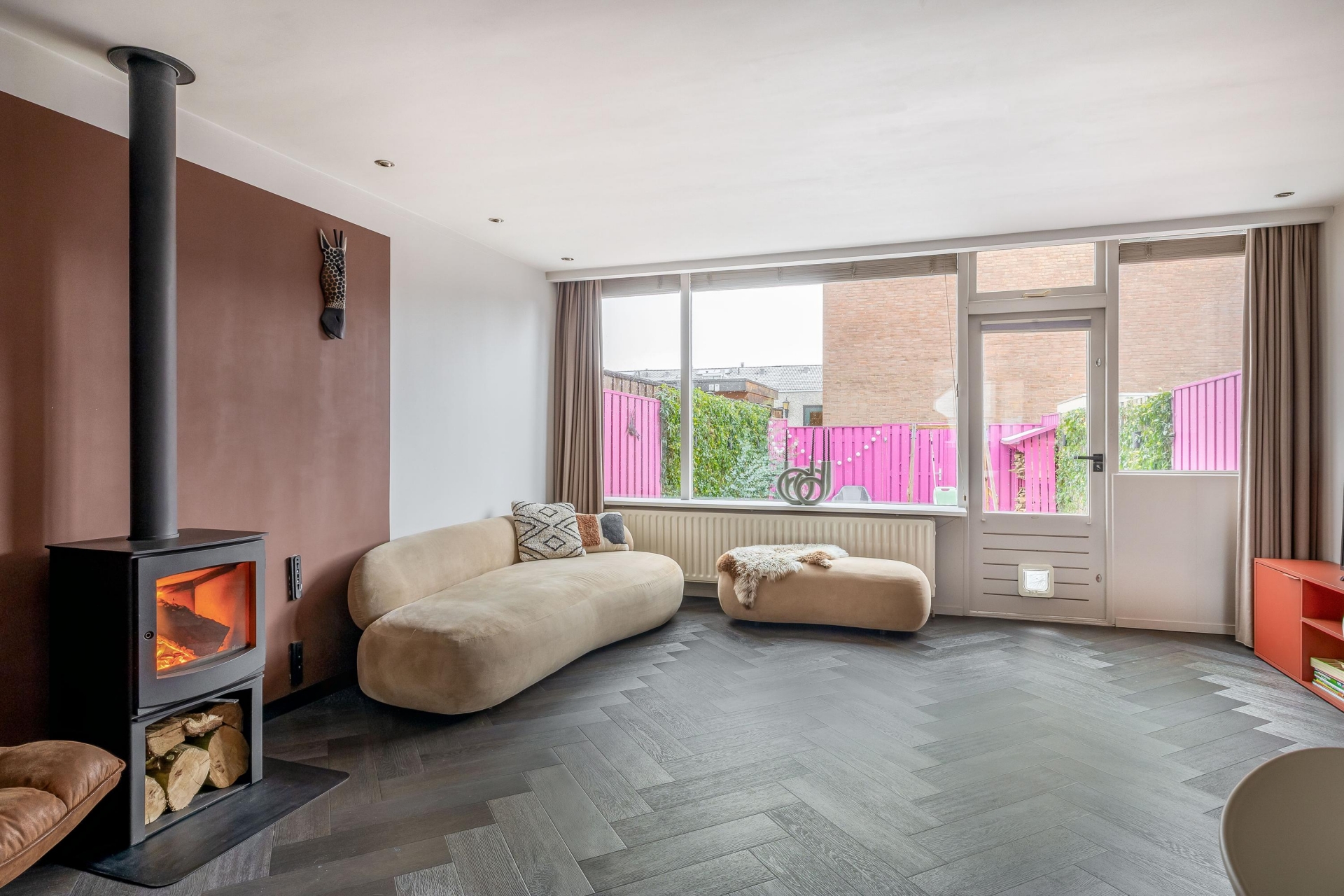Zodra je binnenkomt, ervaar je de warme sfeer van dit huis. De woonkamer is heerlijk licht dankzij de grote ramen aan de voorzijde en tuinkant. Centraal in de ruimte staat een stijlvolle houtkachel die niet alleen voor warmte zorgt, maar ook direct karakter toevoegt aan het geheel. De muren zijn strak gestuukt en de vloer is afgewerkt met een moderne houtlook, wat zorgt voor een frisse en tijdloze uitstraling.