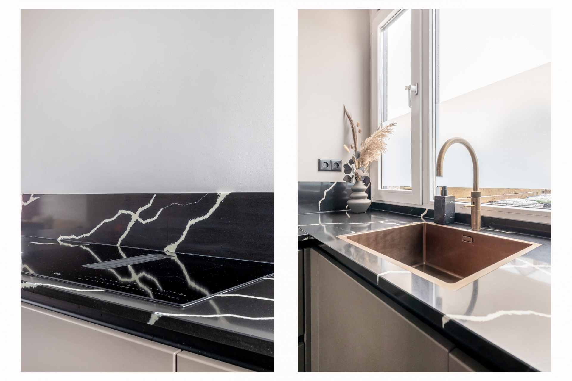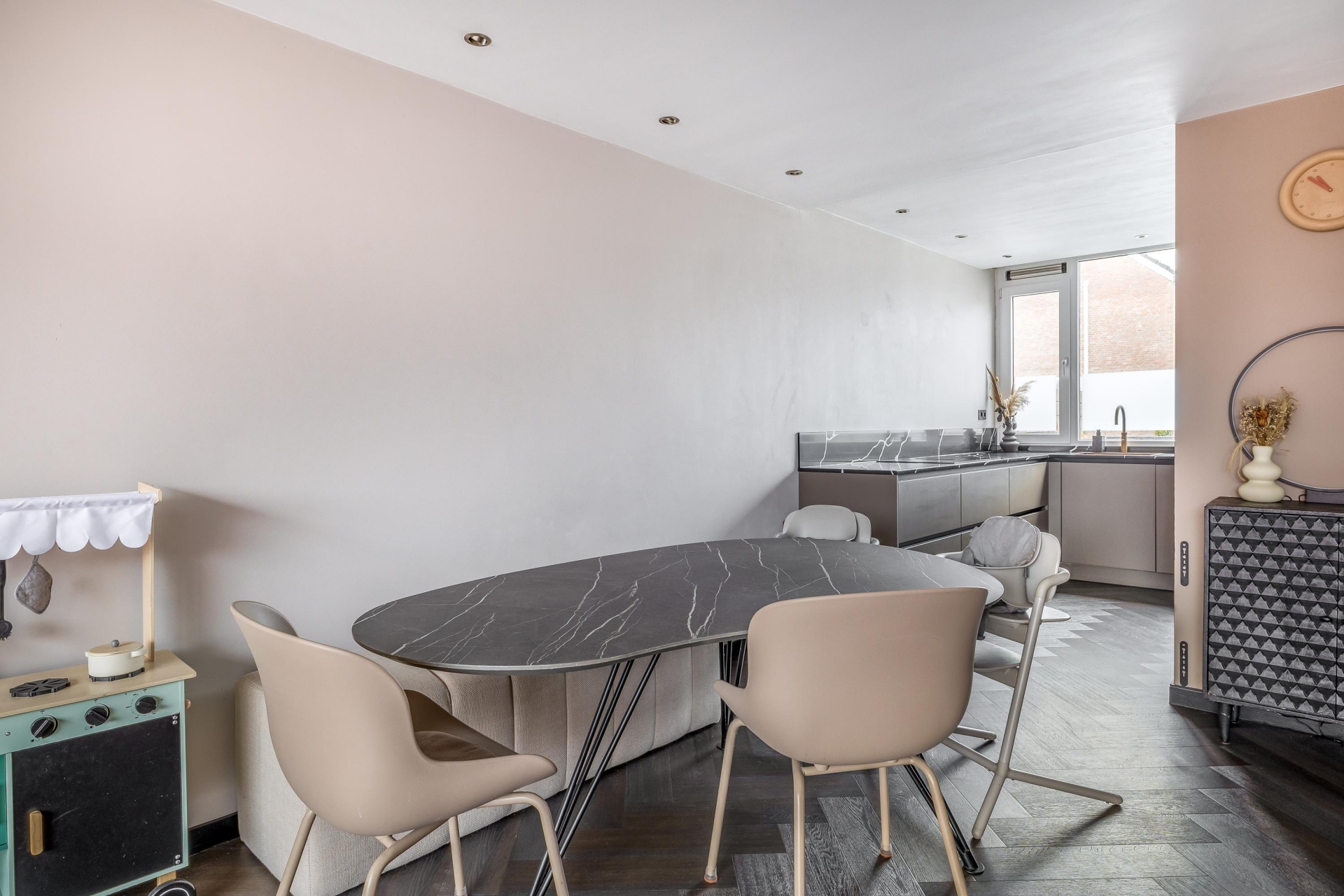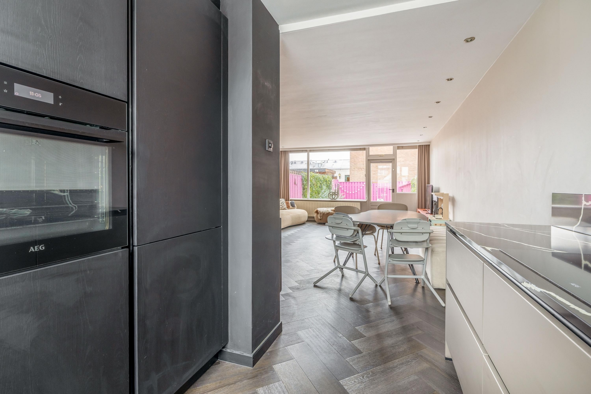 Aan de voorzijde vind je de open keuken die recent volledig is vernieuwd en ingericht met moderne inbouwapparatuur, een fraai werkblad en veel kastruimte. Koken en gezellig samenzijn gaan hier moeiteloos samen. Vanuit de woonkamer heb je toegang tot de tuin, waardoor binnen en buiten mooi in elkaar overlopen.