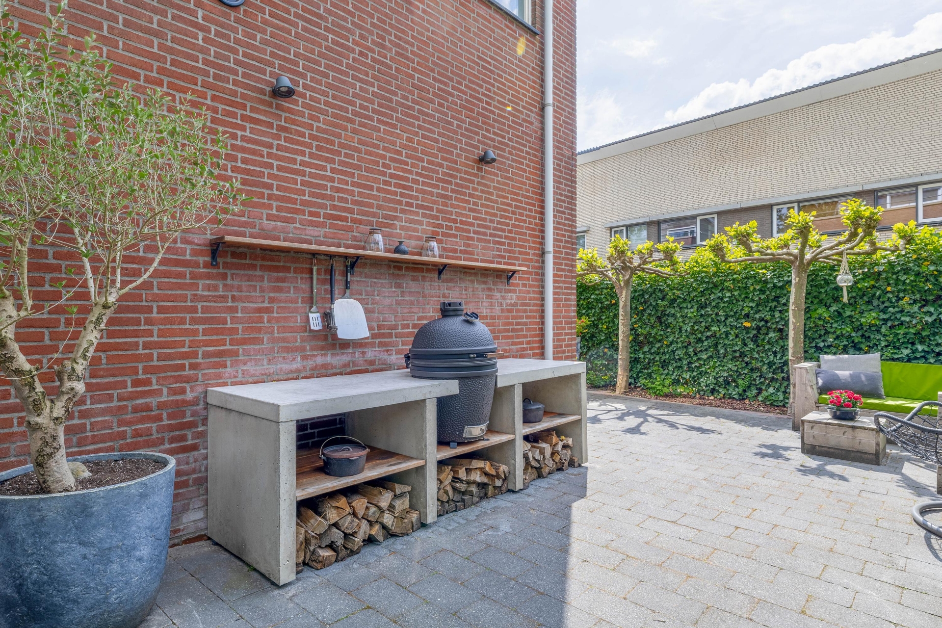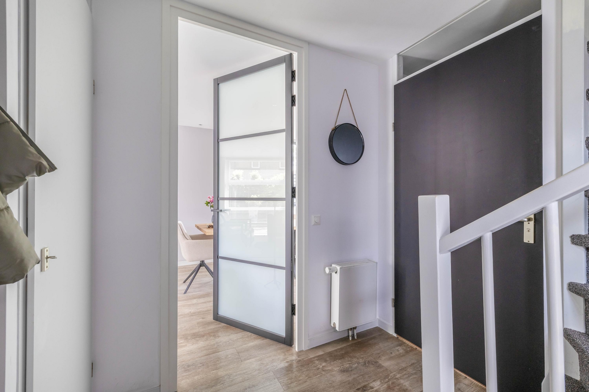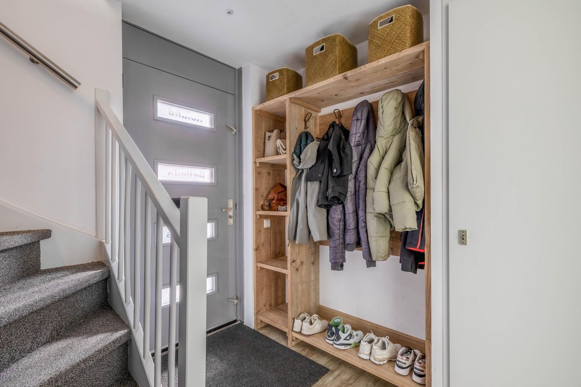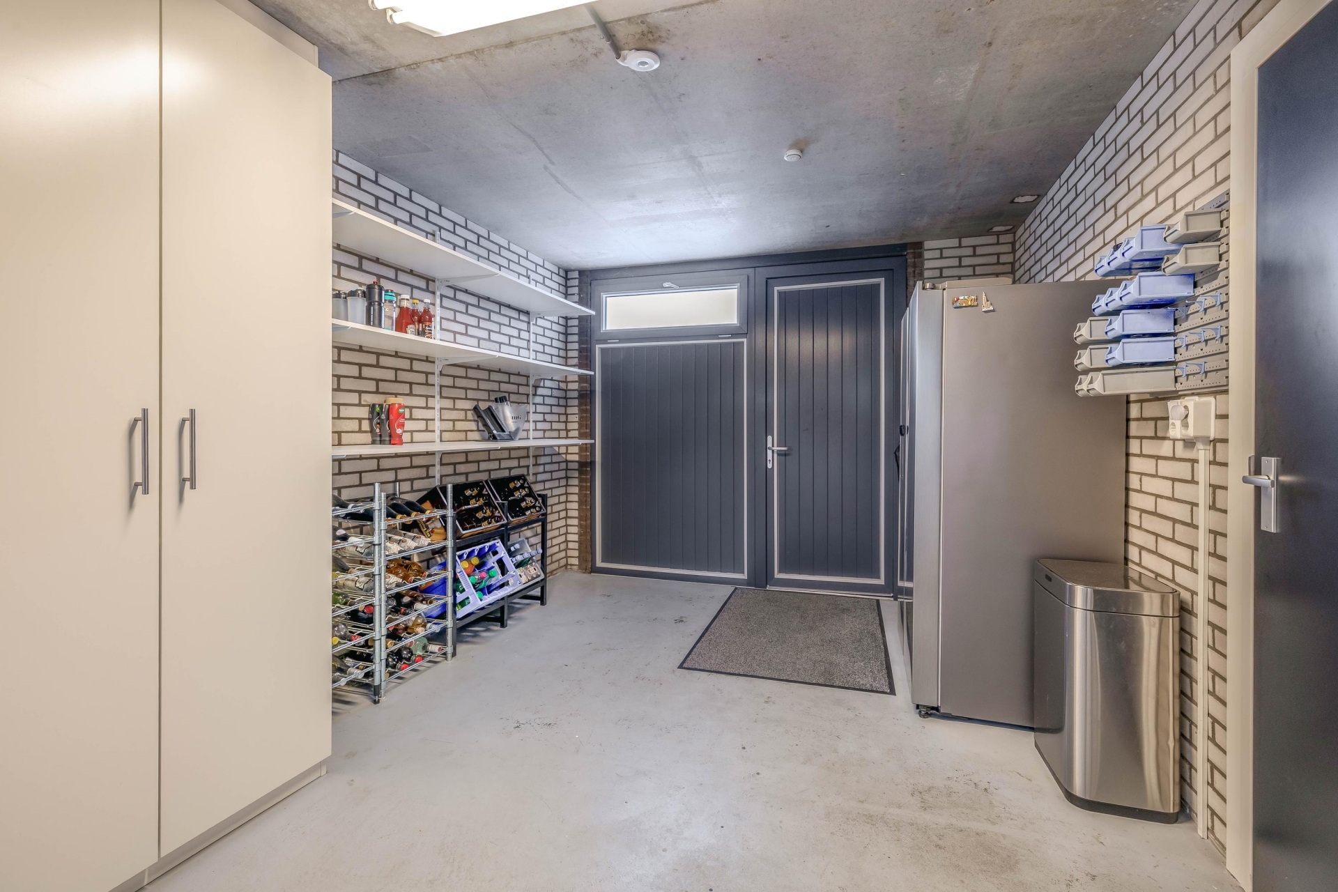 Bij binnenkomst valt direct de royale en lichte woonkamer op. Dankzij de grote raampartijen aan de voorzijde en de stijlvolle afwerking voelt deze ruimte open en uitnodigend. De neutrale vloer en strakke wandafwerking vormen een rustige basis waar elk interieur goed tot z'n recht komt. Vanuit de woonkamer loop je door naar de leefkeuken aan de achterzijde: een plaatje op zich. Hier vind je een luxe keukenopstelling strak werkblad, hoogwaardige inbouwapparatuur en veel lichtinval door het grote raam en de schuifpui naar het terras. Binnen en buiten lopen hier moeiteloos in elkaar over – perfect voor zomerse avonden met familie of vrienden. Via de keuken is er een loopdeur naar de garage/bijkeuken, erg praktisch.