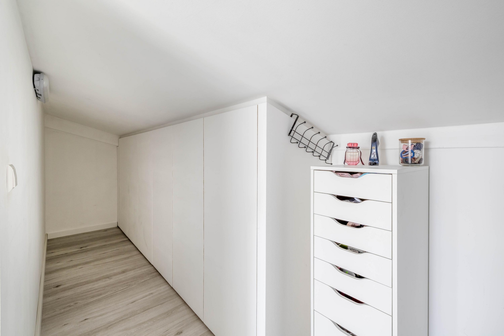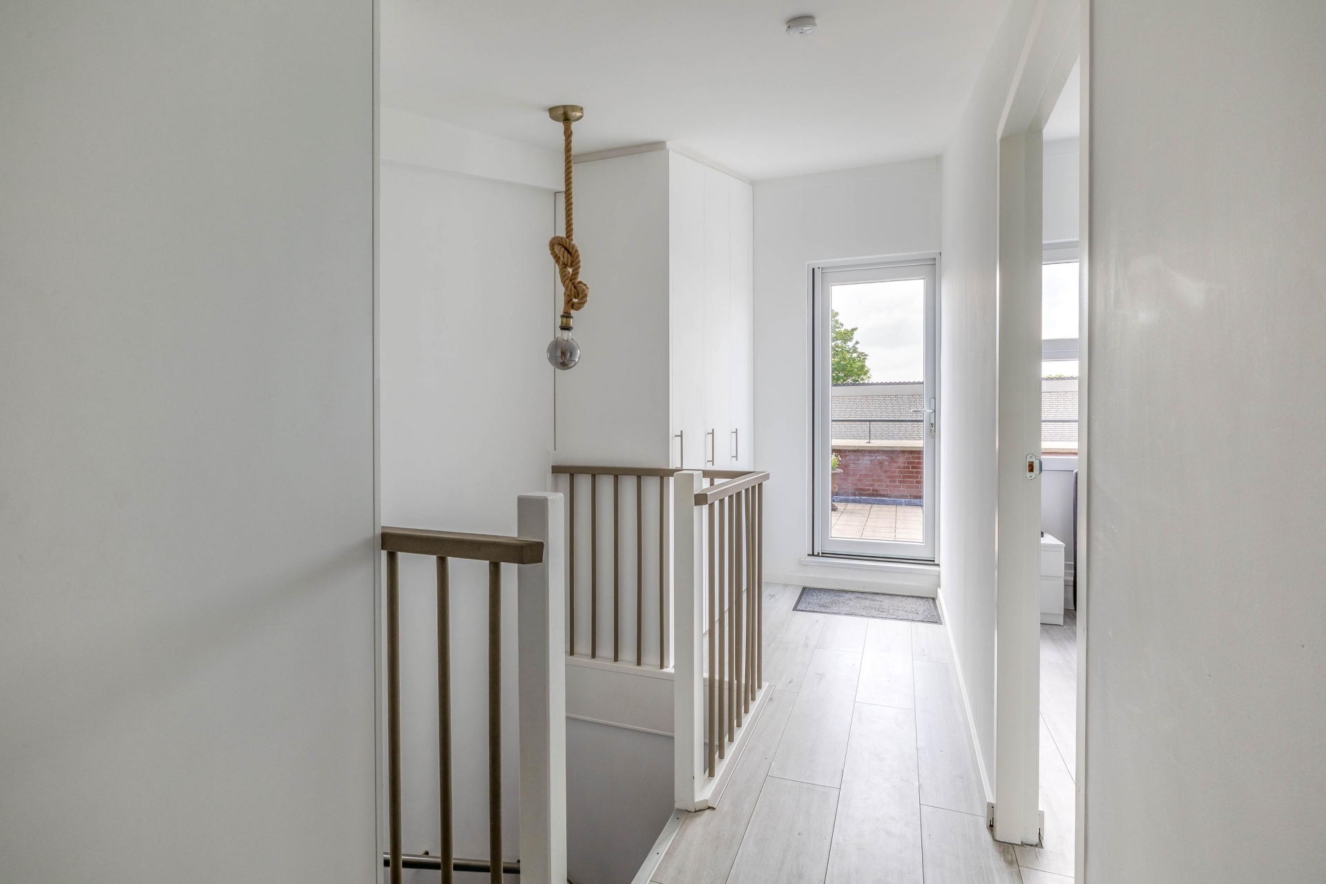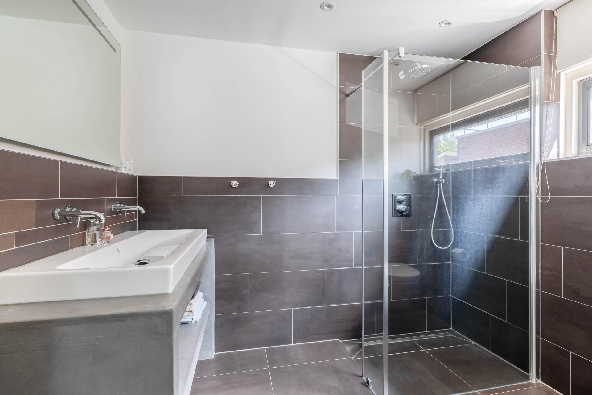 Op de eerste verdieping bevinden zich drie ruime slaapkamers, allen netjes afgewerkt en voorzien van veel lichtinval. De grootste slaapkamer aan de voorzijde is perfect als master bedroom, met ruimte voor een groot bed en een kledingkast. De badkamer is comfortabel en compleet, met onder meer inloopdouche, dubbele wastafel en tweede toilet. De tweede verdieping is ingericht als vierde slaapkamer en geeft toegang tot het heerlijke dakterras. Hier geniet je in de middag en avond van de zon – een ideale plek om te ontspannen, een boek te lezen of even tot rust te komen na een drukke dag.
