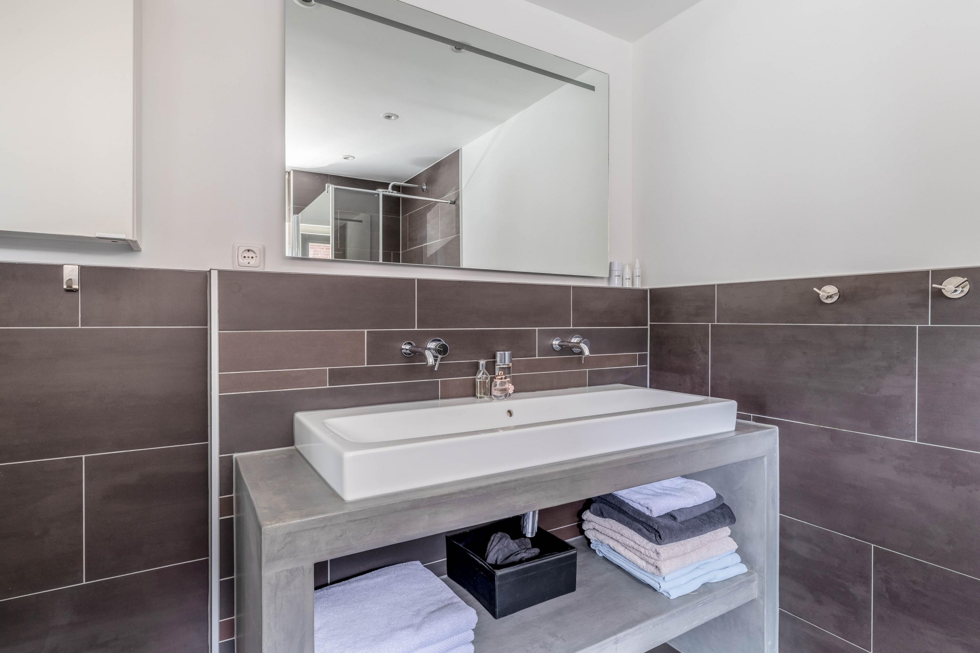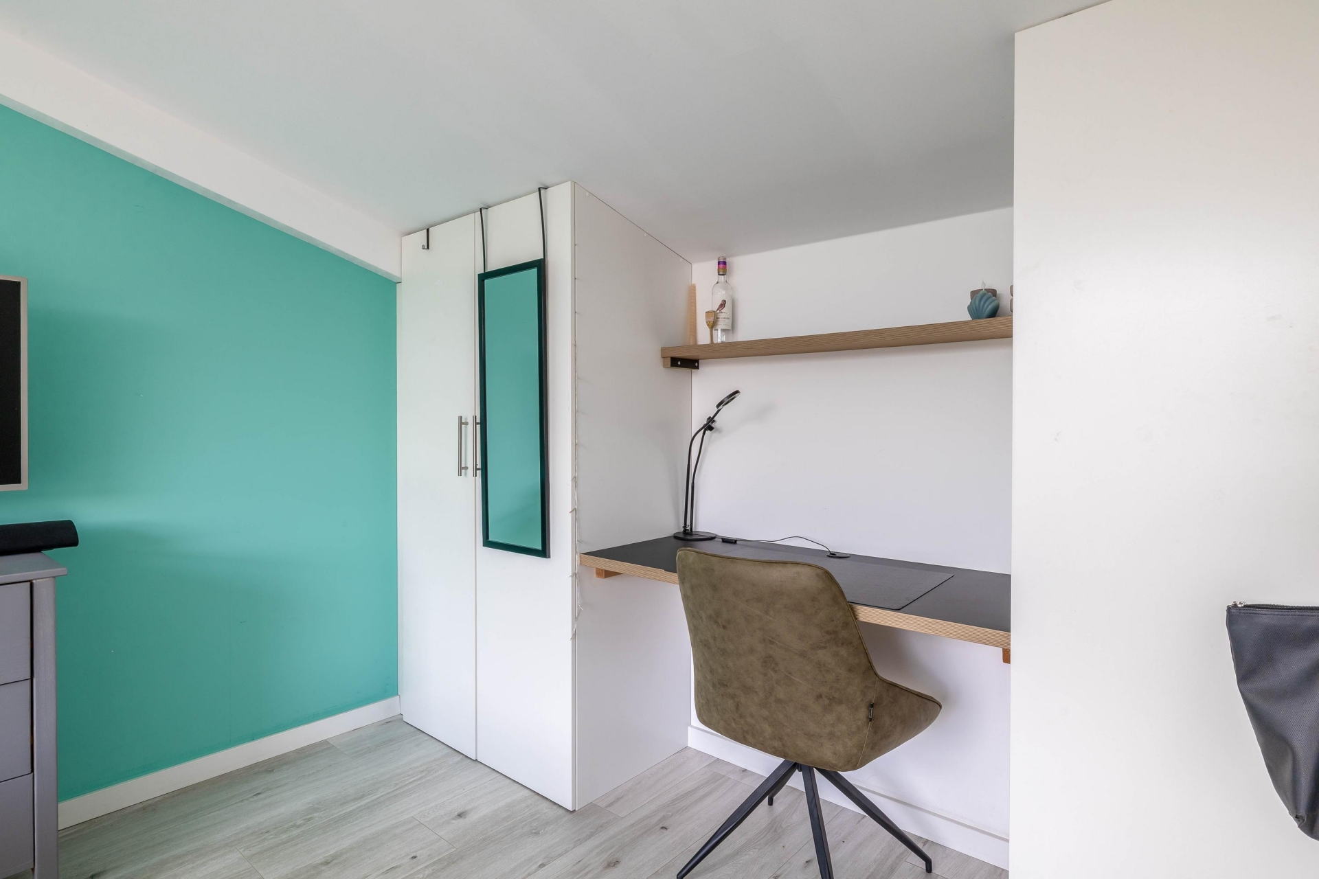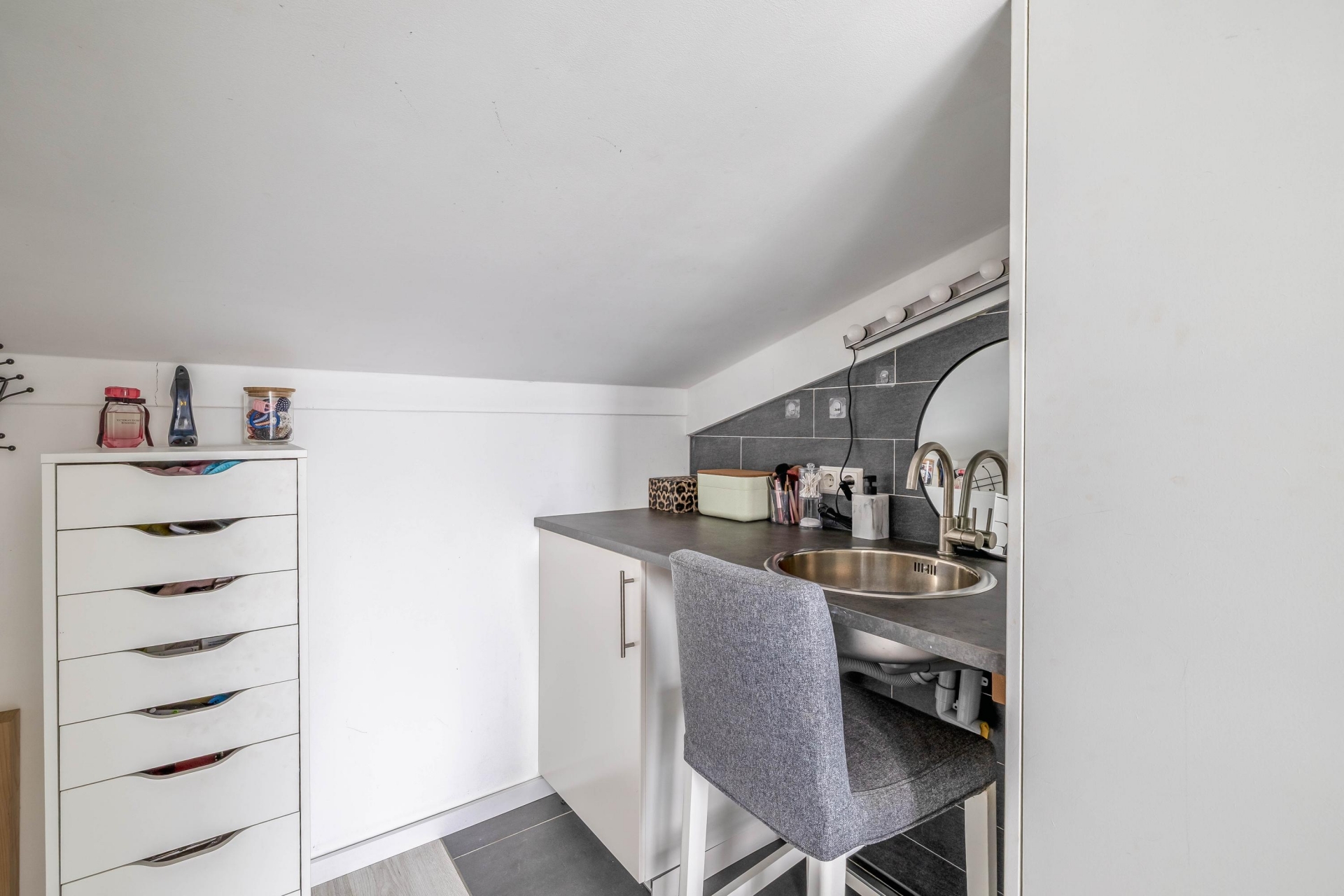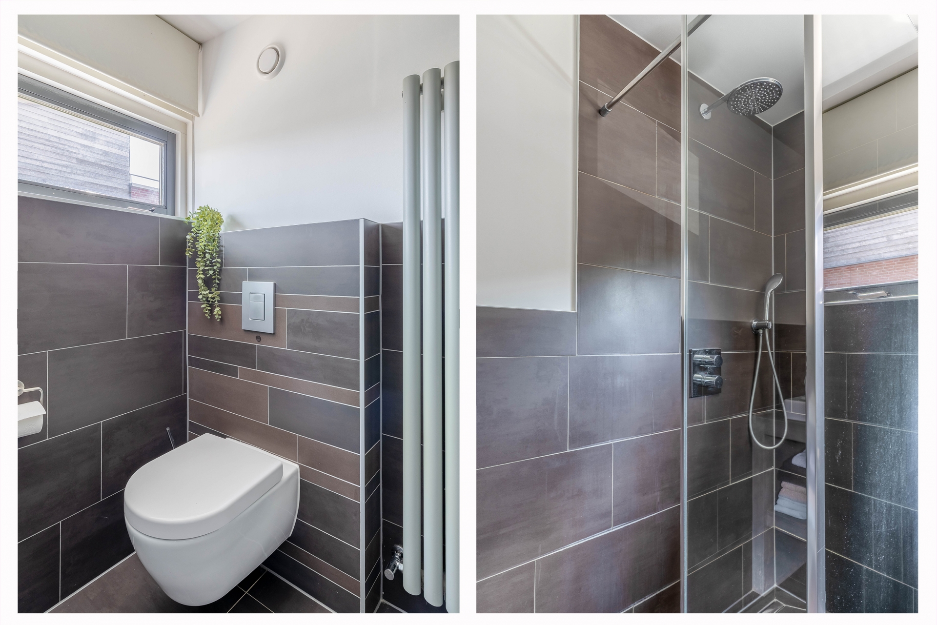 Op de eerste verdieping bevinden zich drie ruime slaapkamers, allen netjes afgewerkt en voorzien van veel lichtinval. De grootste slaapkamer aan de voorzijde is perfect als master bedroom, met ruimte voor een groot bed en een kledingkast. De badkamer is comfortabel en compleet, met onder meer inloopdouche, dubbele wastafel en tweede toilet. De tweede verdieping is ingericht als vierde slaapkamer en geeft toegang tot het heerlijke dakterras. Hier geniet je in de middag en avond van de zon – een ideale plek om te ontspannen, een boek te lezen of even tot rust te komen na een drukke dag.