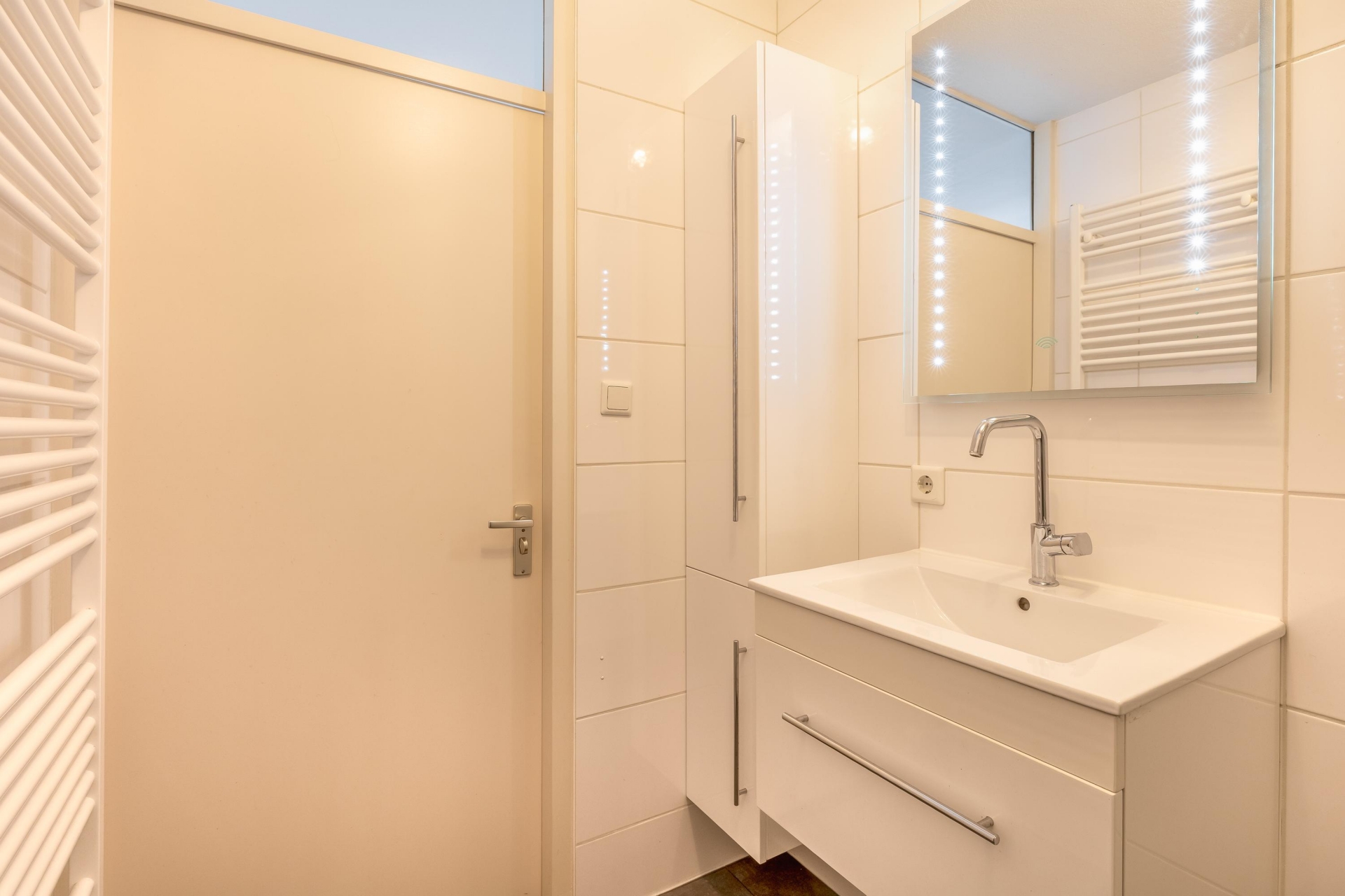 De keuken is praktisch en ruim van opzet, met voldoende werk- en bergruimte en voorzien van onder andere een vaatwasser, vrieskast en wasmachine. Vanuit de keuken is het balkon bereikbaar, waar je in de ochtend en vroege middag heerlijk van de zon kunt genieten.