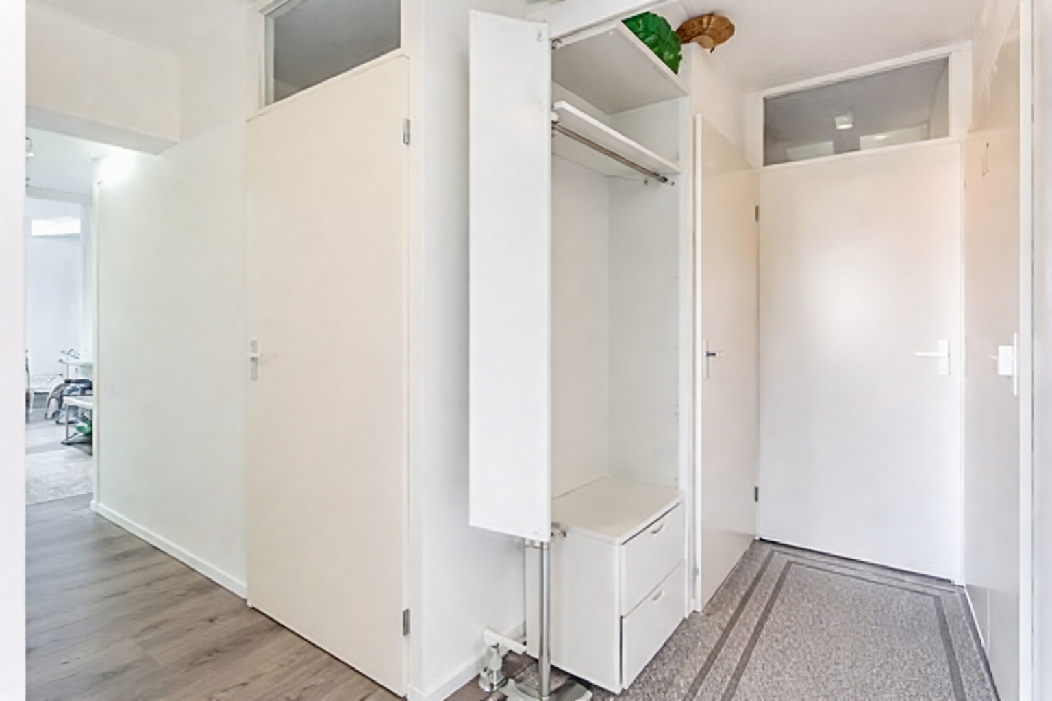Via het nette trappenhuis bereik je de entree op de derde verdieping. Bij binnenkomst bevindt zich direct het separate toilet. Aan de noordzijde ligt de eerste ruime slaapkamer. Vanuit de gang zijn de badkamer en de woonkamer bereikbaar. Aan de oostzijde bevinden zich nog twee slaapkamers, uitstekend geschikt als kinder-, werk- of logeerkamer.
