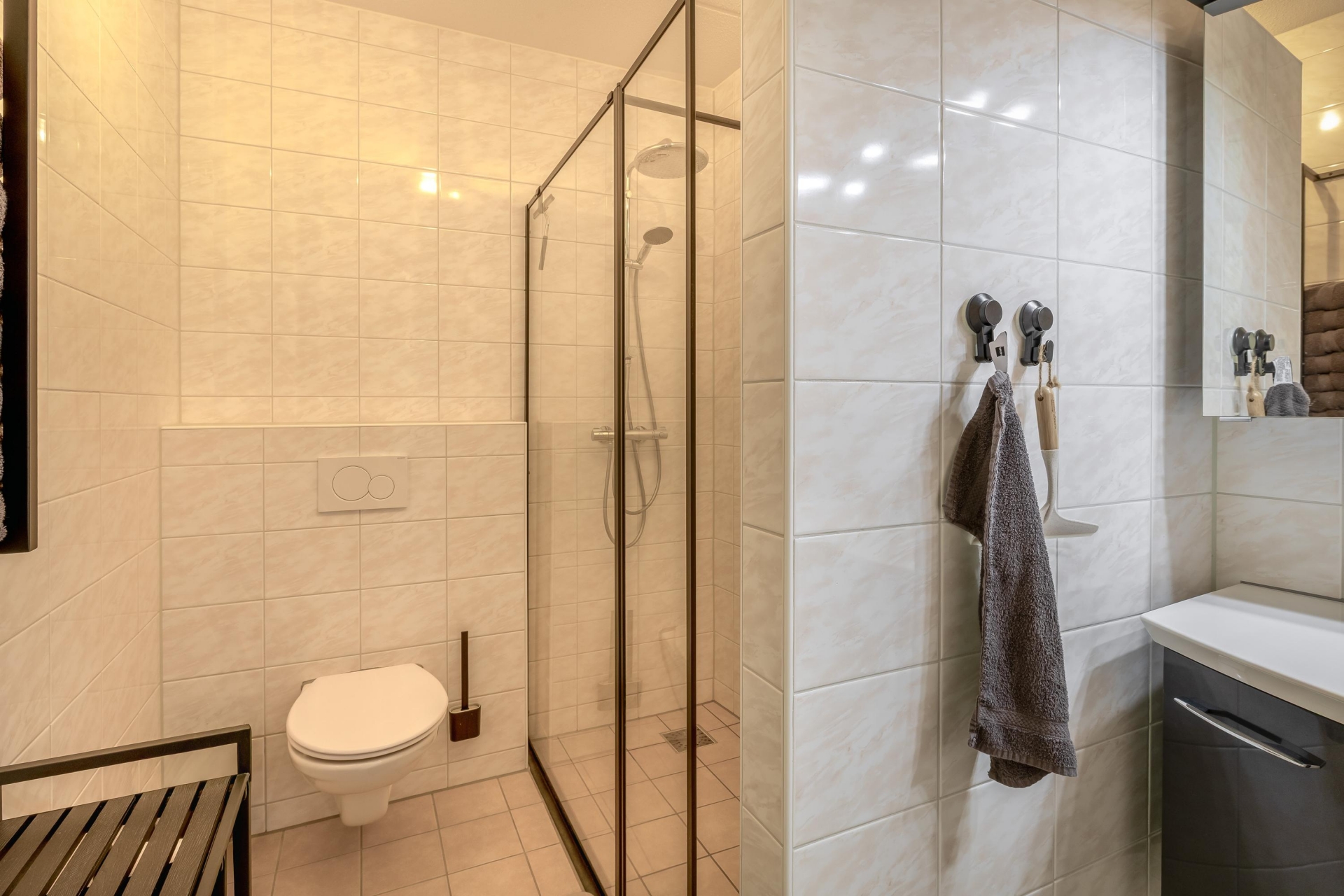 Het appartement beschikt over twee slaapkamers, beide van goed formaat. De grootste slaapkamer biedt ruimte voor een tweepersoonsbed en een grote kast, de tweede slaapkamer is ideaal als werk- of logeerkamer, of natuurlijk als kinderkamer. De badkamer is modern afgewerkt met een ruime douche, fraai wastafelmeubel en toilet.