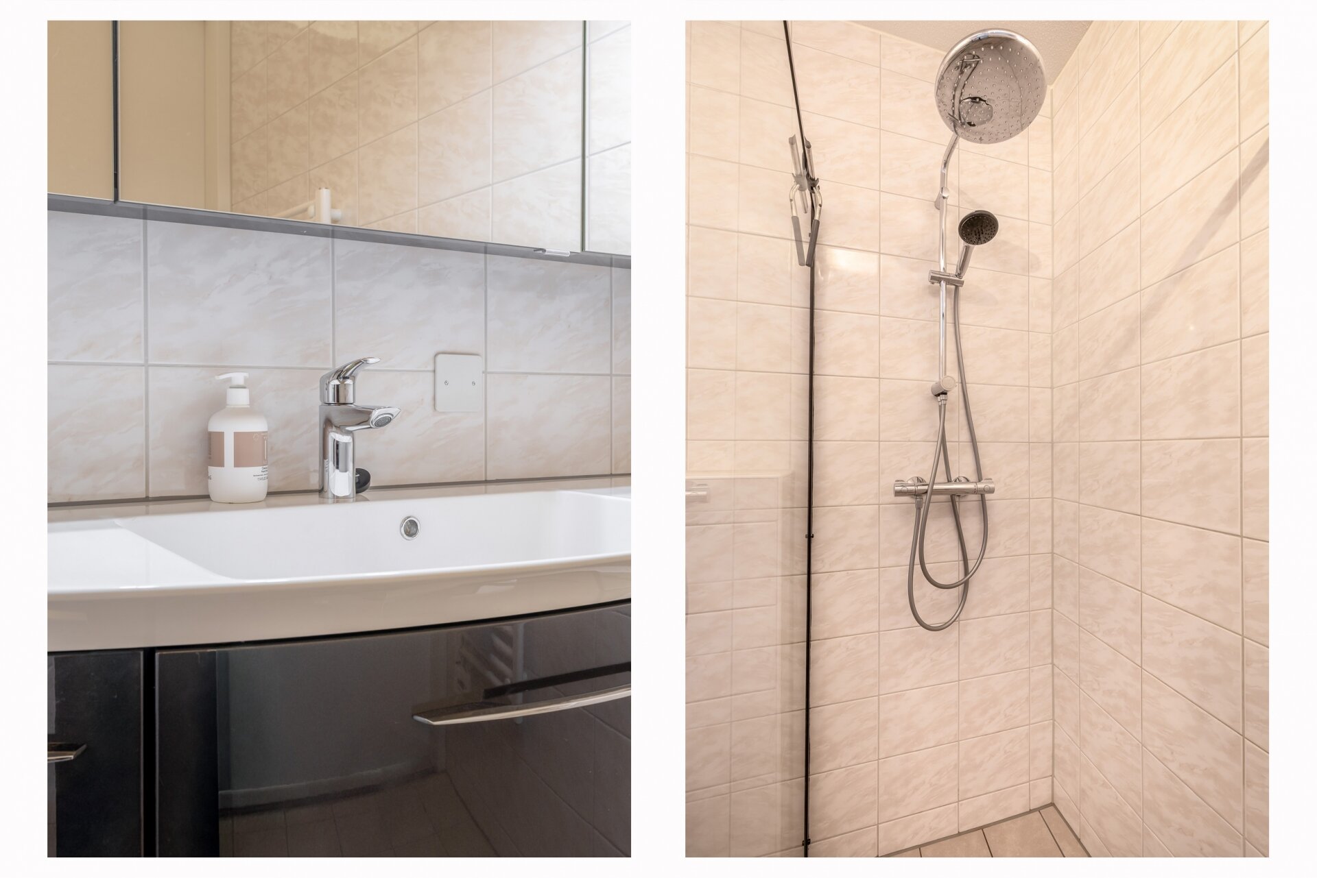 Het appartement beschikt over twee slaapkamers, beide van goed formaat. De grootste slaapkamer biedt ruimte voor een tweepersoonsbed en een grote kast, de tweede slaapkamer is ideaal als werk- of logeerkamer, of natuurlijk als kinderkamer. De badkamer is modern afgewerkt met een ruime douche, fraai wastafelmeubel en toilet.