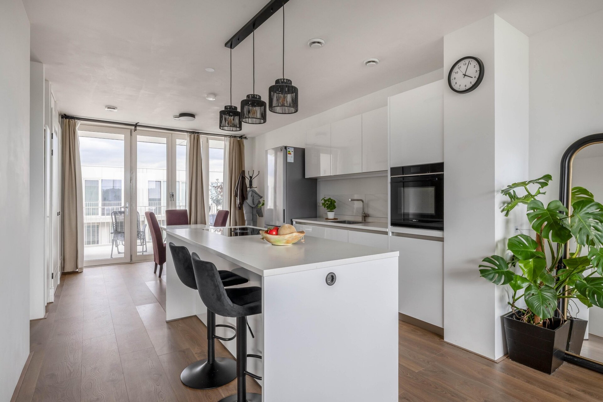Dit 3-kamerappartement uit 2023 ademt modern wooncomfort. Met een woonoppervlakte van 76 m² is er volop ruimte voor een royale zithoek én een grote eettafel. De vele raampartijen zorgen voor een mooie lichtinval met aan de achterzijde uitzicht op de Van Brienenoordbrug en groen, terwijl de vloerverwarming (door de hele woning inclusief de badkamer, behalve het kookeiland) het comfort verhoogt.