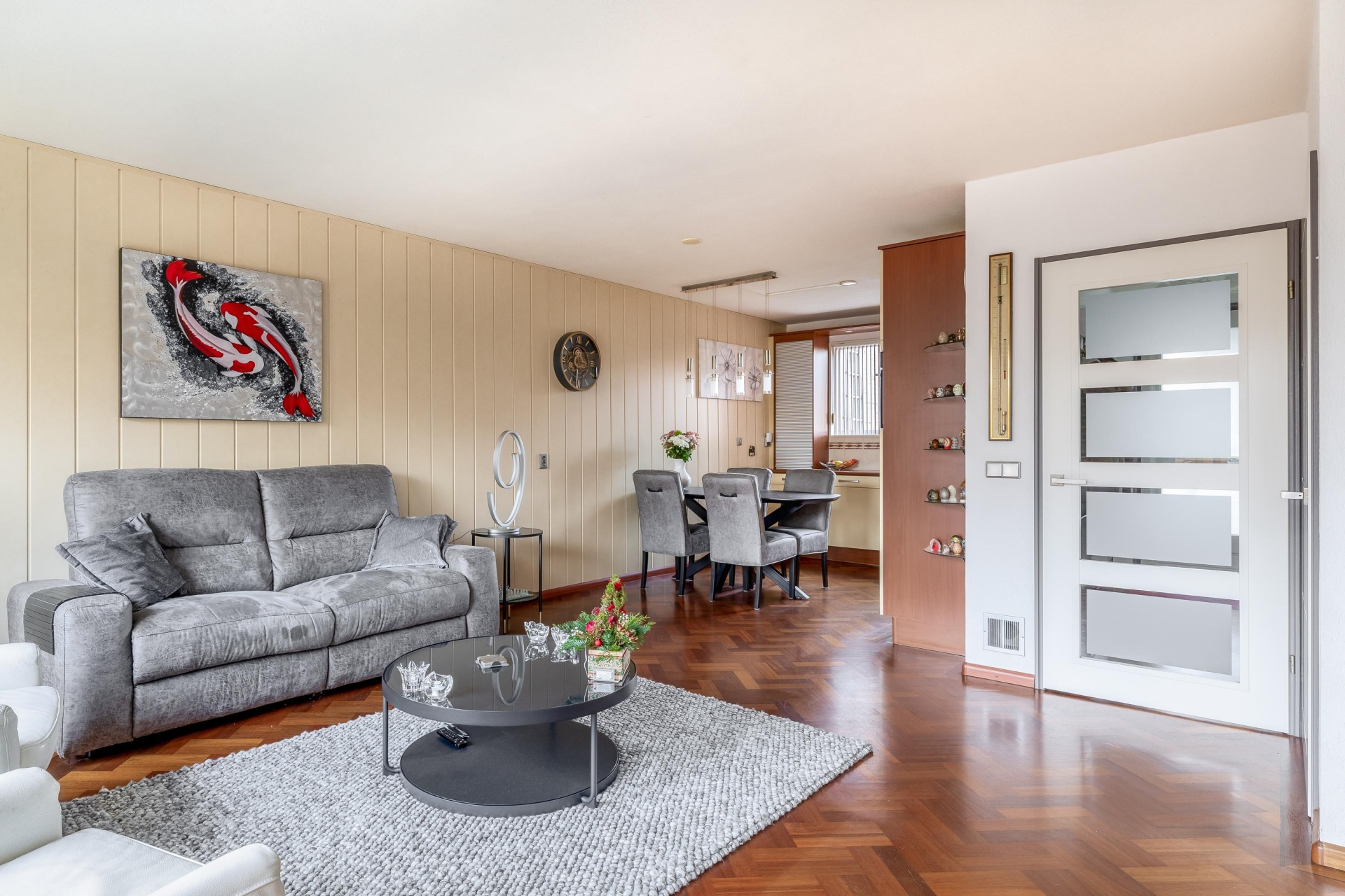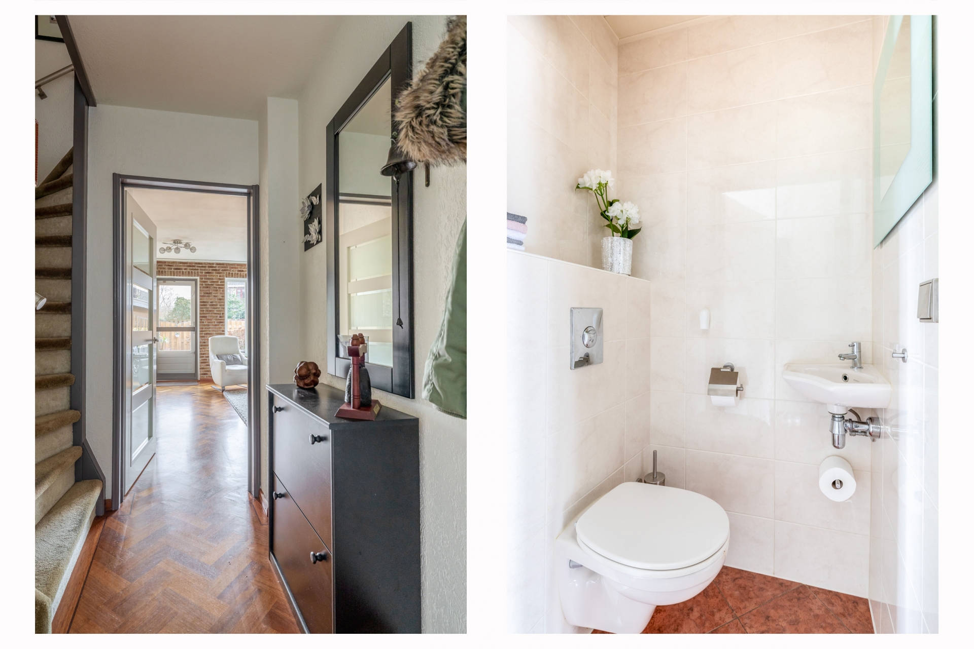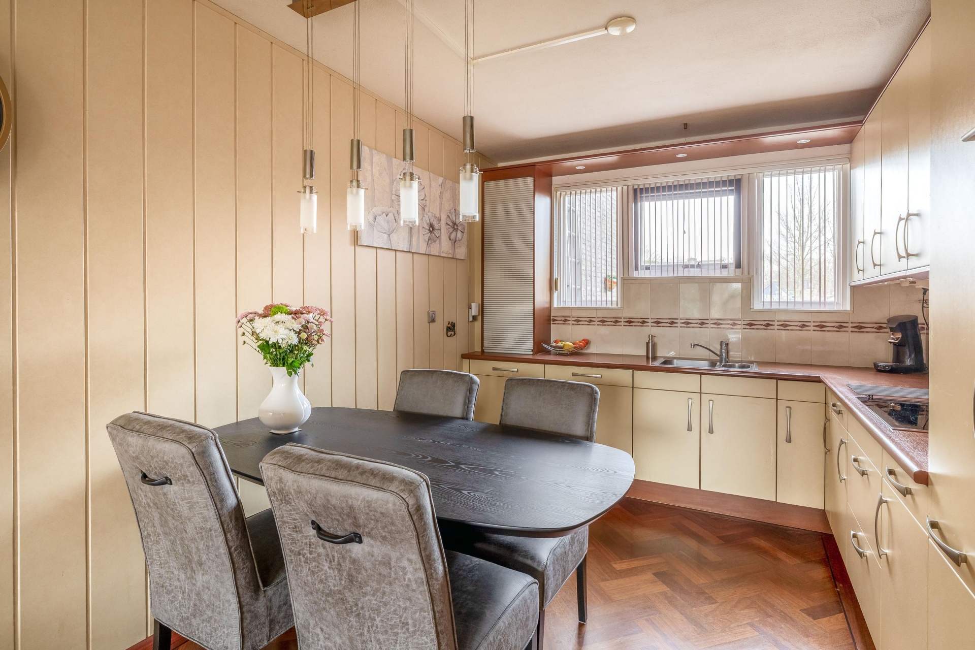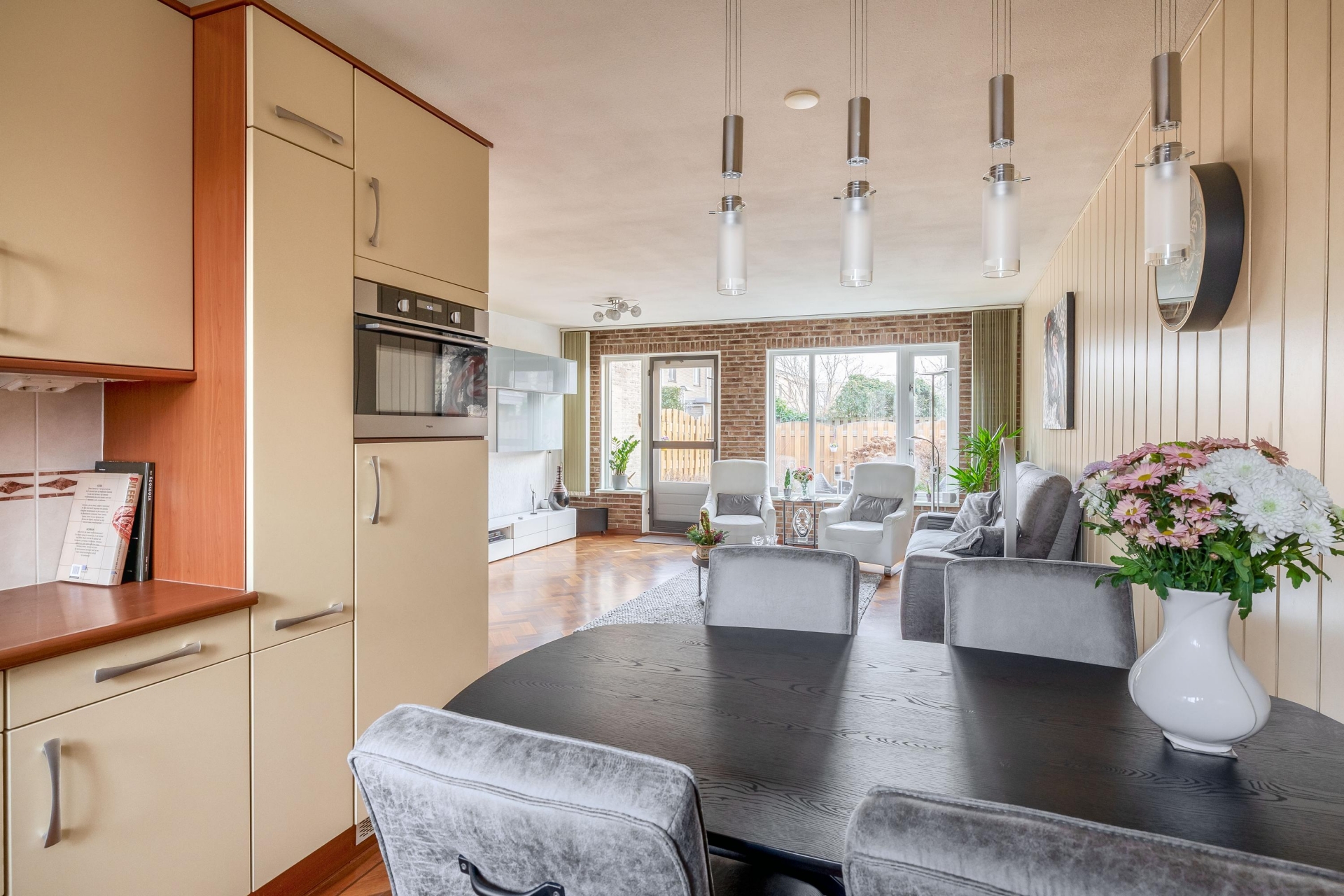 Aan de voorzijde van het huis vind je een gezellige keuken. Deze is praktisch opgezet en biedt voldoende plek voor een grote eettafel. Ideaal voor een druk gezinsleven, huiswerkmomenten of lange diners met vrienden. De keuken zelf is netjes afgewerkt en voorzien van veel werk- en kastruimte, en natuurlijk de nodige inbouwapparatuur. De sfeer is warm en verzorgd; een plek waar je met gemak je dagelijkse ritme vindt.