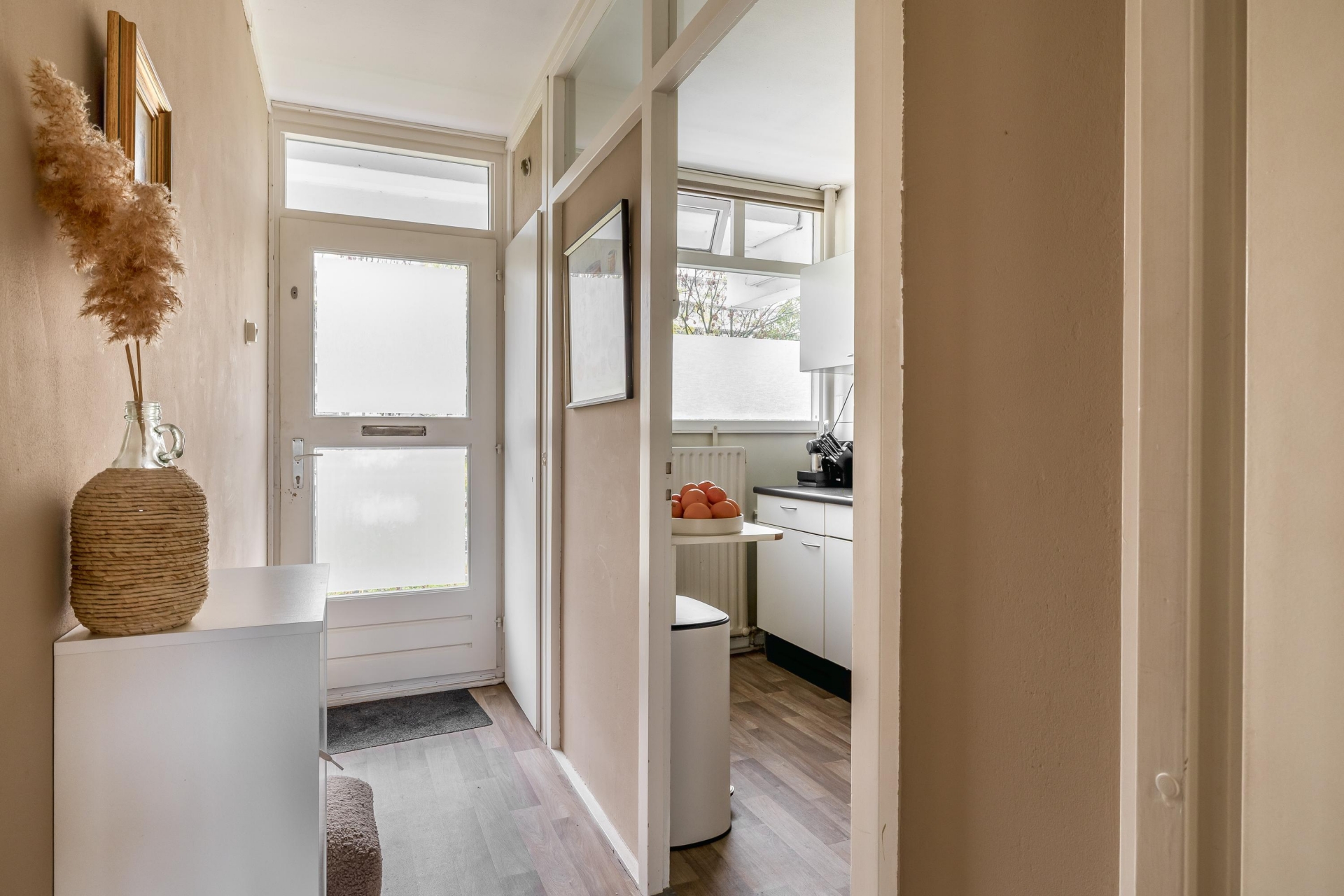 De keuken is netjes en functioneel ingericht, met voldoende werk- en bergruimte. Dankzij het raam aan de achterzijde is ook hier prettig daglicht aanwezig. Je hebt toegang tot een praktische bergkast en directe verbinding naar de hal.