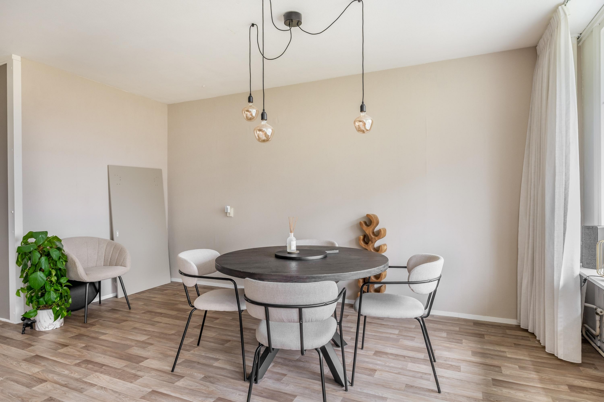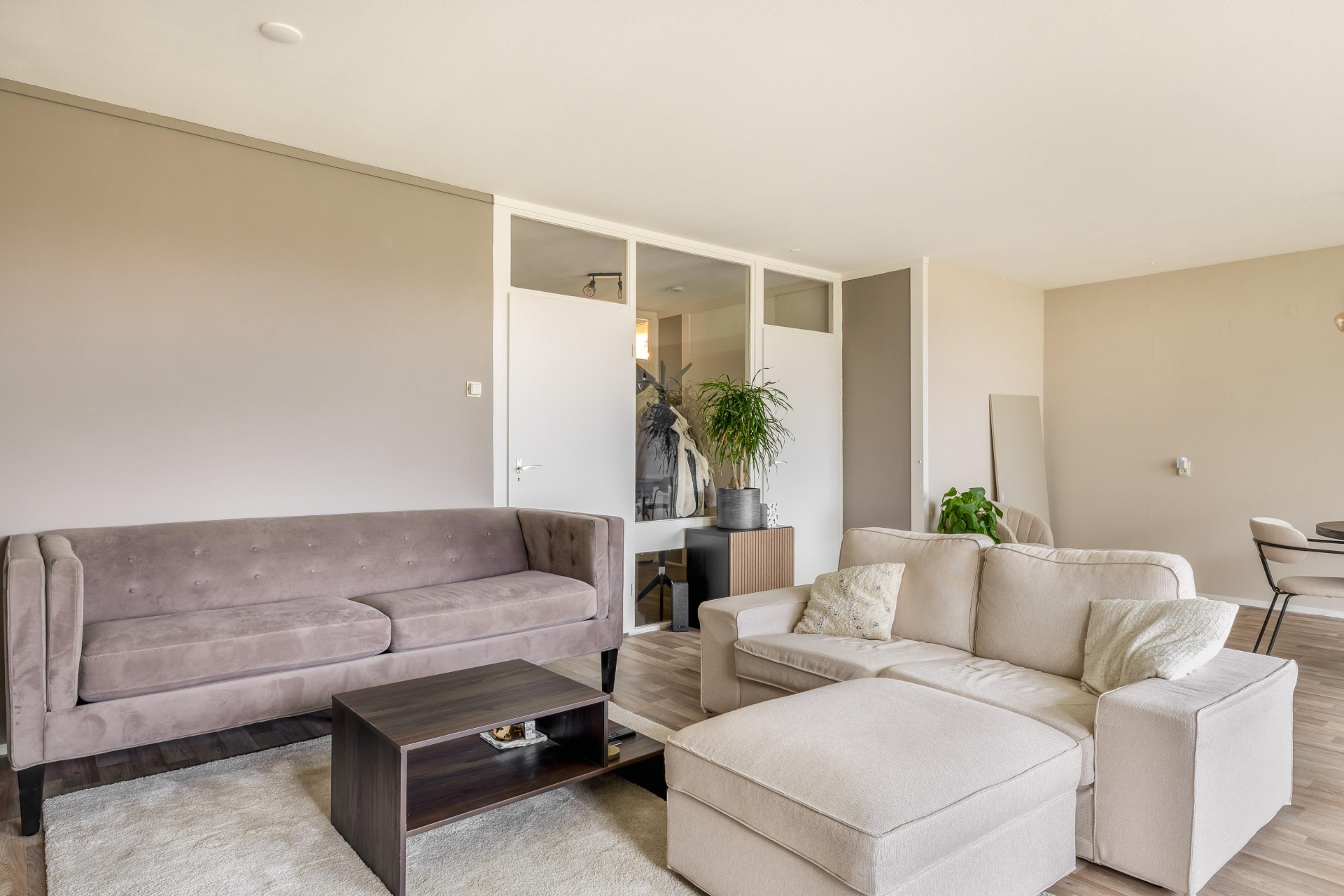 Grenzend aan de woonkamer ligt het ruime balkon op het zuidwesten. Dit is echt een verlengstuk van je leefruimte. Je kunt hier in de middag en avond genieten van de zon, of je nu een kop koffie drinkt in je eentje of borrelt met vrienden. Het uitzicht over het grasveld en de bomenrij maakt dit balkon een fijne plek om even tot rust te komen.
