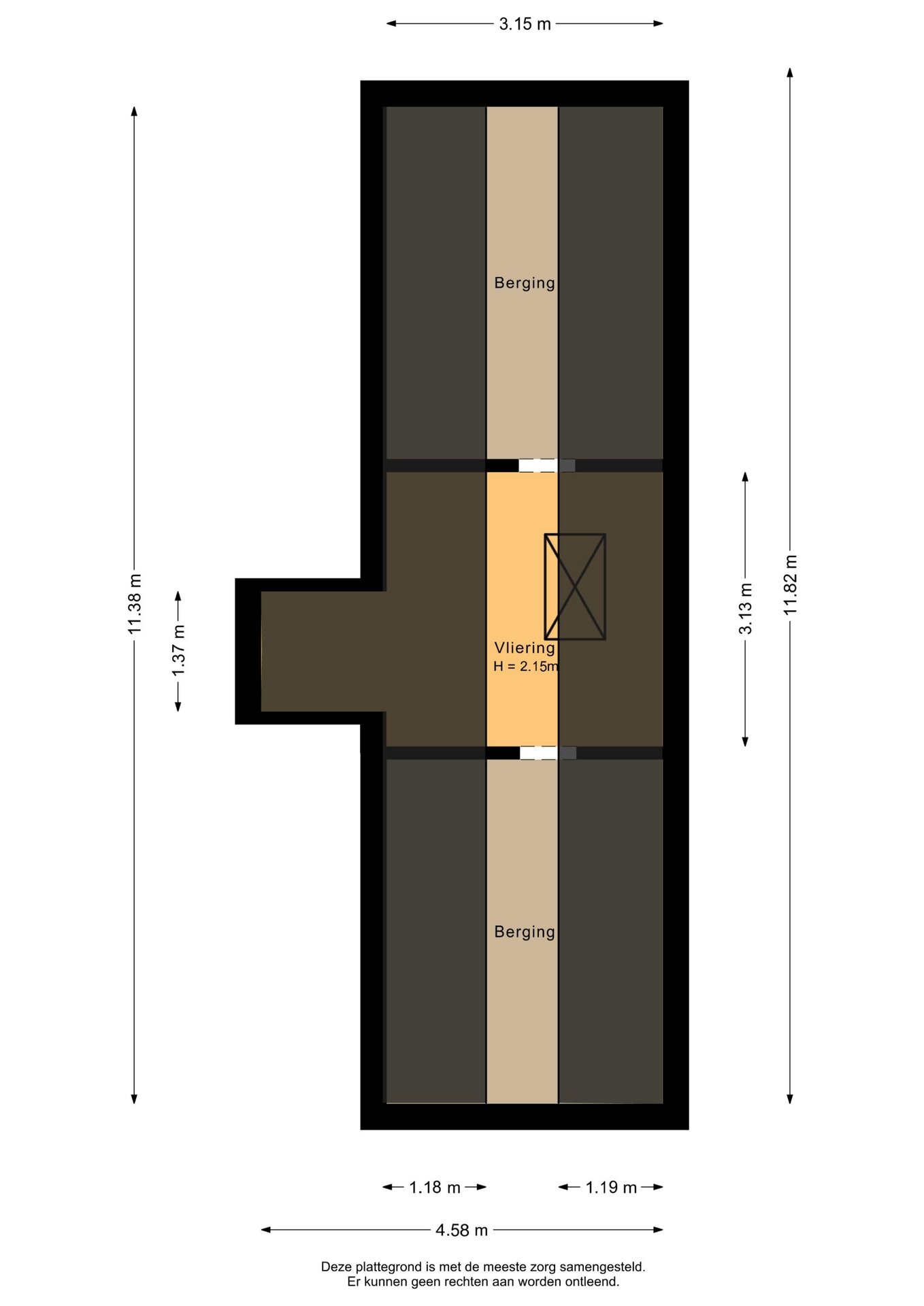 Via de vlizotrap bereikt u de zolderverdieping met bergruimtes aan beide zijden. De nokhoogte van 2.15 m maakt dit een functionele verdieping.