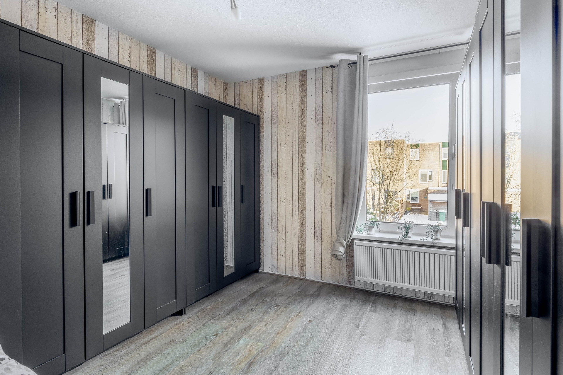 De slaapkamer aan de voorzijde heeft een oppervlakte van circa 11 m².