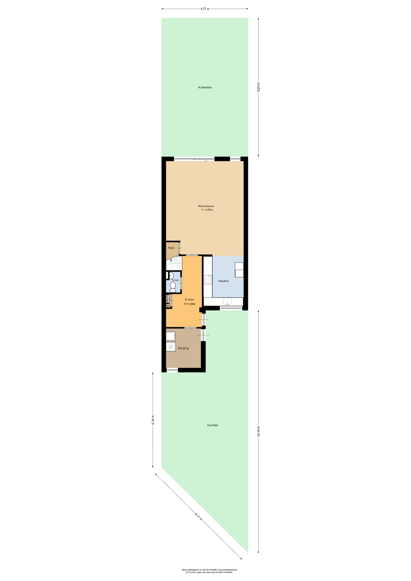 “Deze informatie is door ons met de nodige zorgvuldigheid samengesteld. Onzerzijds wordt echter geen enkele aansprakelijkheid aanvaard voor enige onvolledigheid, onjuistheid of anderszins, dan wel de gevolgen daarvan. Alle opgegeven maten en oppervlakten zijn indicatief.”
