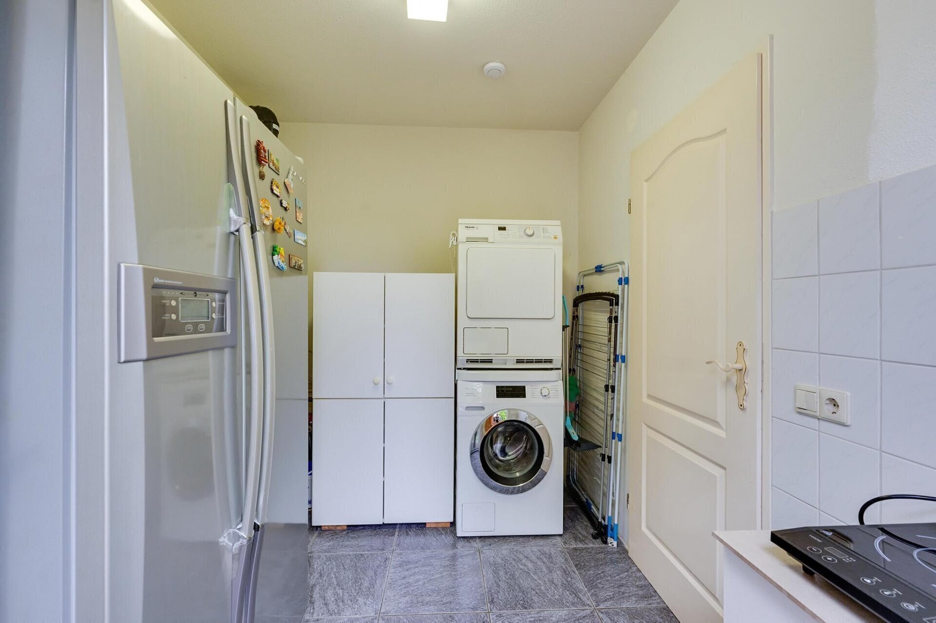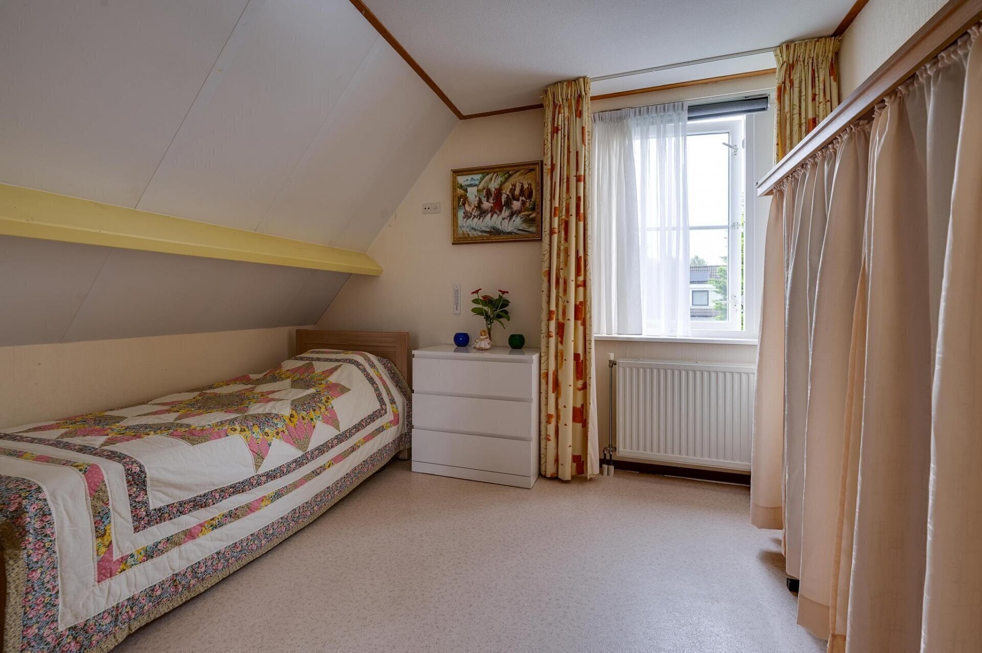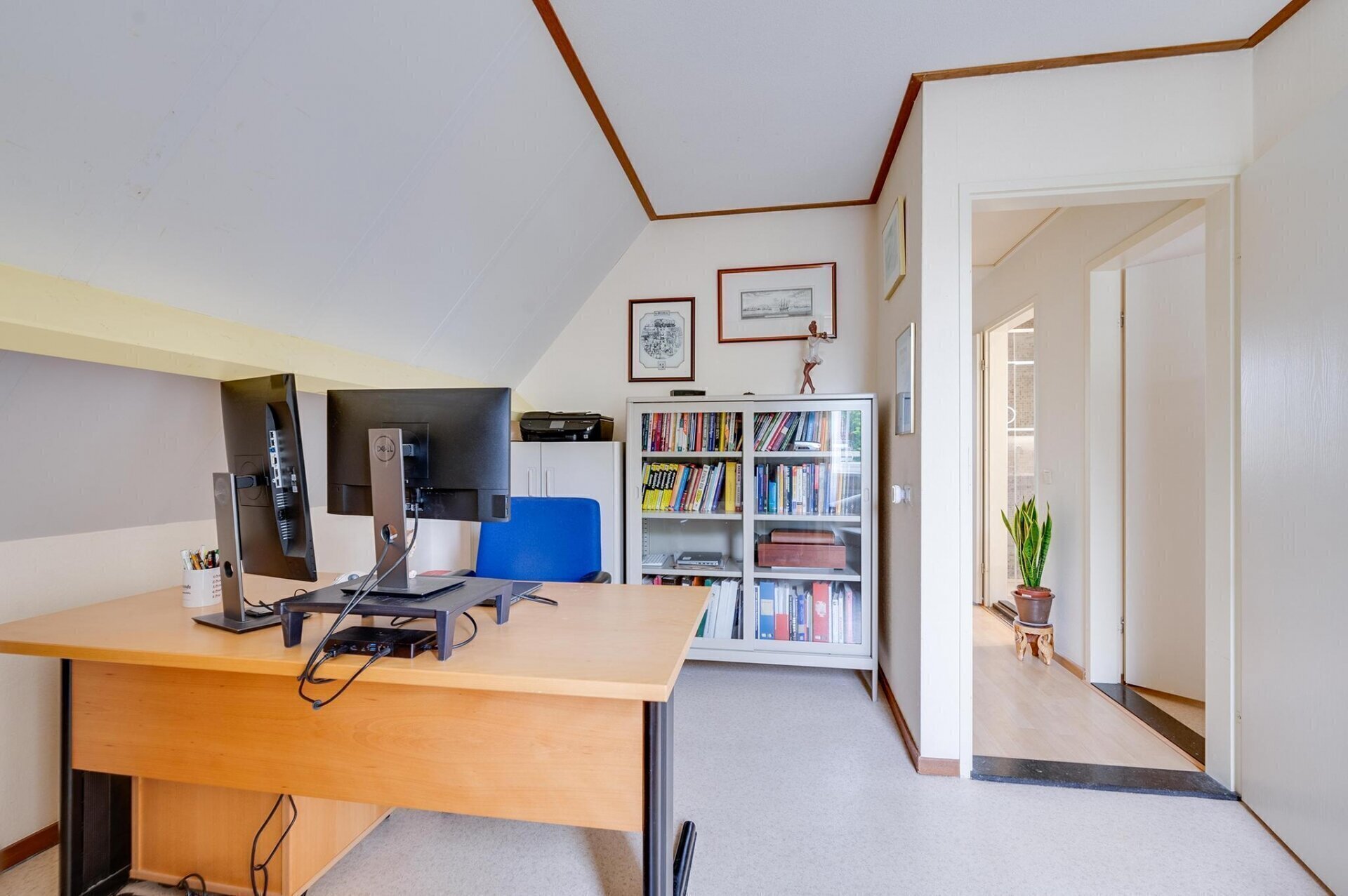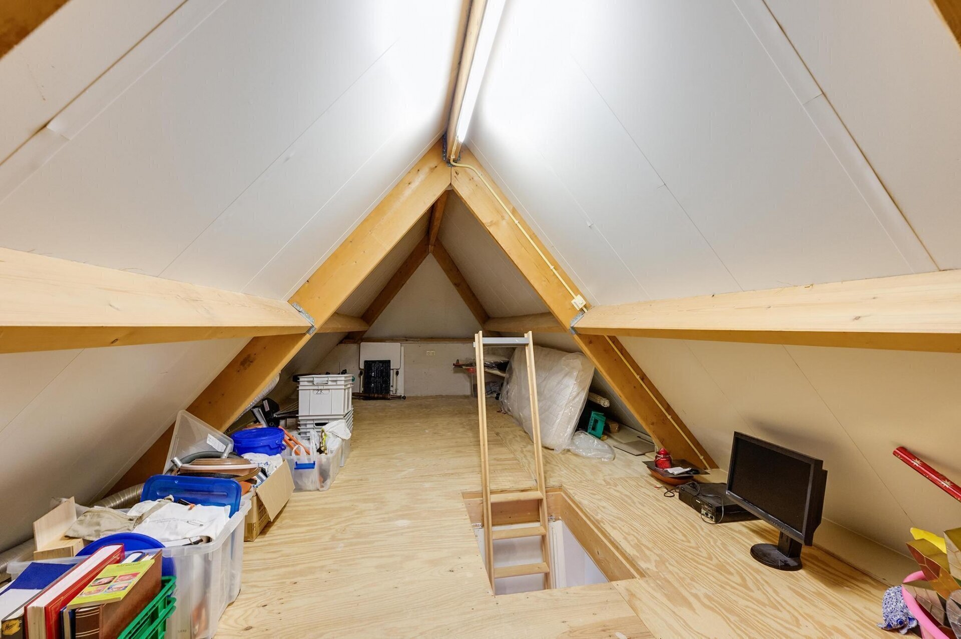 Via een vlizotrap bereik je de praktische opbergzolder, ideaal voor het opbergen van spullen die je niet dagelijks nodig hebt.