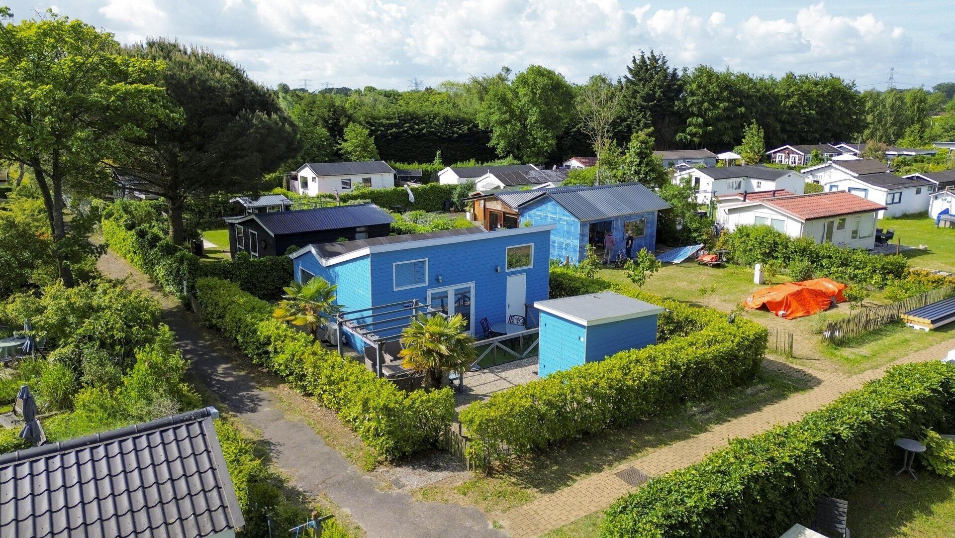 Wat direct opvalt bij aankomst is het vrijstaande karakter van dit blauwe vakantiehuisje op het recreatiepark Molecaten. Met een woonoppervlakte van ca. 48 m², een perceel van 212 m² én een eigen schuur biedt het verrassend veel ruimte. Binnen wacht een gezellige leefruimte met open keuken, zithoek, eethoek én vide. Dankzij de hoge plafonds en ramen rondom voelt het huis licht en luchtig aan.