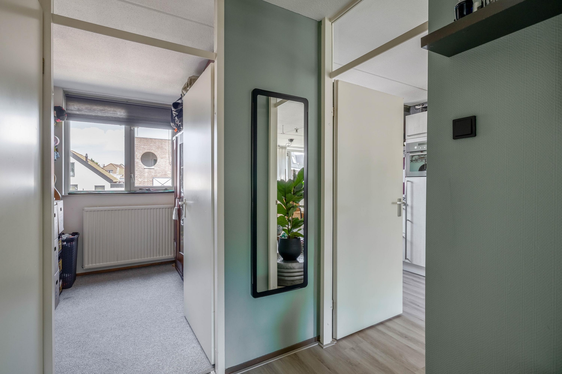 De keuken staat in open verbinding met de woonkamer, waardoor het geheel ruim en betrokken aanvoelt. Alles is praktisch ingericht en netjes onderhouden. Hier kook je met gemak terwijl je in contact blijft met je gasten of huisgenoten. De slaapkamer is ruim genoeg voor een tweepersoonsbed en een royale kledingkast. Hier zorgt het grote raam voor prettig licht en een rustige uitstraling. Dankzij de ligging op hoogte woon je hier rustig, zonder direct inkijk van voorbijgangers. De badkamer is functioneel ingericht en netjes afgewerkt. Verder beschikt het appartement over een aparte berging in de onderbouw, ideaal voor je fiets, koffers of seizoensspullen.