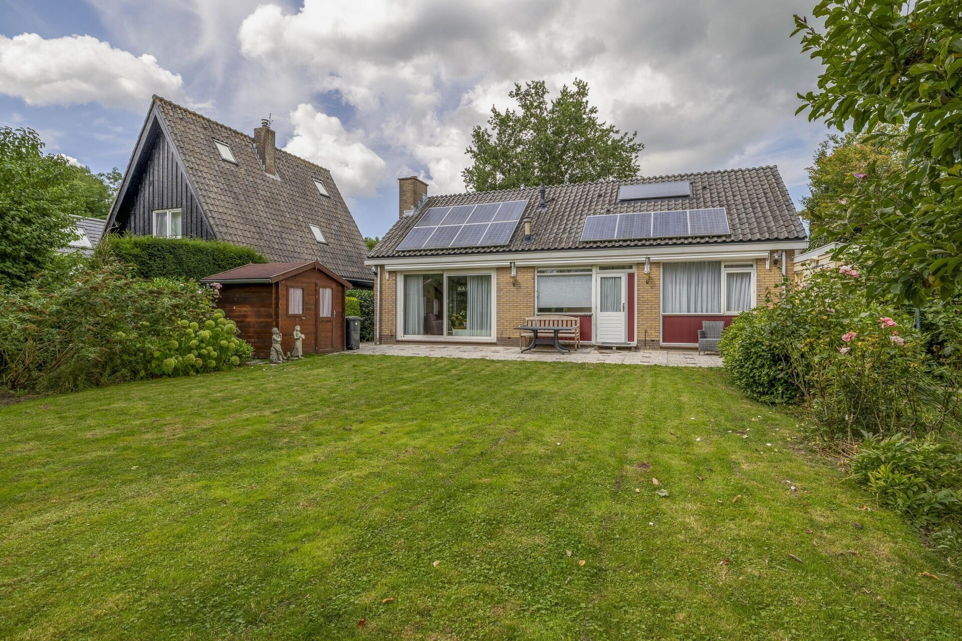 Aan de achterzijde ligt een riante tuin met een heerlijke oriëntatie op het zuidoosten. Dankzij de vrije ligging heb je hier veel privacy en uitzicht op groen, zonder directe achterburen. De tuin is verzorgd aangelegd met een groot gazon, volwassen beplanting en een royaal terras grenzend aan de woning. Of je nu houdt van tuinieren, zonnen of gezellig buiten eten – dit is een plek waar je volop van het buitenleven kunt genieten.