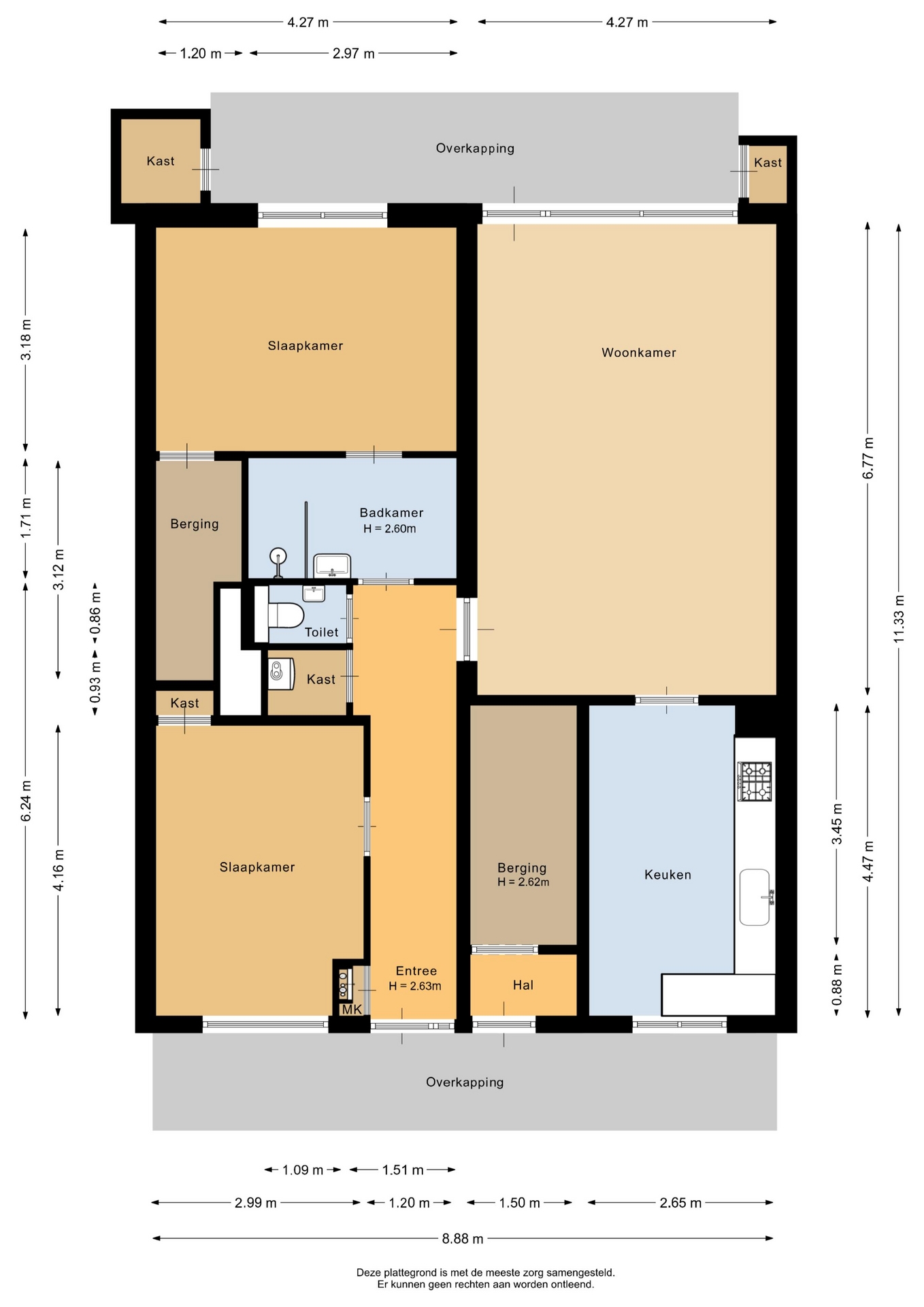 “Deze informatie is door ons met de nodige zorgvuldigheid samengesteld. Onzerzijds wordt echter geen enkele aansprakelijkheid aanvaard voor enige onvolledigheid, onjuistheid of anderszins, dan wel de gevolgen daarvan. Alle opgegeven maten en oppervlakten zijn indicatief.”