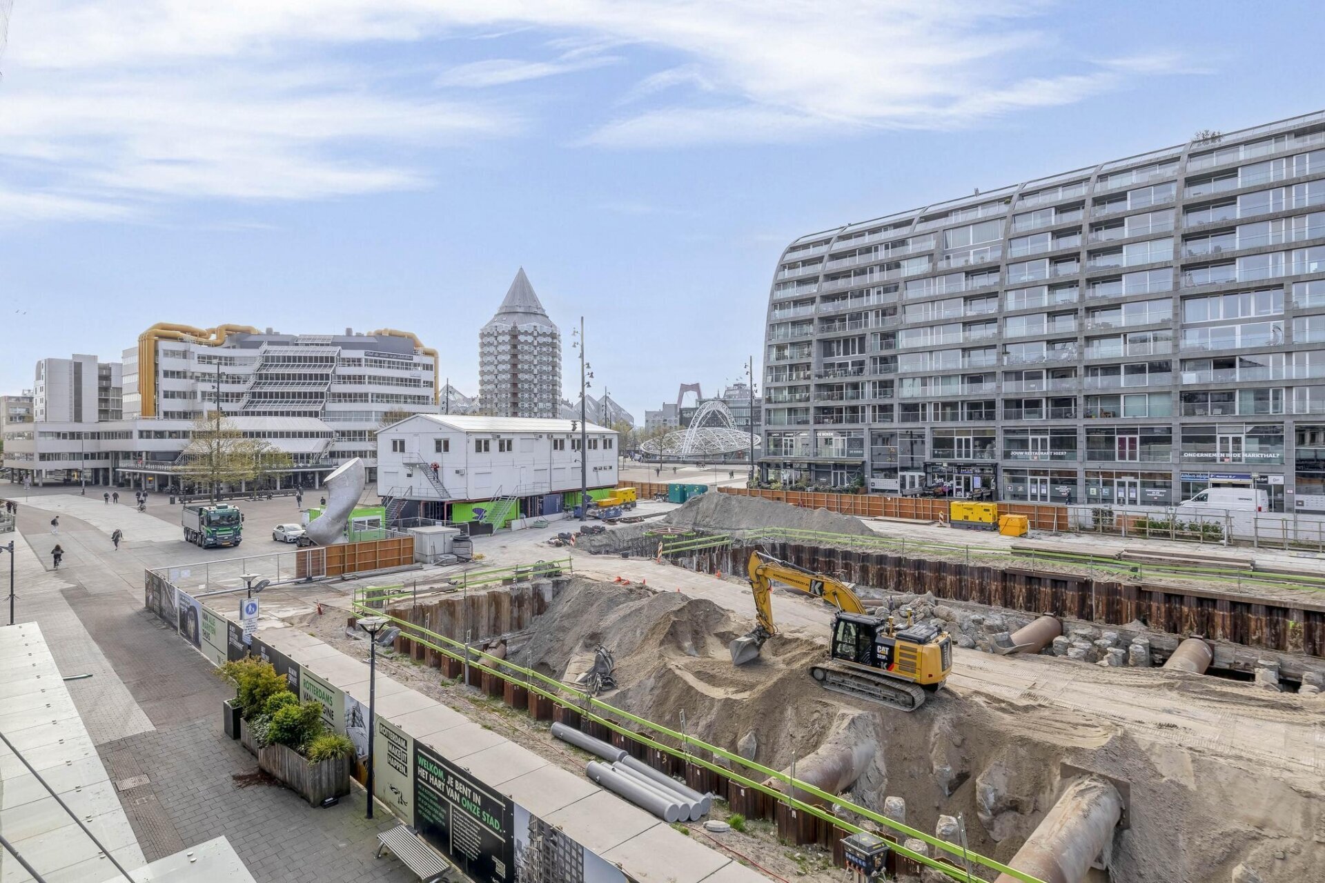 Om de hoek tref je het metro-en treinstation Blaak aan. Ook is een gratis fietsenstalling met bewaking voorhanden.