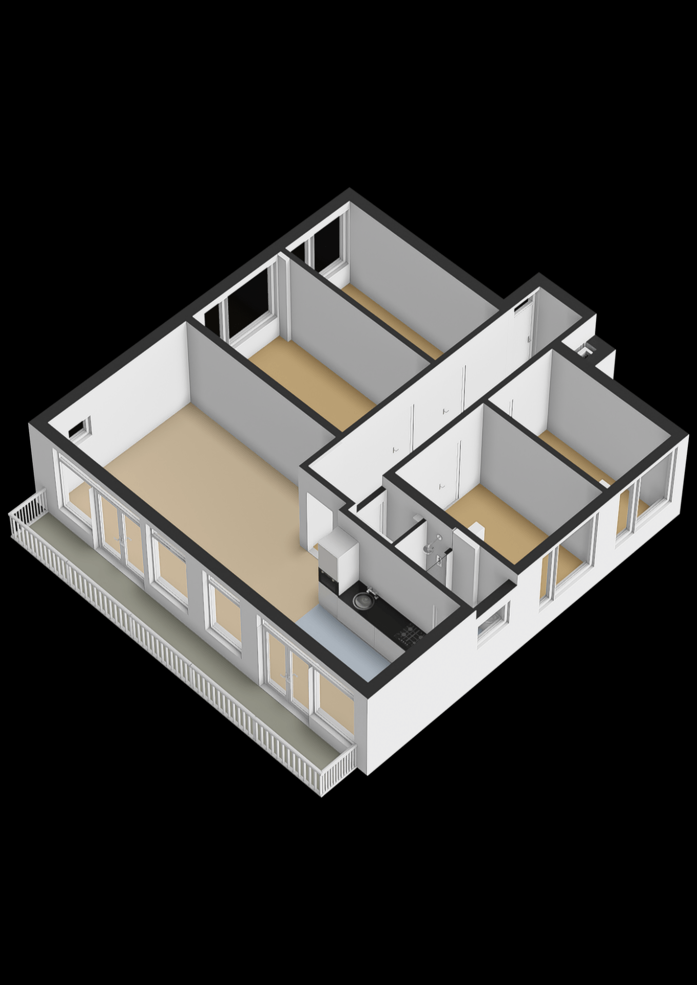 De woonkamer is licht dankzij de grote ramen en grenst over de gehele lengte aan het balkon. In de koude maanden heb je in de woonkamer volop warmte van de winterzon en in de zomer houd je de warmte buiten met de zonneschermen op balkon.