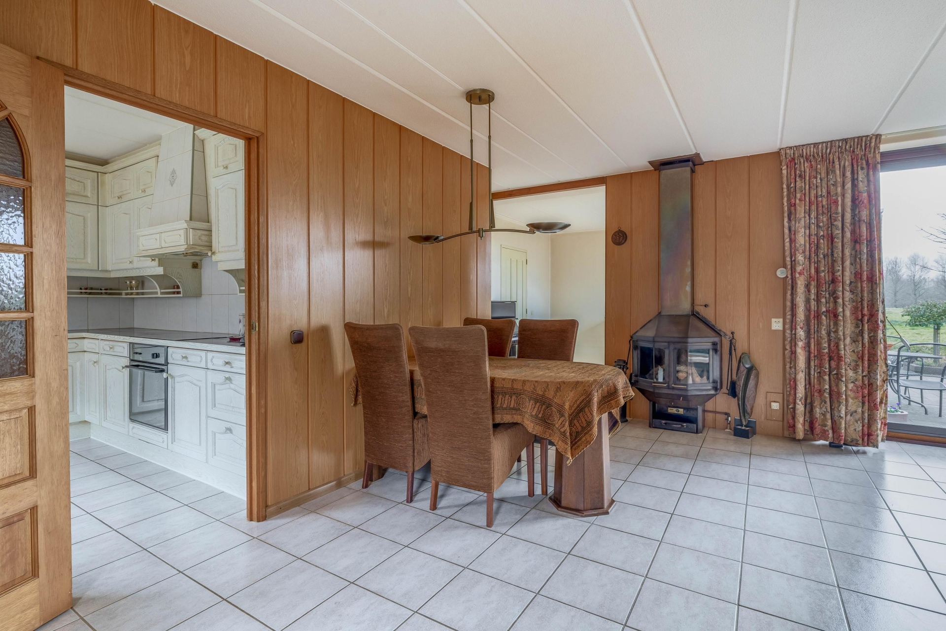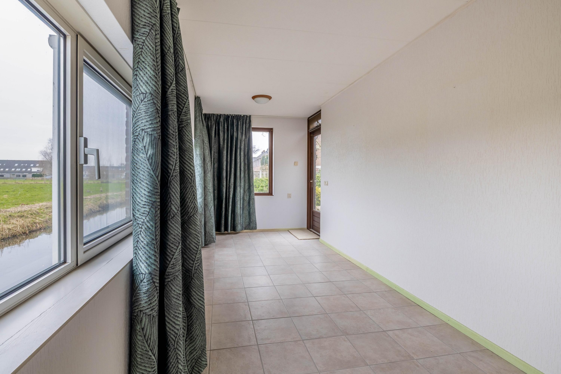 Zodra je de woonkamer binnenkomt, valt het uitzicht direct op. Grote raampartijen zorgen voor een zee aan daglicht én een prachtig panoramabeeld over het omliggende groen en water. Binnen voelt het net zo vrij als buiten. De leefruimte is praktisch ingedeeld en biedt voldoende plek voor zowel een gezellige zithoek als een ruime eettafel. Dankzij de gunstige ligging op de hoek geniet je hier de hele dag van natuurlijke lichtinval. Ook de keuken aan de voorzijde is praktisch ingedeeld.