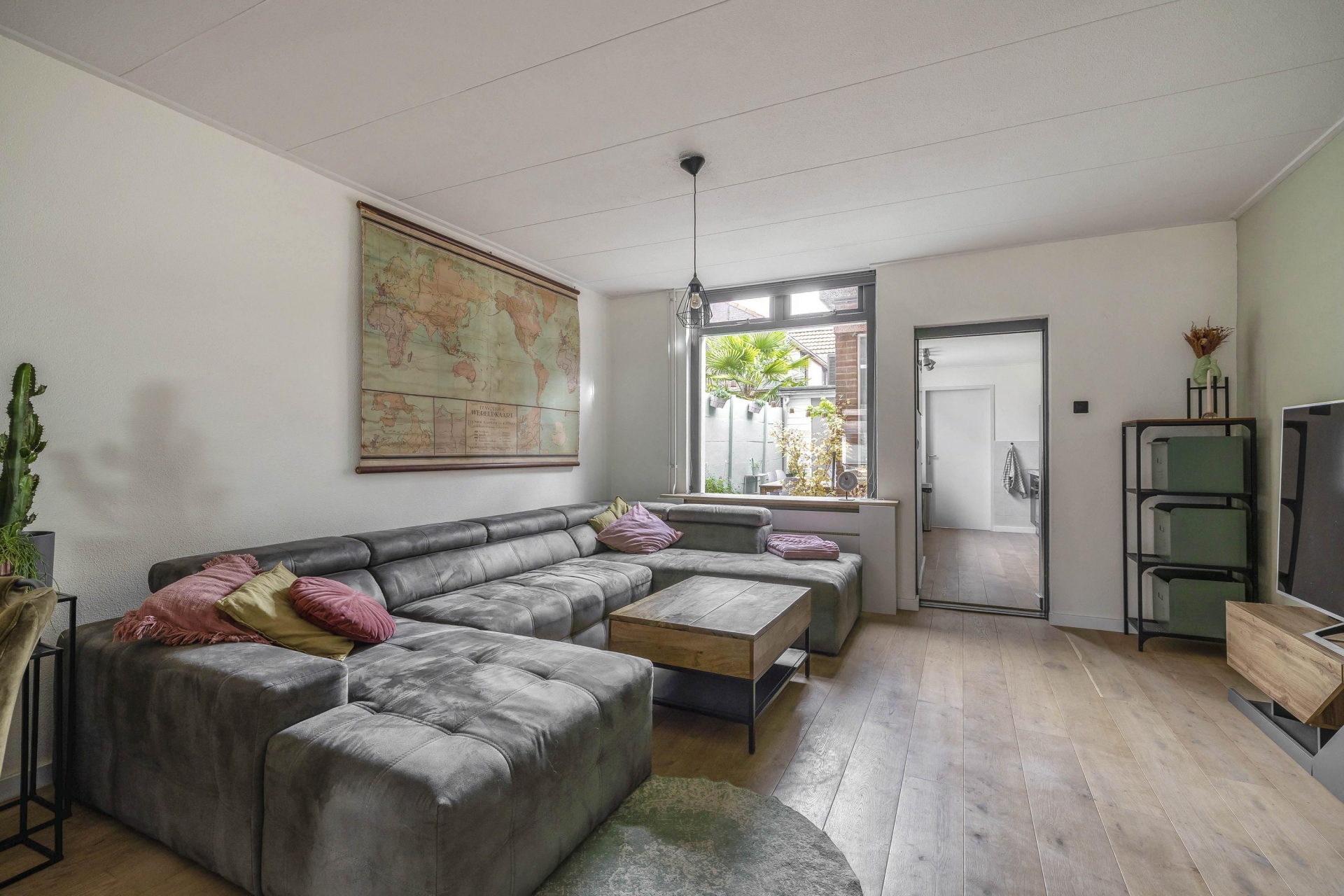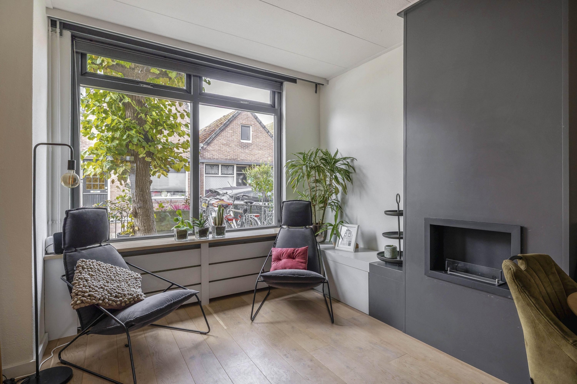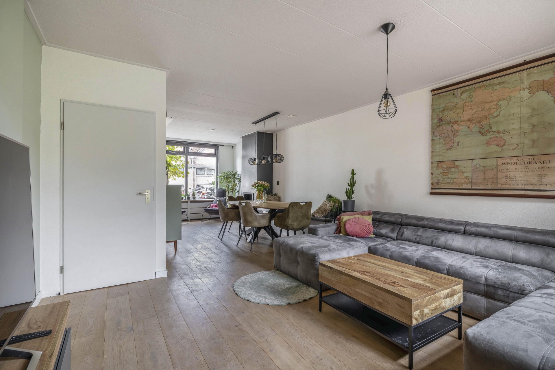 Binnen stap je in een lichte, open leefruimte met een prettige sfeer. De eetkamer aan de voorzijde is gezellig ingericht met een fijne eethoek en behoudt zijn authentieke karakter dankzij de houten vloer en hoge plafonds. Richting de achterzijde van het huis loop je door naar de zitkamer en open keuken. De keuken is in 2019 voorzien van nieuwe fronten en een nieuw blad, en uitgerust met moderne inbouwapparatuur (2020), waaronder een combi-oven, vaatwasser en inductiekookplaat.