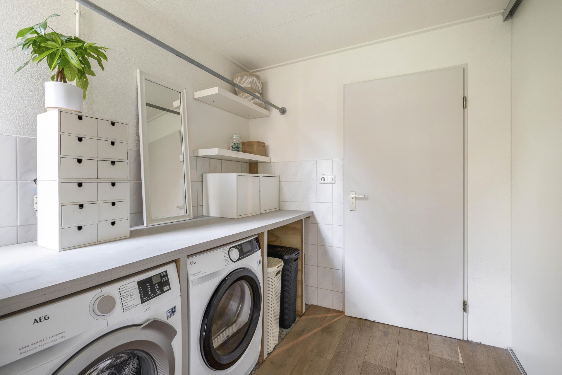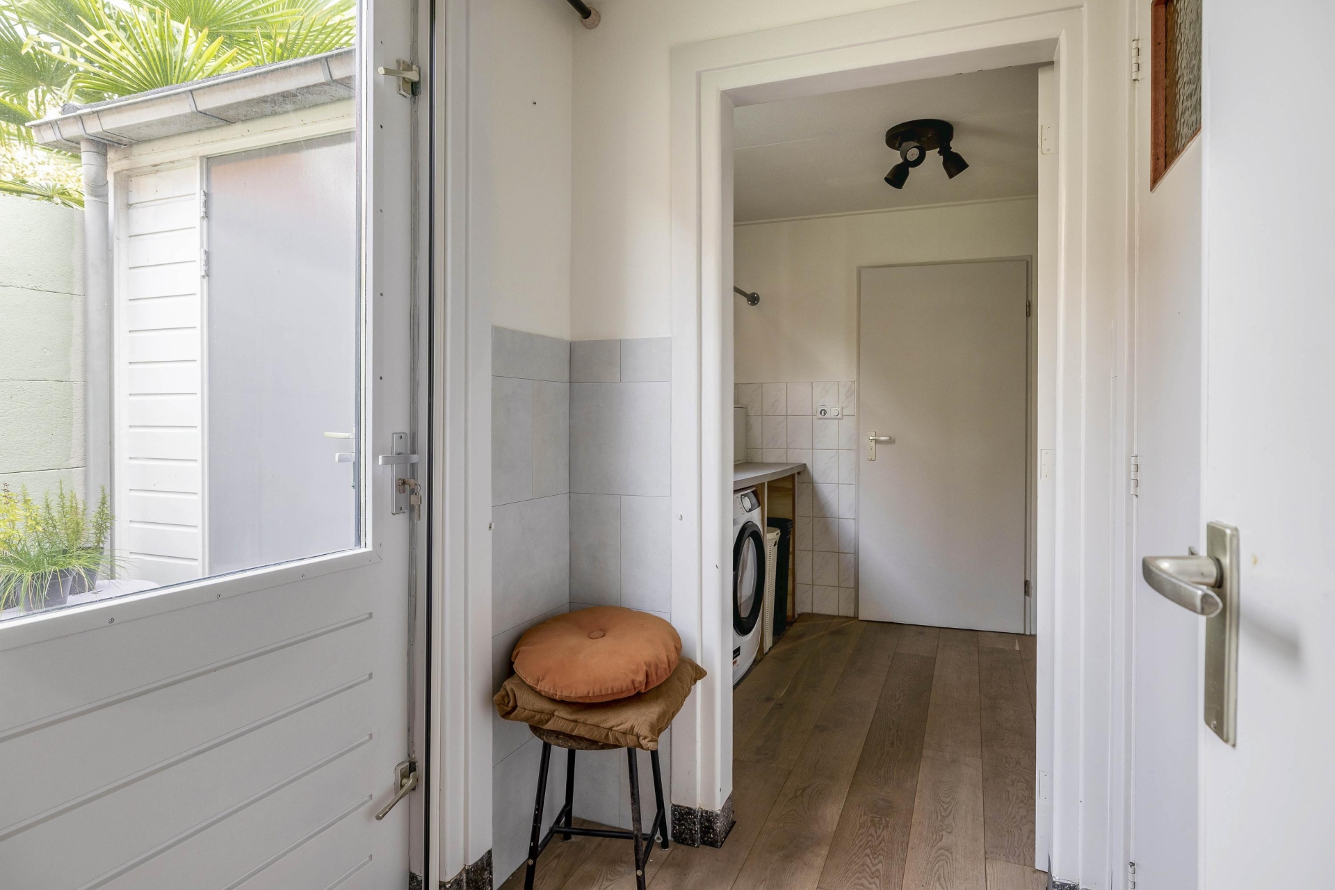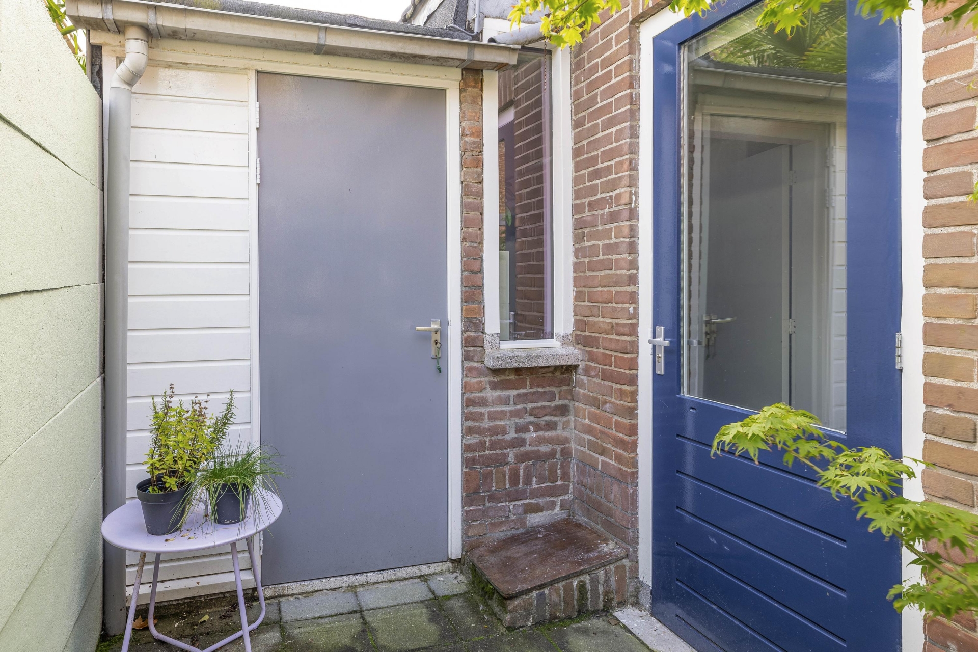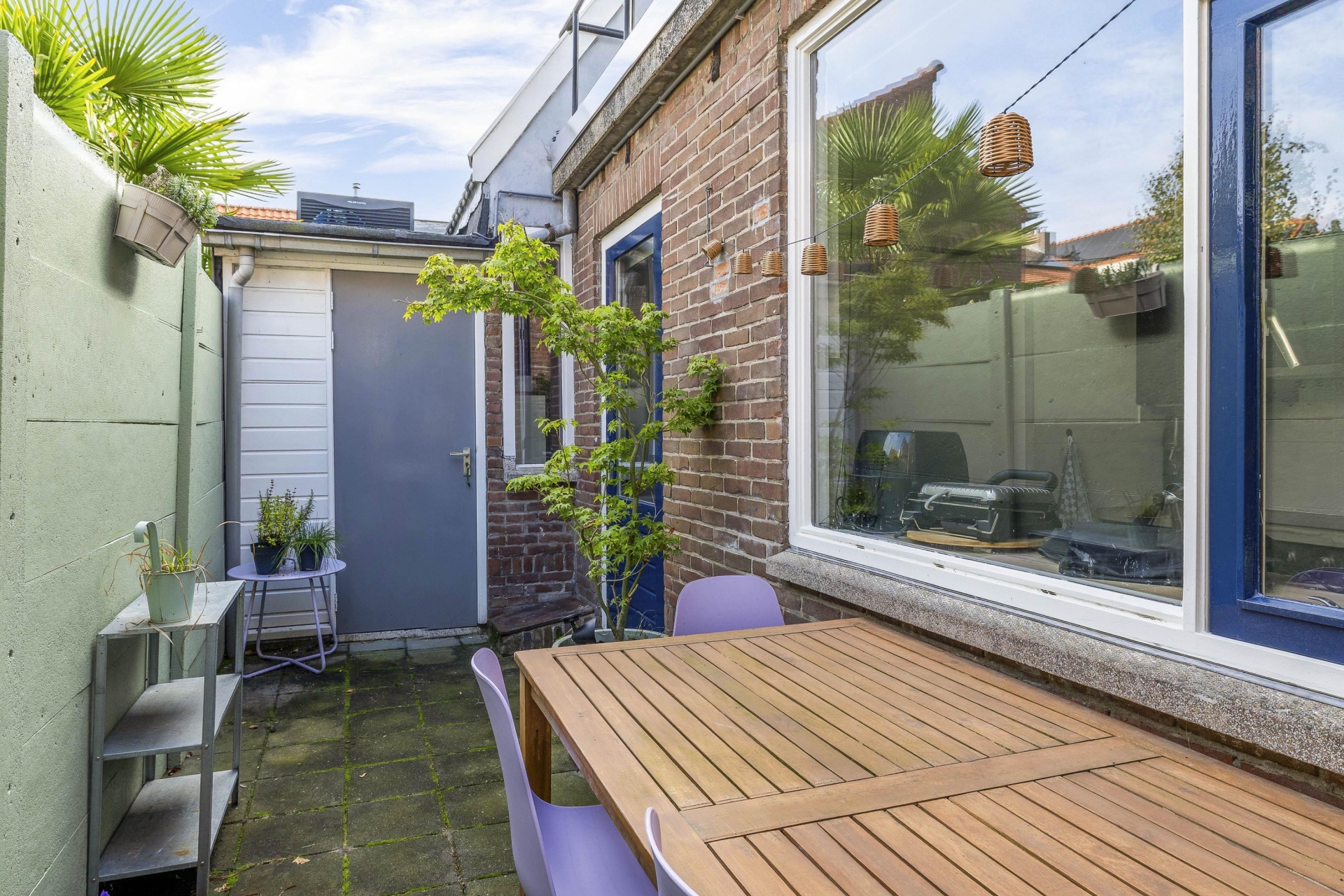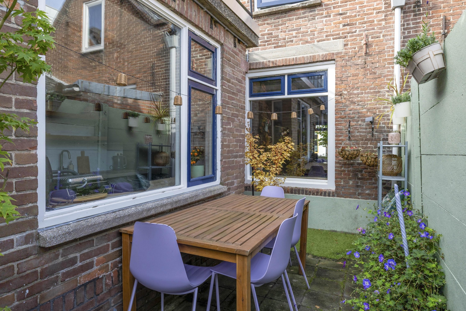 Het dakterras aan de achterzijde is een oase van rust, midden in de stad. Dankzij de ligging op het oosten geniet je hier 's ochtends en aan het begin van de middag van de zon. Het terras is voorzien van houten vlonders en biedt voldoende ruimte voor een gezellige lounge- of eethoek. Een heerlijke plek voor een kop koffie in de zon, een goed boek of een avondborrel met vrienden. Via het dakterras bereik je nog een praktische bergruimte voor opslag.