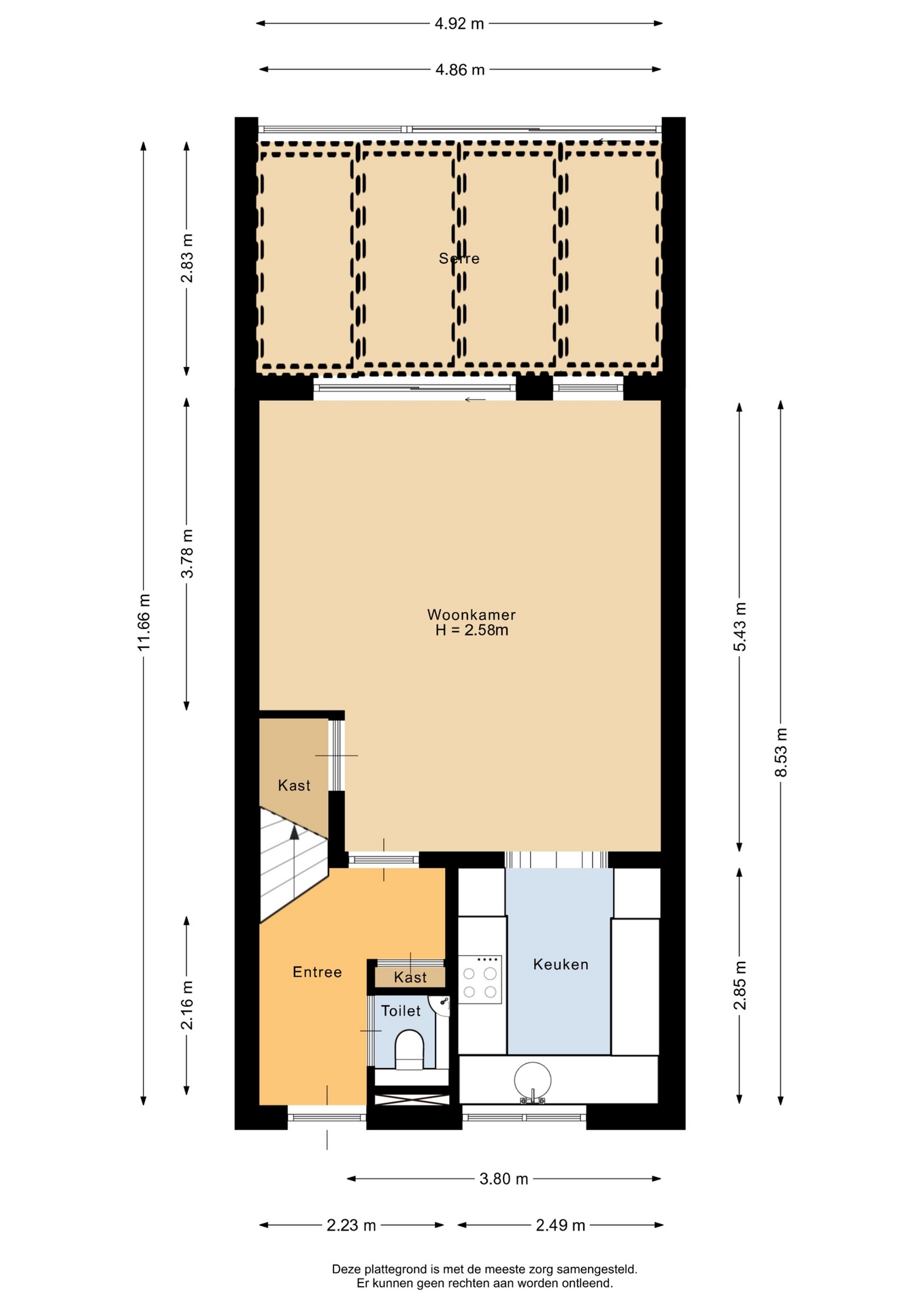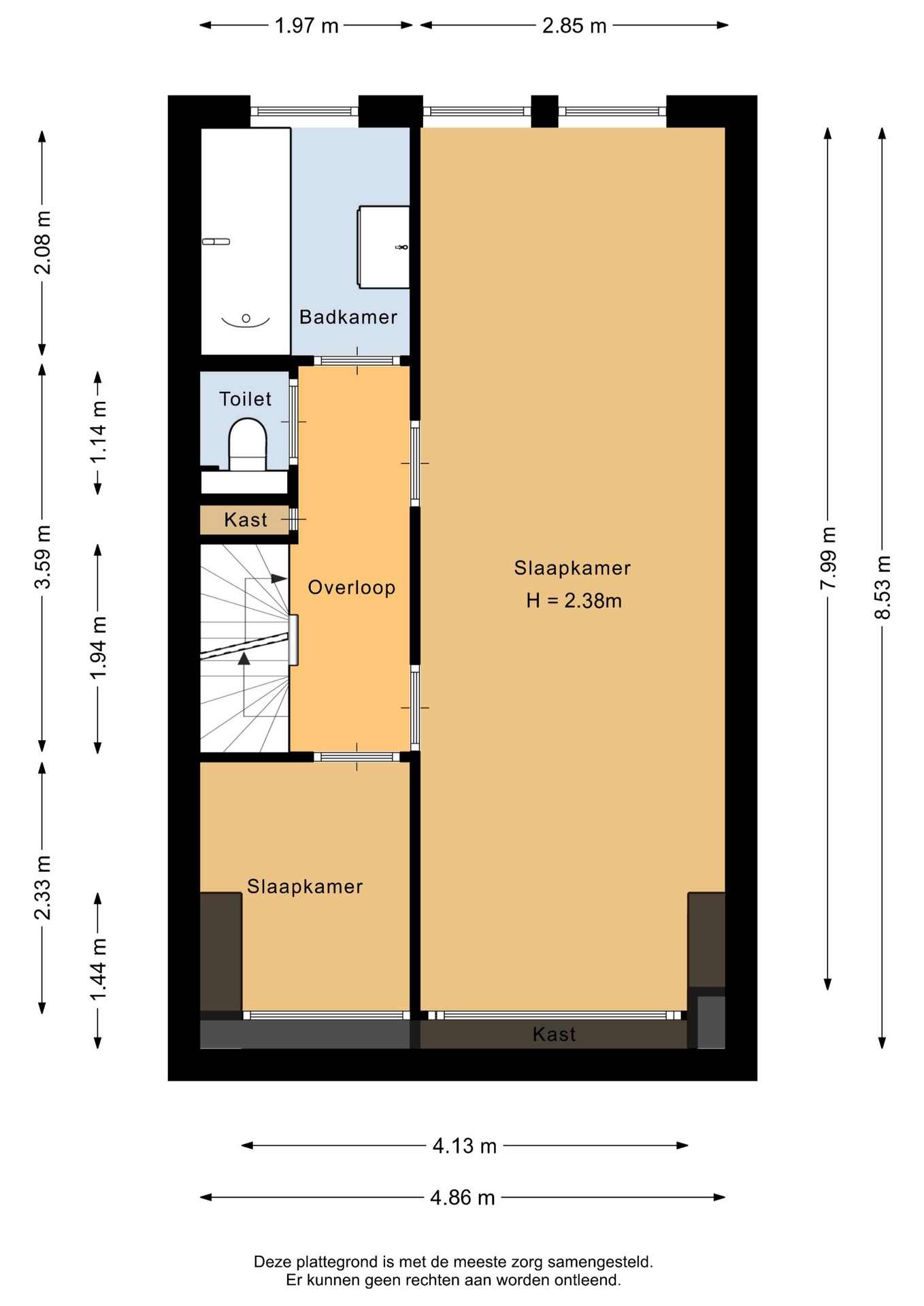 “Deze informatie is door ons met de nodige zorgvuldigheid samengesteld. Onzerzijds wordt echter geen enkele aansprakelijkheid aanvaard voor enige onvolledigheid, onjuistheid of anderszins, dan wel de gevolgen daarvan. Alle opgegeven maten en oppervlakten zijn indicatief.”