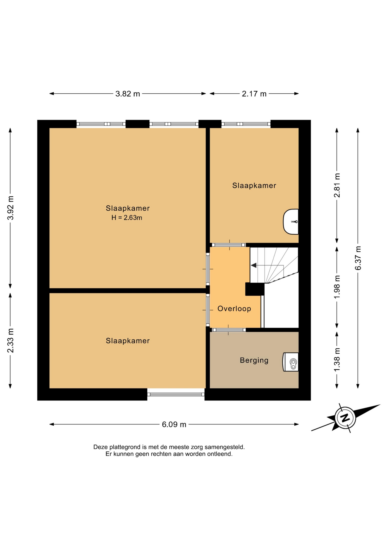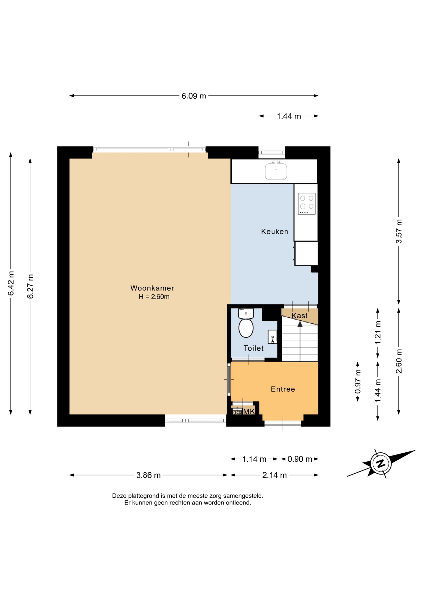 “Deze informatie is door ons met de nodige zorgvuldigheid samengesteld. Onzerzijds wordt echter geen enkele aansprakelijkheid aanvaard voor enige onvolledigheid, onjuistheid of anderszins, dan wel de gevolgen daarvan. Alle opgegeven maten en oppervlakten zijn indicatief.”
