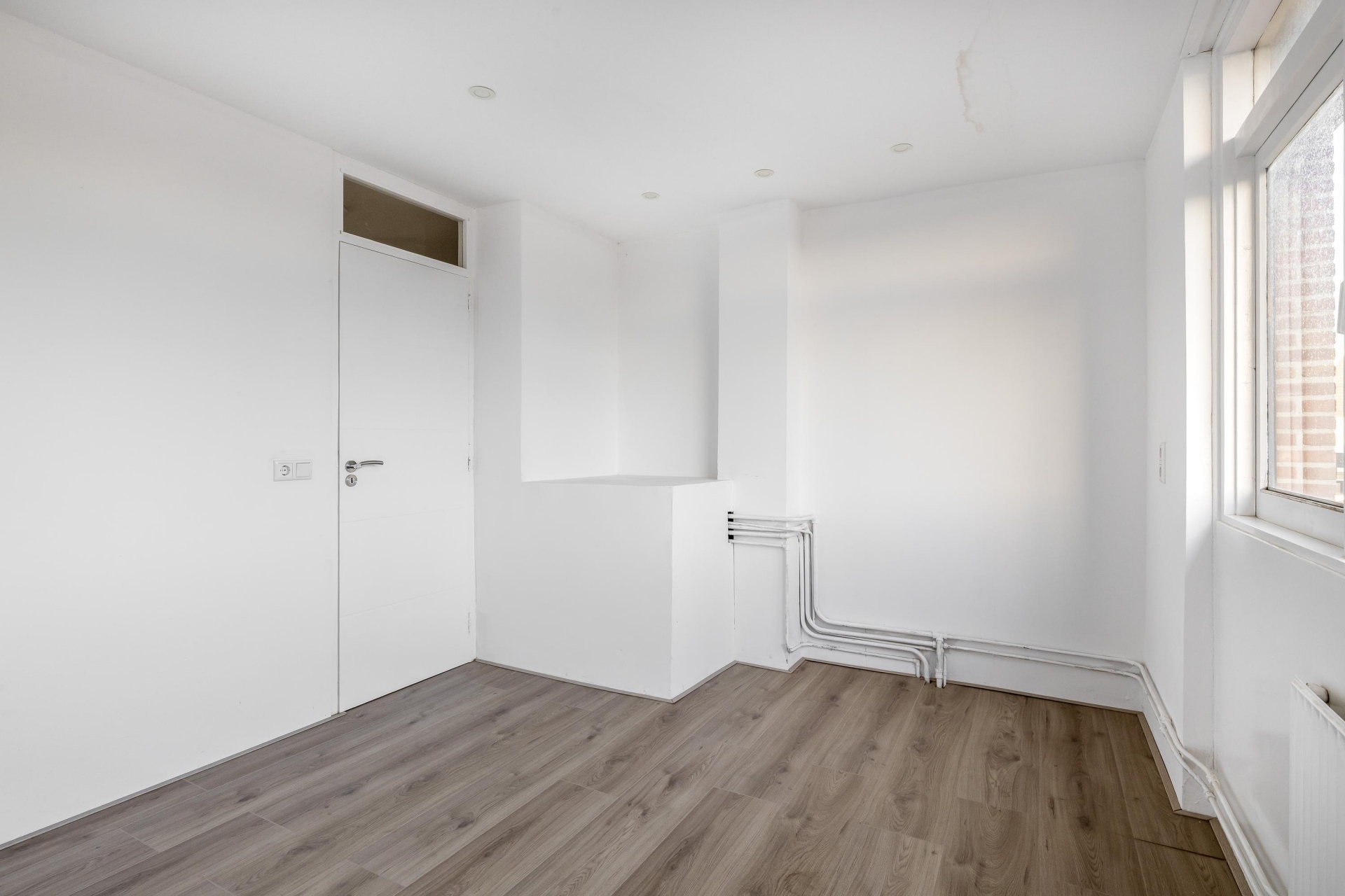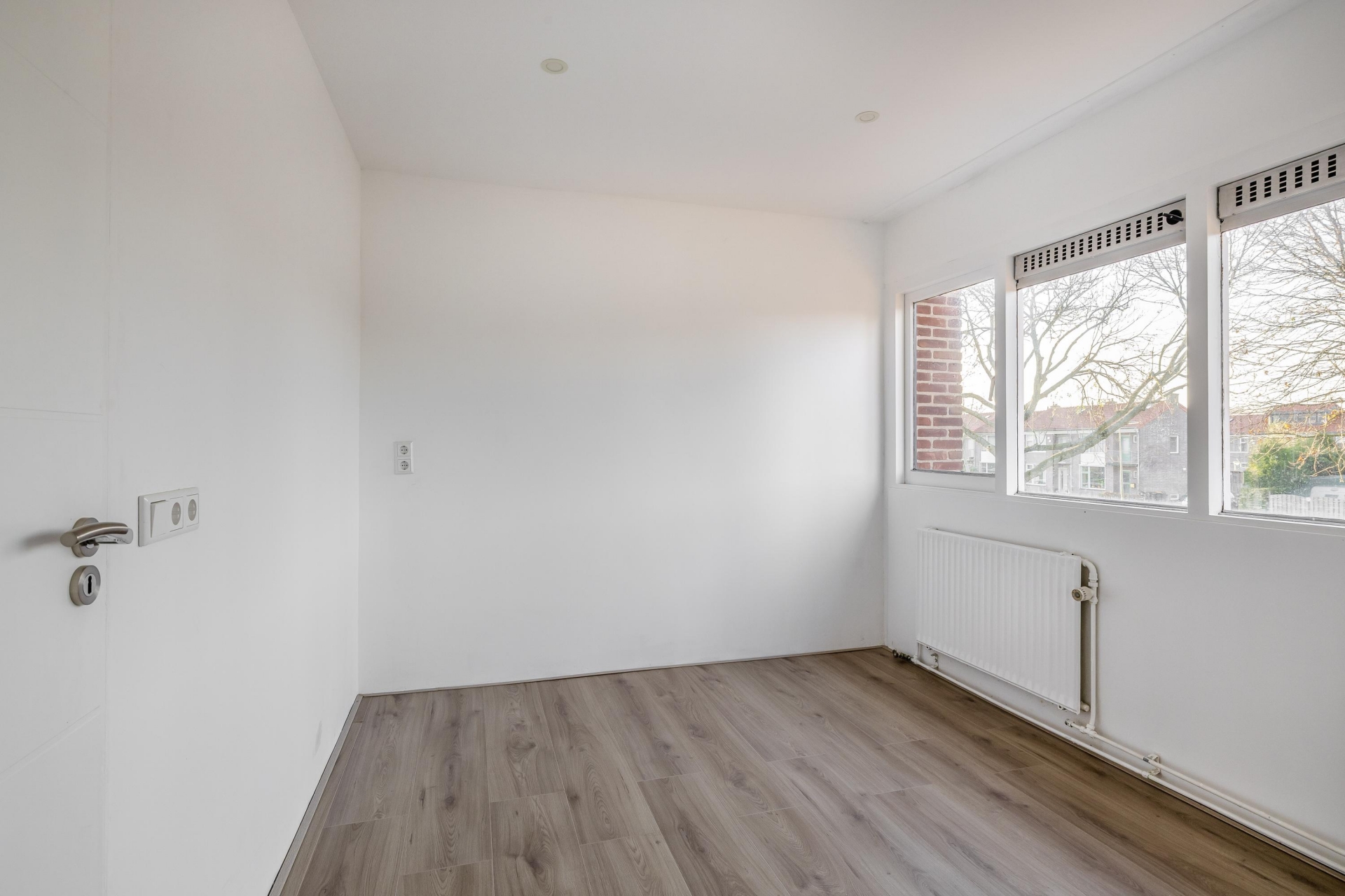 Op de eerste verdieping bevinden zich twee goed bemeten slaapkamers. De grootste ligt aan de voorzijde van het huis en biedt meer dan genoeg ruimte voor een tweepersoonsbed en kledingkast. De tweede slaapkamer aan de achterzijde is ook volwaardig, en ideaal als logeer-, werk- of kinderkamer. De badkamer is een prettig extraatje in dit huis: deze is namelijk vergroot, waardoor er nu ruimte is voor een douche, wastafel en toilet – strak afgewerkt en klaar voor gebruik.