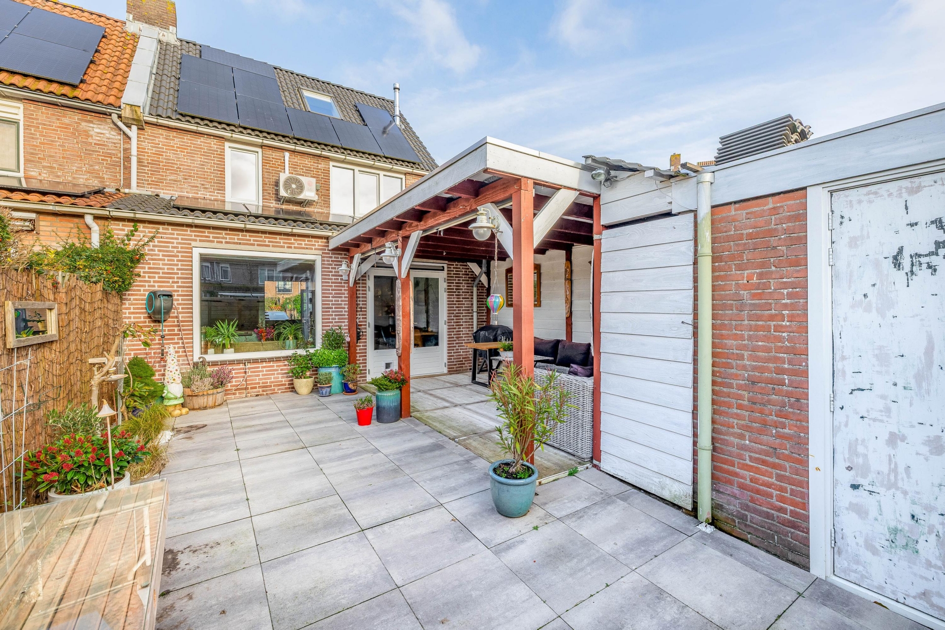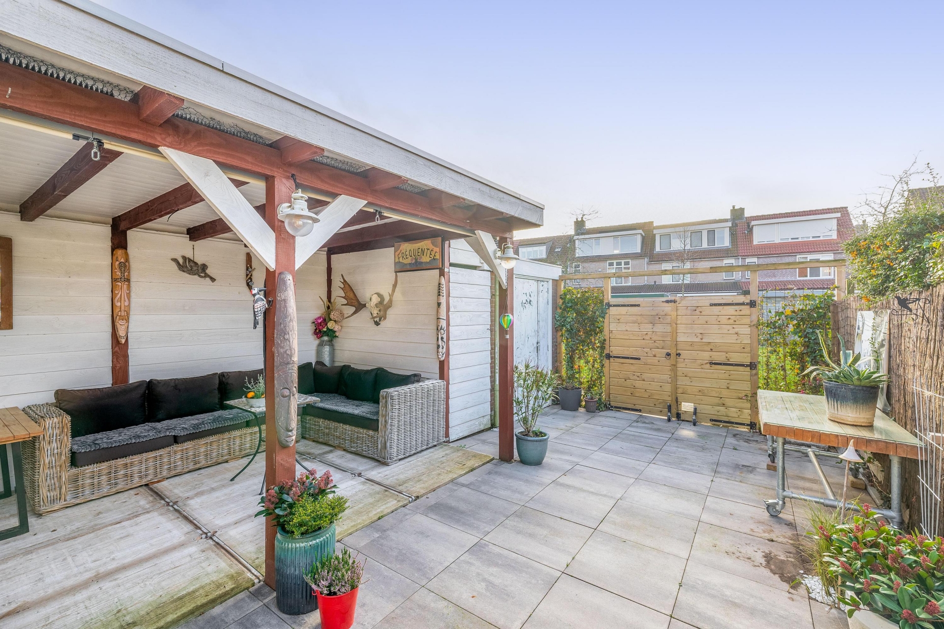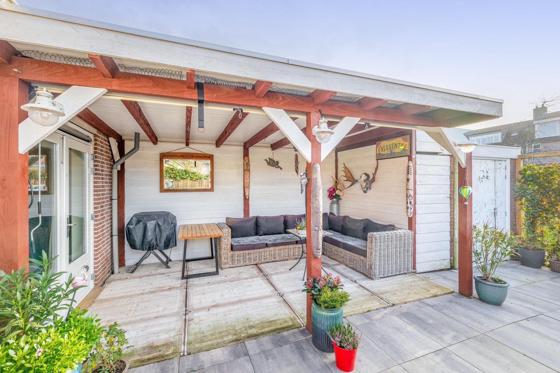 Stap je via de woonkamer de tuin in, dan kom je uit in een groene oase op het zuidwesten – perfect voor zonliefhebbers. De tuin is recent (2025) opnieuw ingericht, inclusief een nieuwe, extra brede poort met dubbele deur. Blikvanger is de riante (door de verkoper) handgemaakte veranda (2021) van Douglas hout: een ideale plek voor een lange zomeravond, een kop koffie in de ochtend of gewoon om tot rust te komen. De tuin is onderhoudsvriendelijk aangelegd met grote tegels, borders en sfeervolle beplanting. Aan opbergruimte geen gebrek, want er zijn ook nog twee praktische bergingen in de tuin aanwezig.