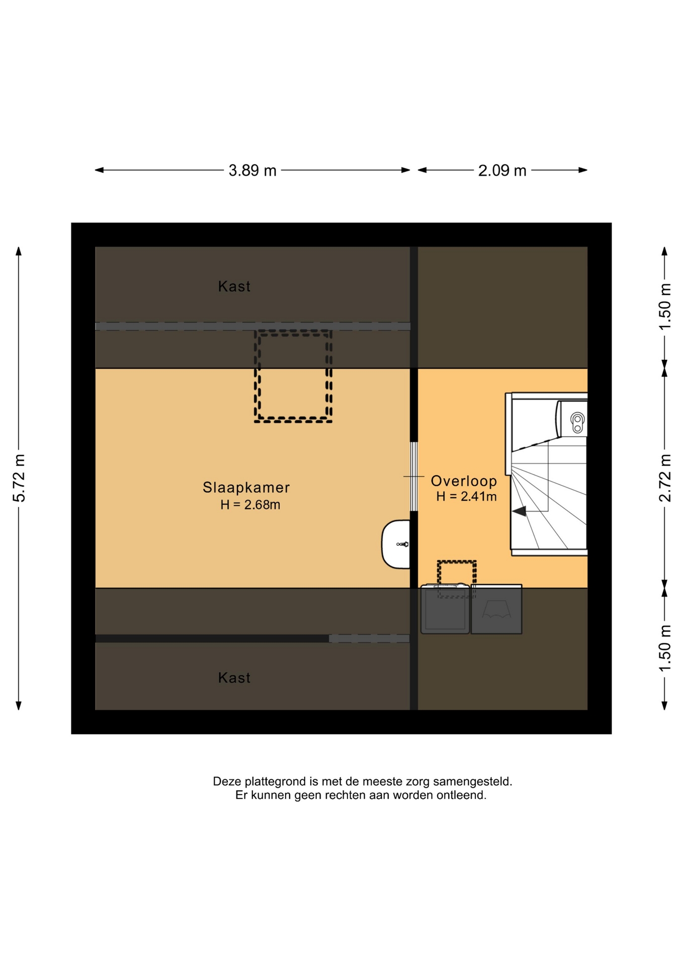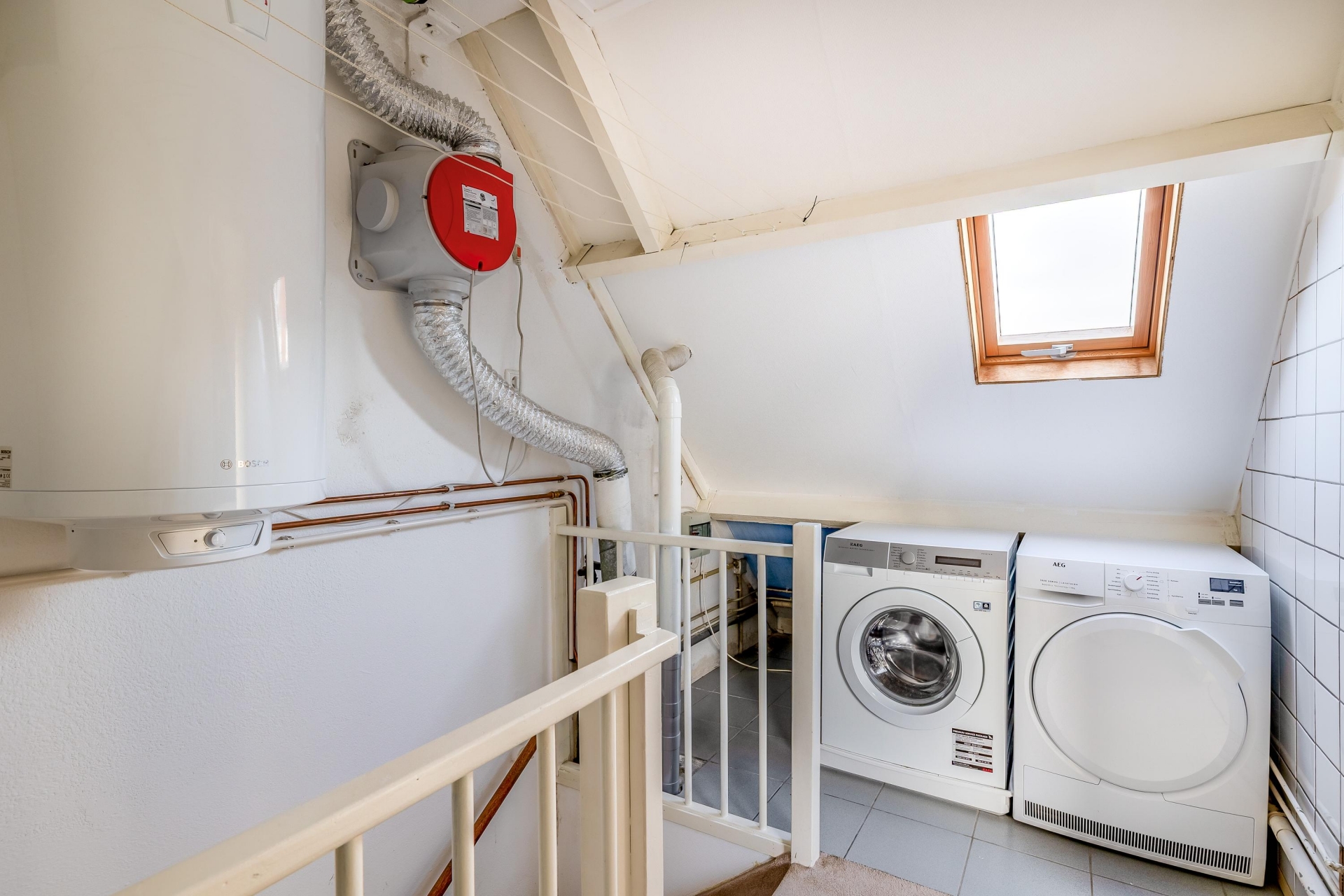 De derde slaapkamer bevindt zich op de tweede verdieping van de woning waar op de overloop ook de wasmachine en droger aansluiting zitten.