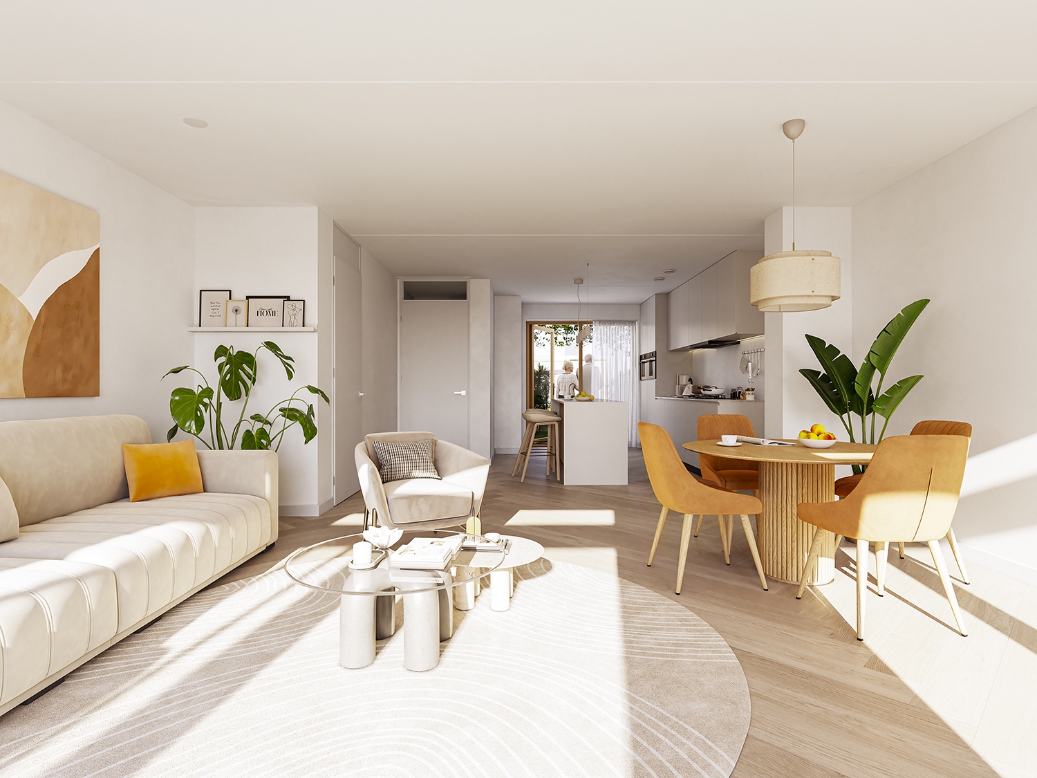 Betreft bouwnummer 22 van het type Esdoorn en is een comfortabele, levensloopwoning met alles binnen handbereik. De riante woonkamer met open keuken en eethoek biedt u volop leefruimte en twee royale buitenruimtes: aan de voor- én achterzijde van uw woning geniet u van een ruim terras.