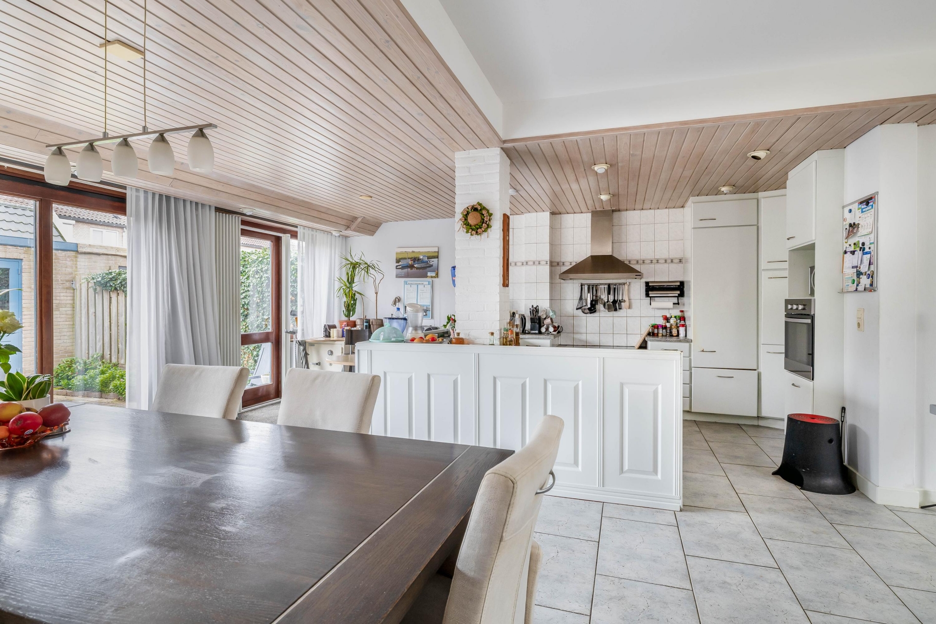 De ruime woonkamer is zowel aan de zij- als achterkant uitgebouwd en is licht dankzij de grote ramen aan de voor- en achterzijde. De open keuken staat in verbinding met de eetkamer en is slim ingedeeld met veel kastruimte en werkblad. Er is plek genoeg voor een grote eettafel, ideaal voor gezellige etentjes met vrienden of gewoon lekker met het gezin.