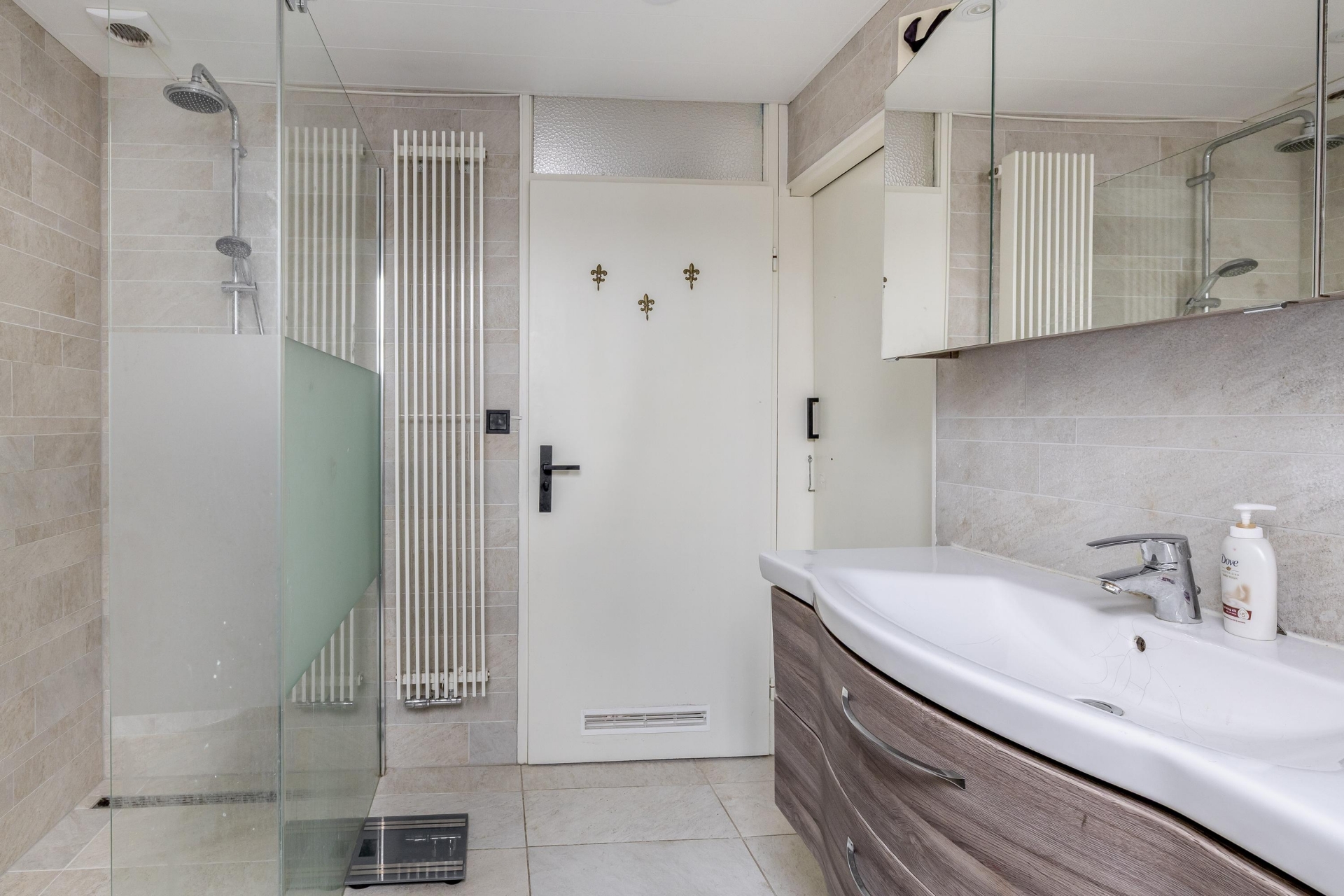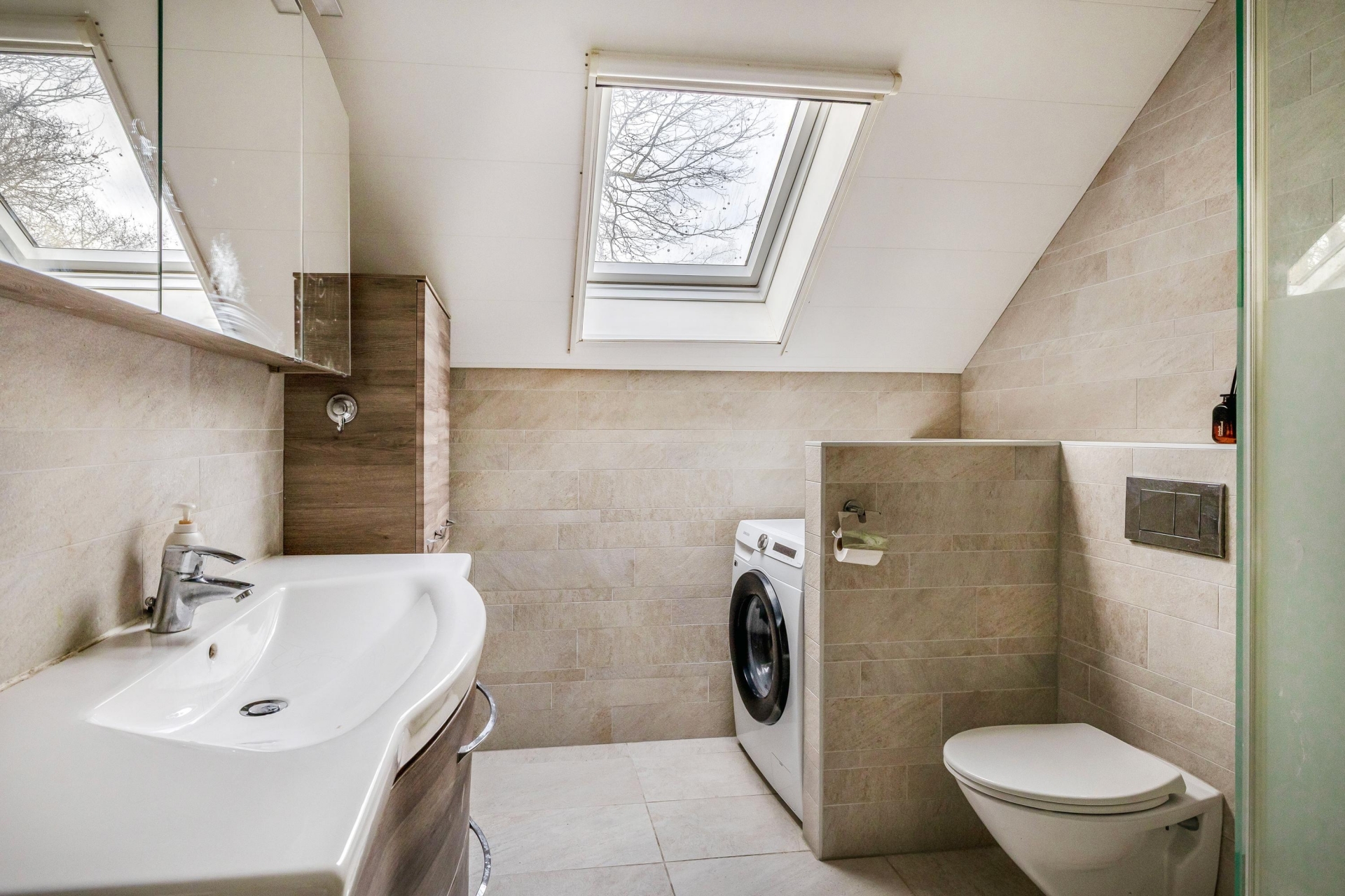 Op de eerste verdieping zijn 3 slaapkamers en een badkamer. De badkamer is volledig betegeld en voorzien van een douche, wastafel met meubel, toilet en de aansluiting voor de wasmachine. Door het aanwezige dakraam is er voldoende daglicht toetreding en genoeg natuurlijke en mechanische ventilatie. Middels een vaste trap is er toegang tot de 2e verdieping. Hier is een ruime 4e slaapkamer aanwezig. Aan bergruimte ook geen gebrek. Achter een schot is voldoende ruimte voor het opbergen van de seizoensgebonden spullen.