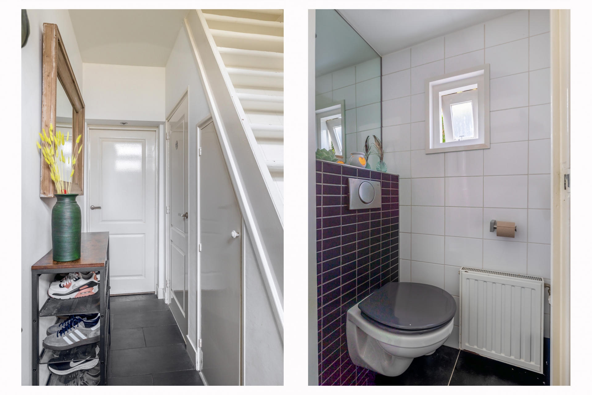Zodra je de woonkamer binnenstapt, valt het vele daglicht op. De grote ramen zorgen voor een open gevoel, terwijl de originele details je herinneren aan de rijke geschiedenis van het huis. Hier is het ’s avonds heerlijk knus en overdag juist een lichte plek om te ontspannen of te werken. De open keuken sluit mooi aan op de leefruimte, waardoor je hier makkelijk contact houdt met gezelschap terwijl je staat te koken. De badkamer is compact maar praktisch ingedeeld, en uiteraard is er ook een separaat toilet aanwezig.