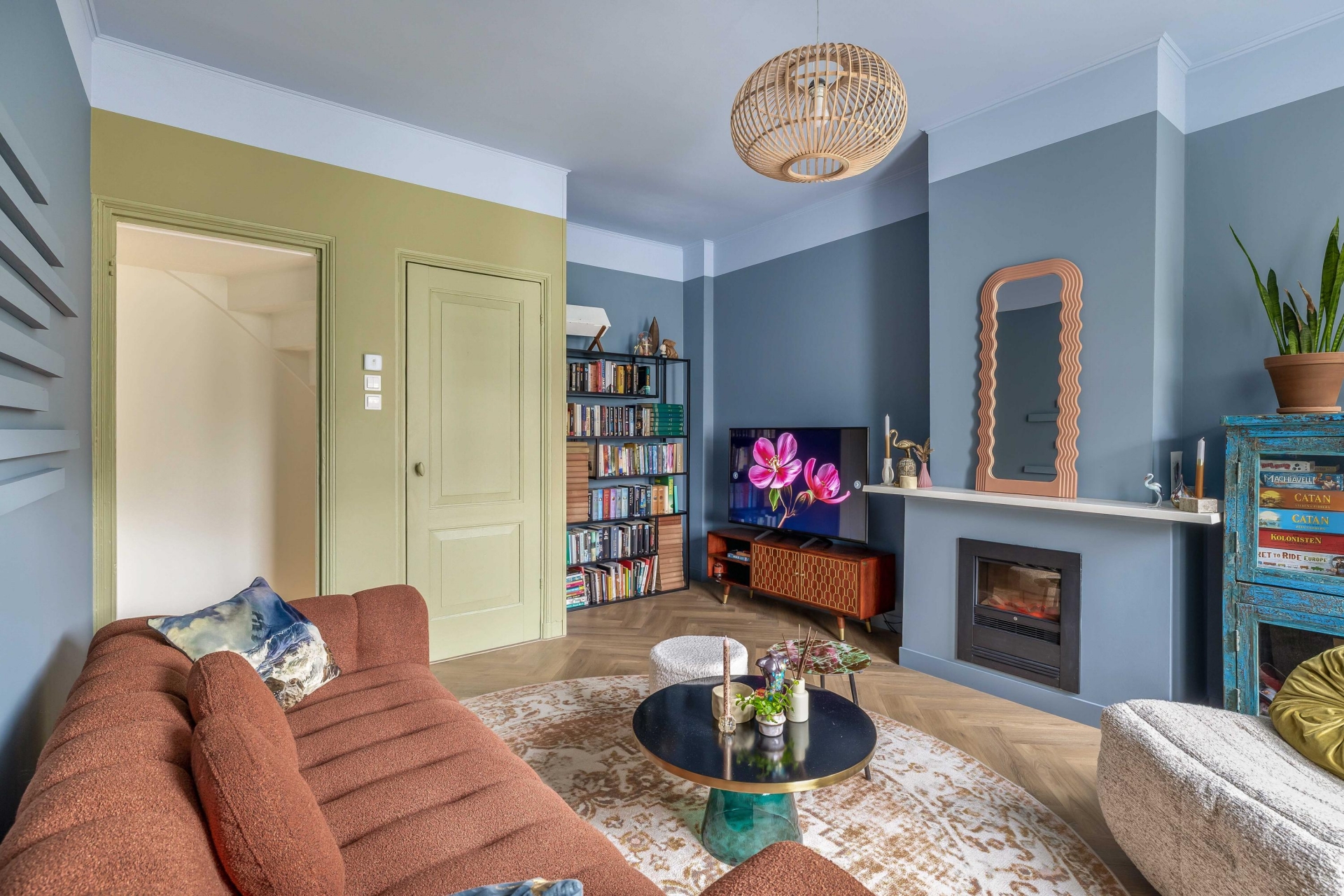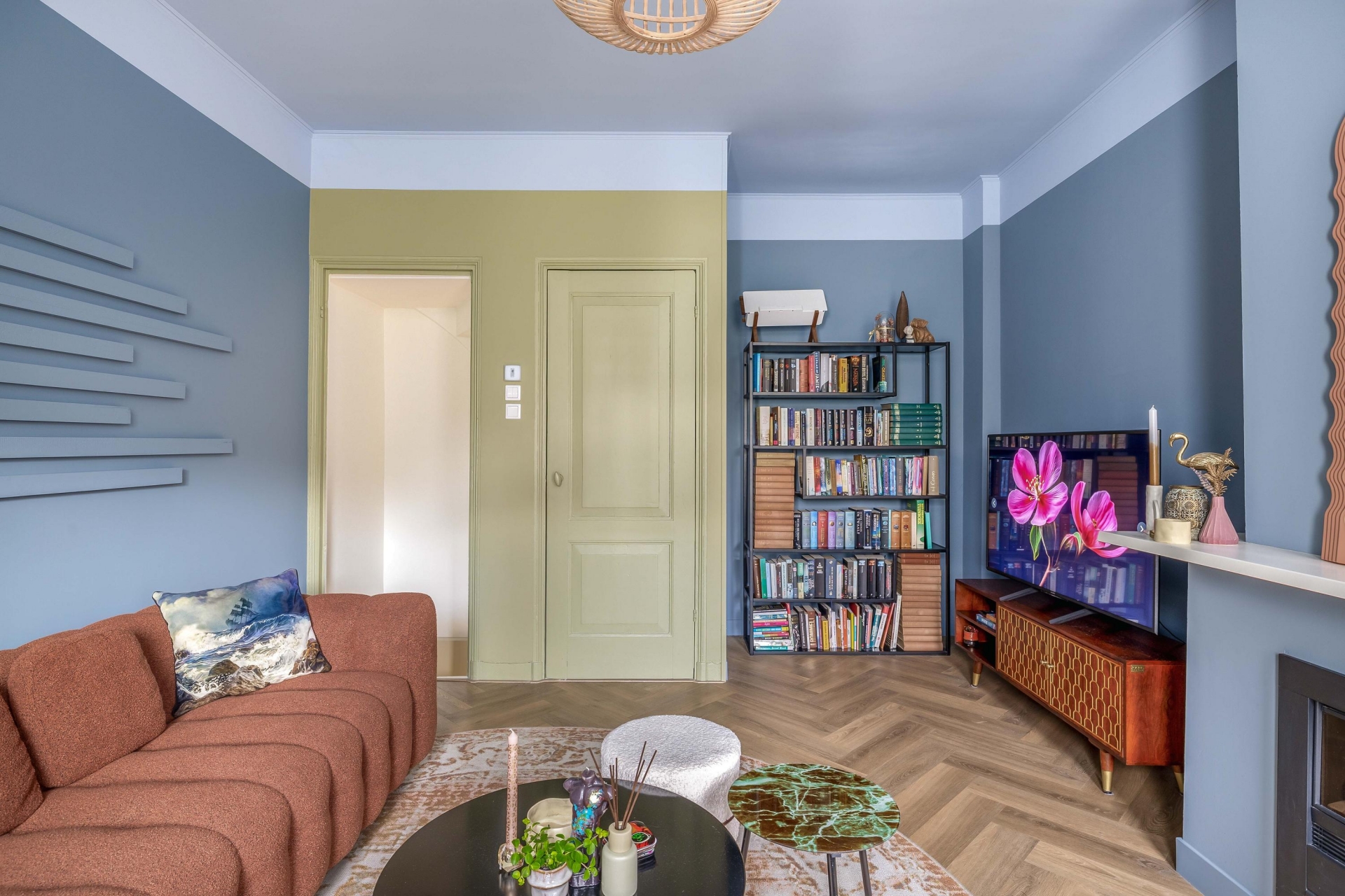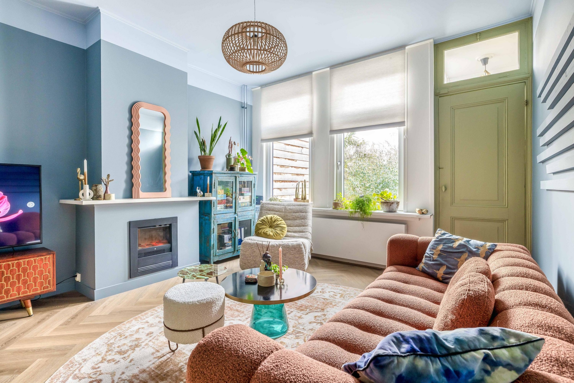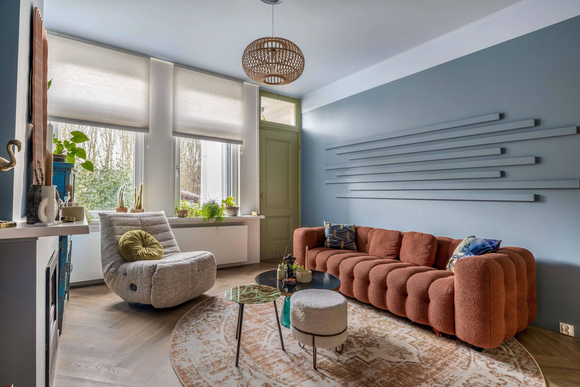De woonkamer op de bel-etage voelt knus en licht tegelijk. Een fijne plek om neer te ploffen op de bank, een serie te kijken of vrienden uit te nodigen voor een borrel. Hier ervaar je echt het gevoel van thuiskomen.