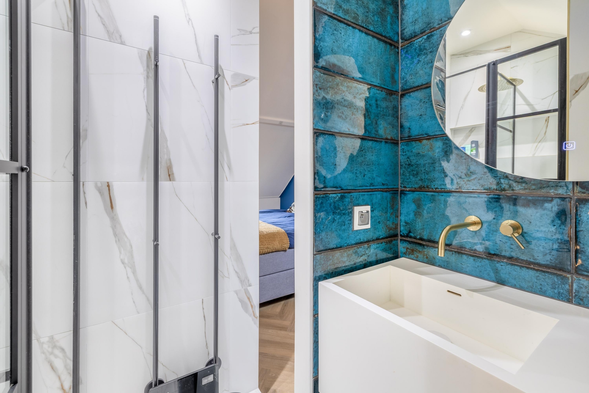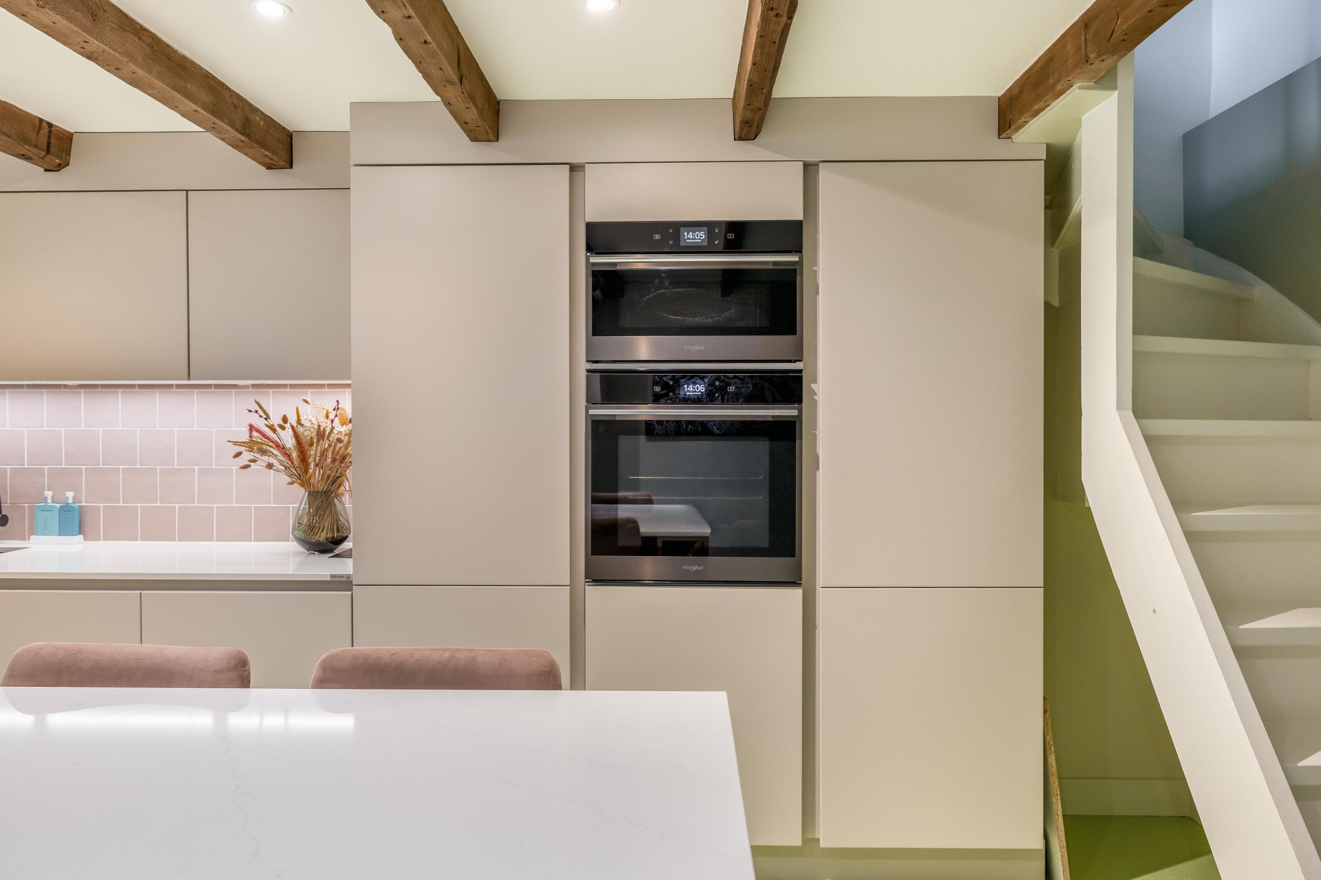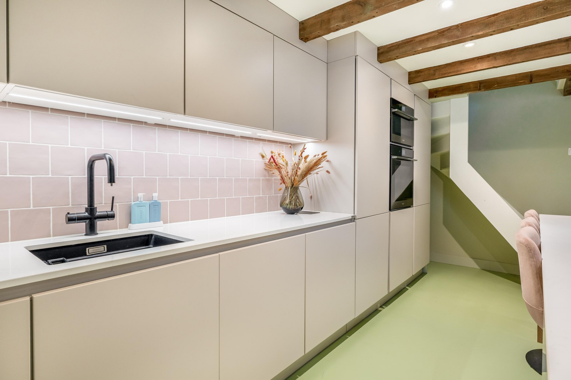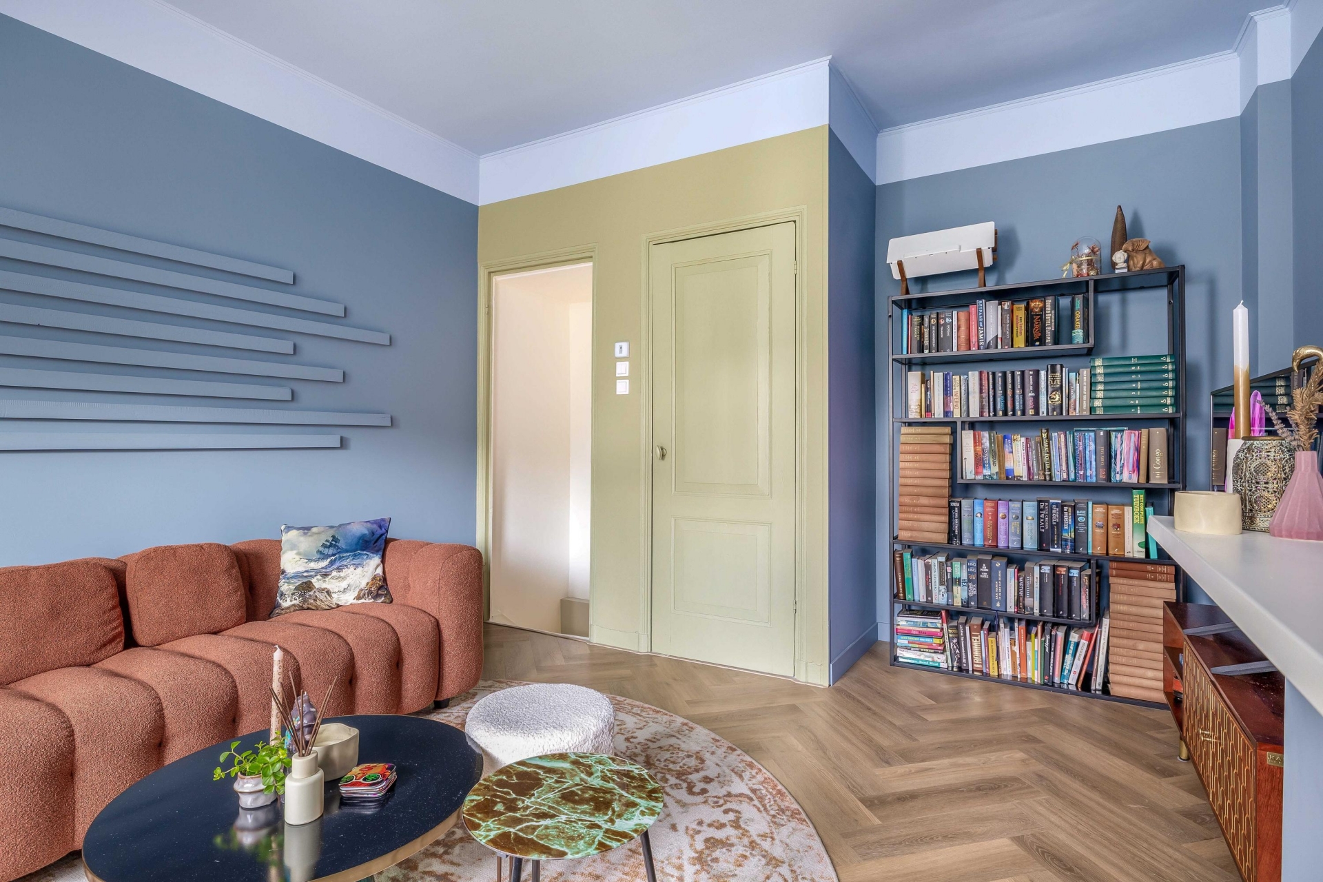De woonkamer op de bel-etage voelt knus en licht tegelijk. Een fijne plek om neer te ploffen op de bank, een serie te kijken of vrienden uit te nodigen voor een borrel. Hier ervaar je echt het gevoel van thuiskomen.
