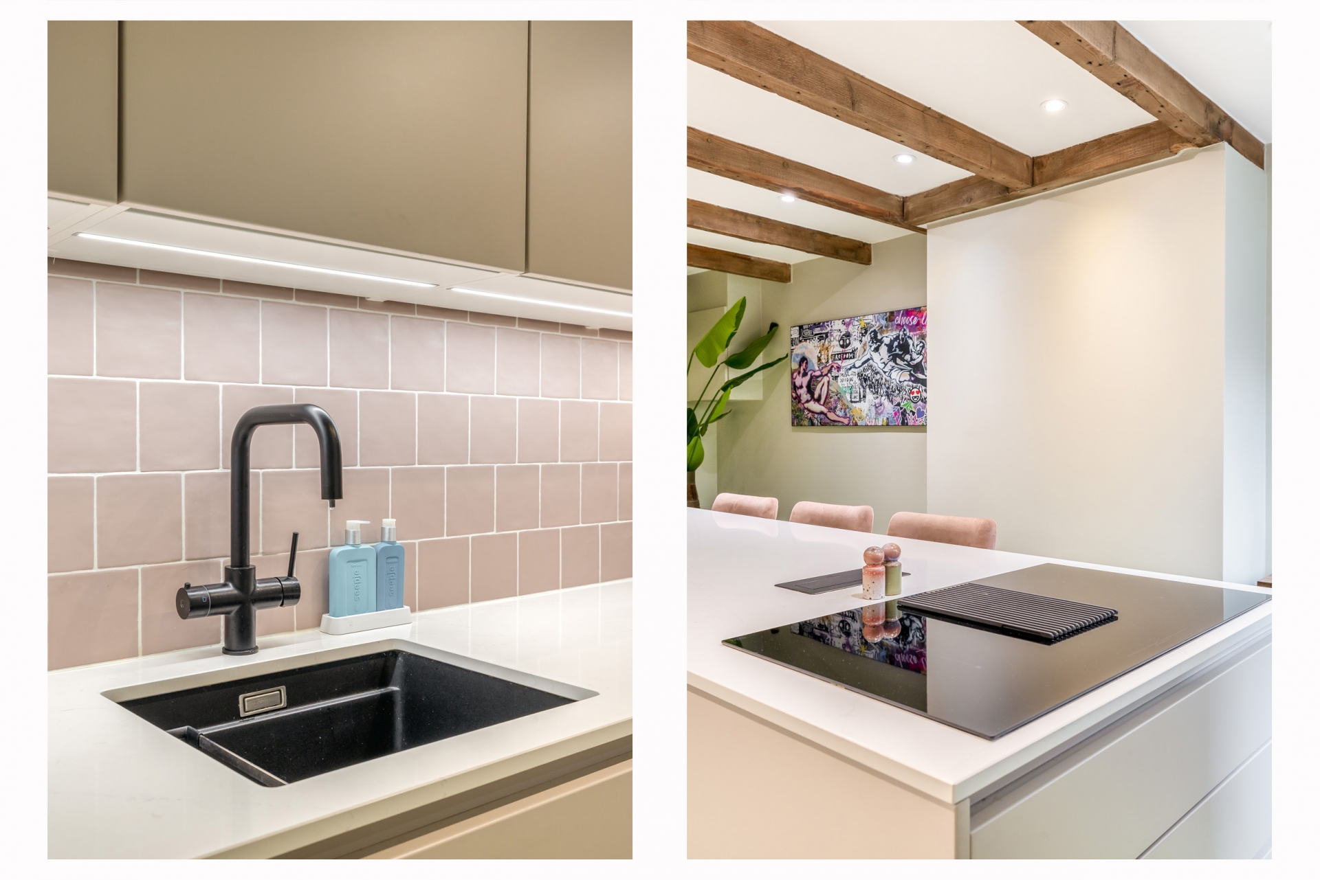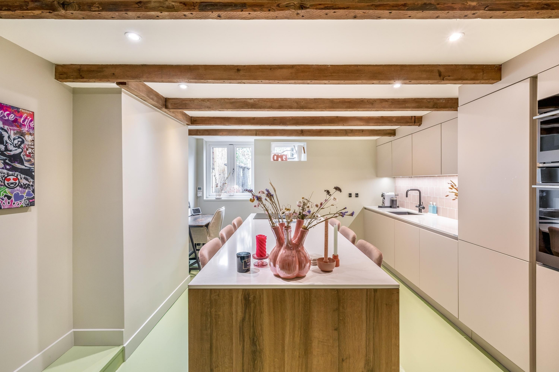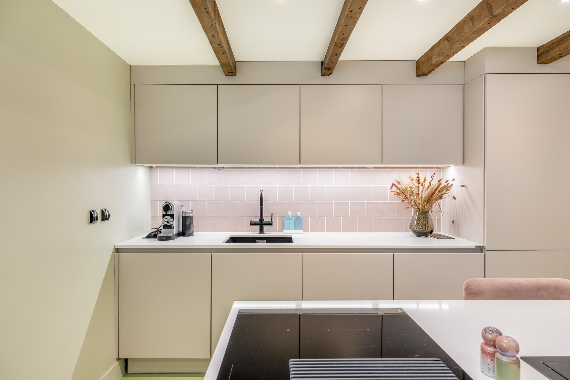 In het souterrain ligt de keuken en dat is niet zomaar een keuken. Dit is de plek waar het leven zich afspeelt. Het kookeiland nodigt uit om aan te schuiven, een glas wijn in te schenken en bij te praten terwijl er wordt gekookt. Lange avonden aan tafel, spontane etentjes en spelletjesavonden. De keuken (2022) is voorzien van alle gemakken: inductie kookplaat met geïntegreerde afzuiging, vaatwasser, koel-vriescombinatie, combi-oven, oven en Quooker. De keuken is voorzien van comfortabele vloerverwarming.
