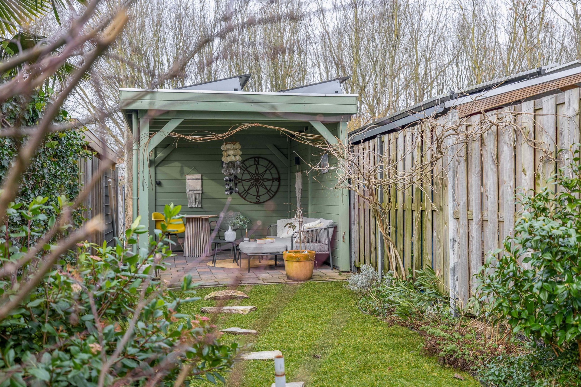 De keuken is voor mij het hart van het huis. De plek van lange avonden, goede gesprekken, etentjes met vrienden en fanatieke spelletjesavonden die altijd nét iets te lang doorgingen. Zodra het voorjaar begint, verplaatst het leven zich naar buiten. Van april tot en met oktober leef je hier praktisch in de tuin. Op elk moment van de dag is er wel een fijn plekje in de zon te vinden. ’s Ochtends rustig wakker worden met een kop koffie, overdag genieten van het groen om je heen en op lange zomeravonden blijven hangen.