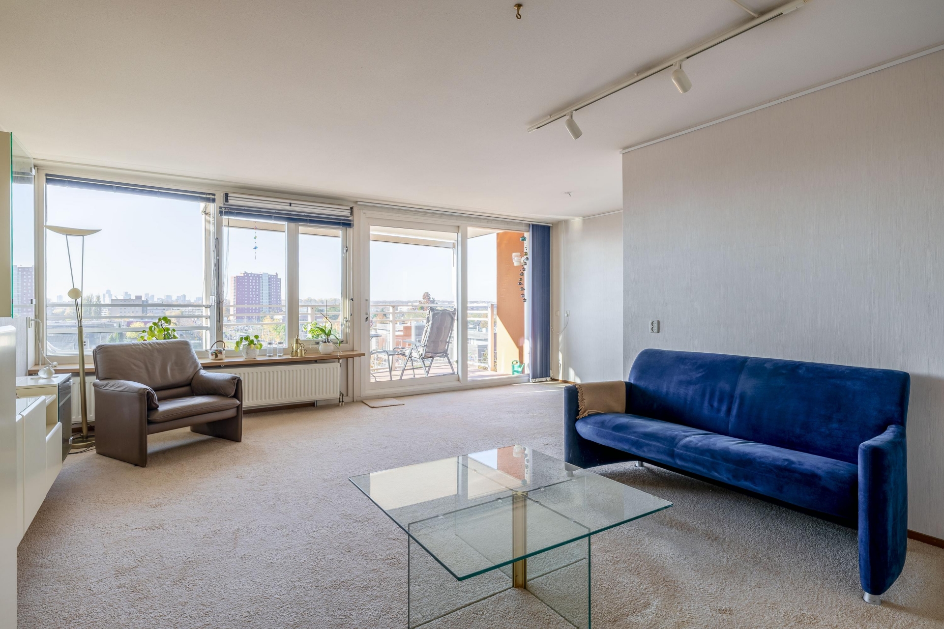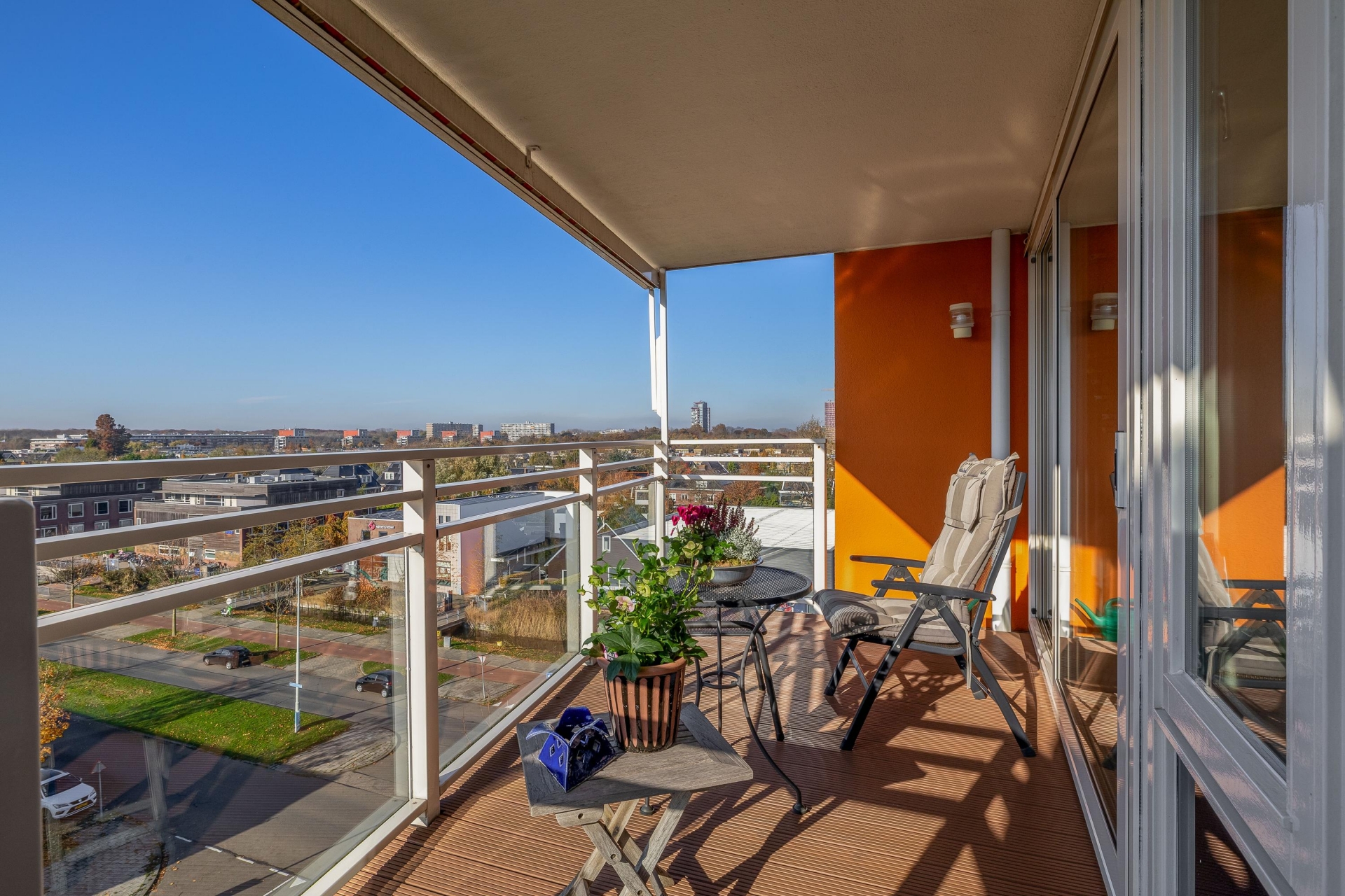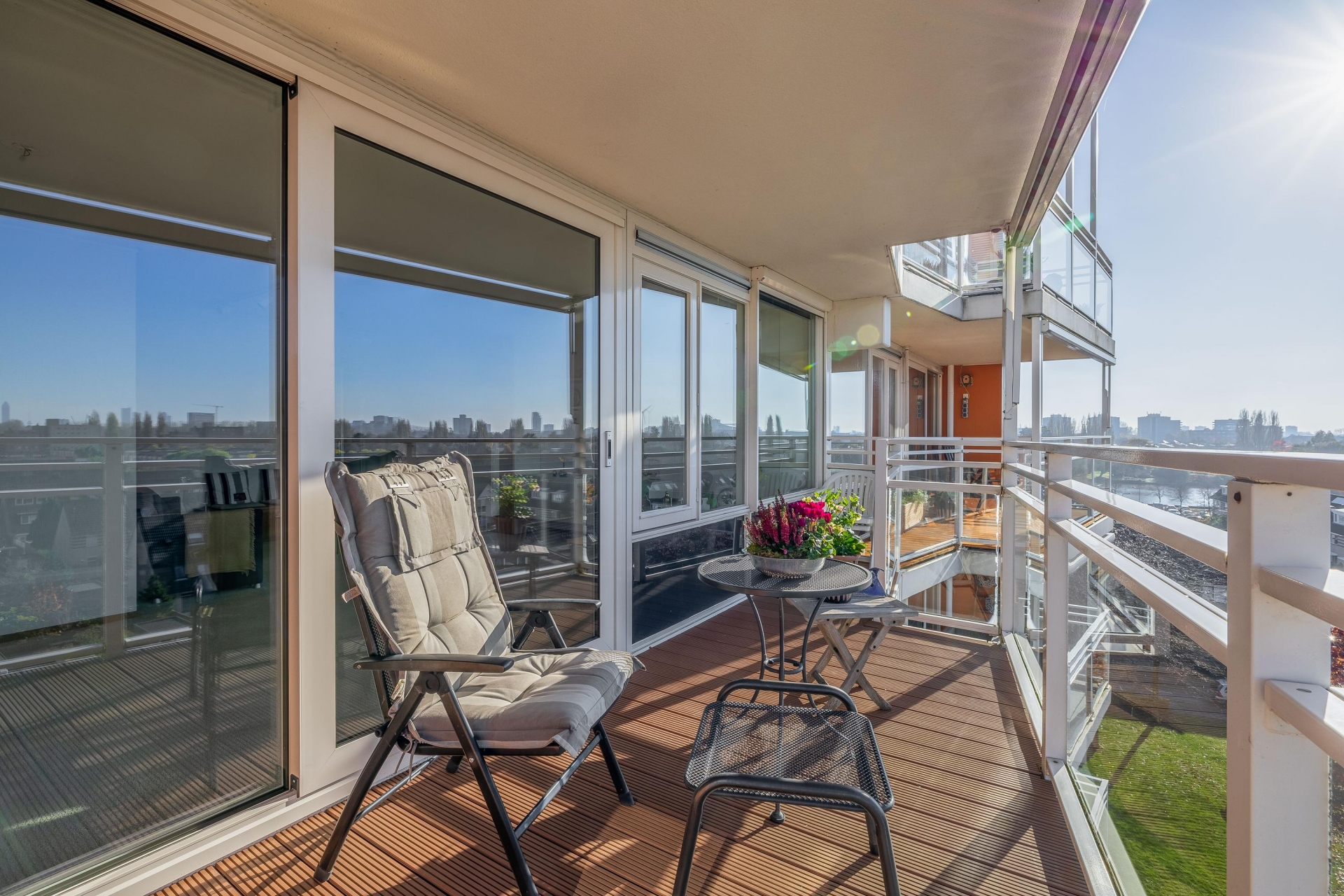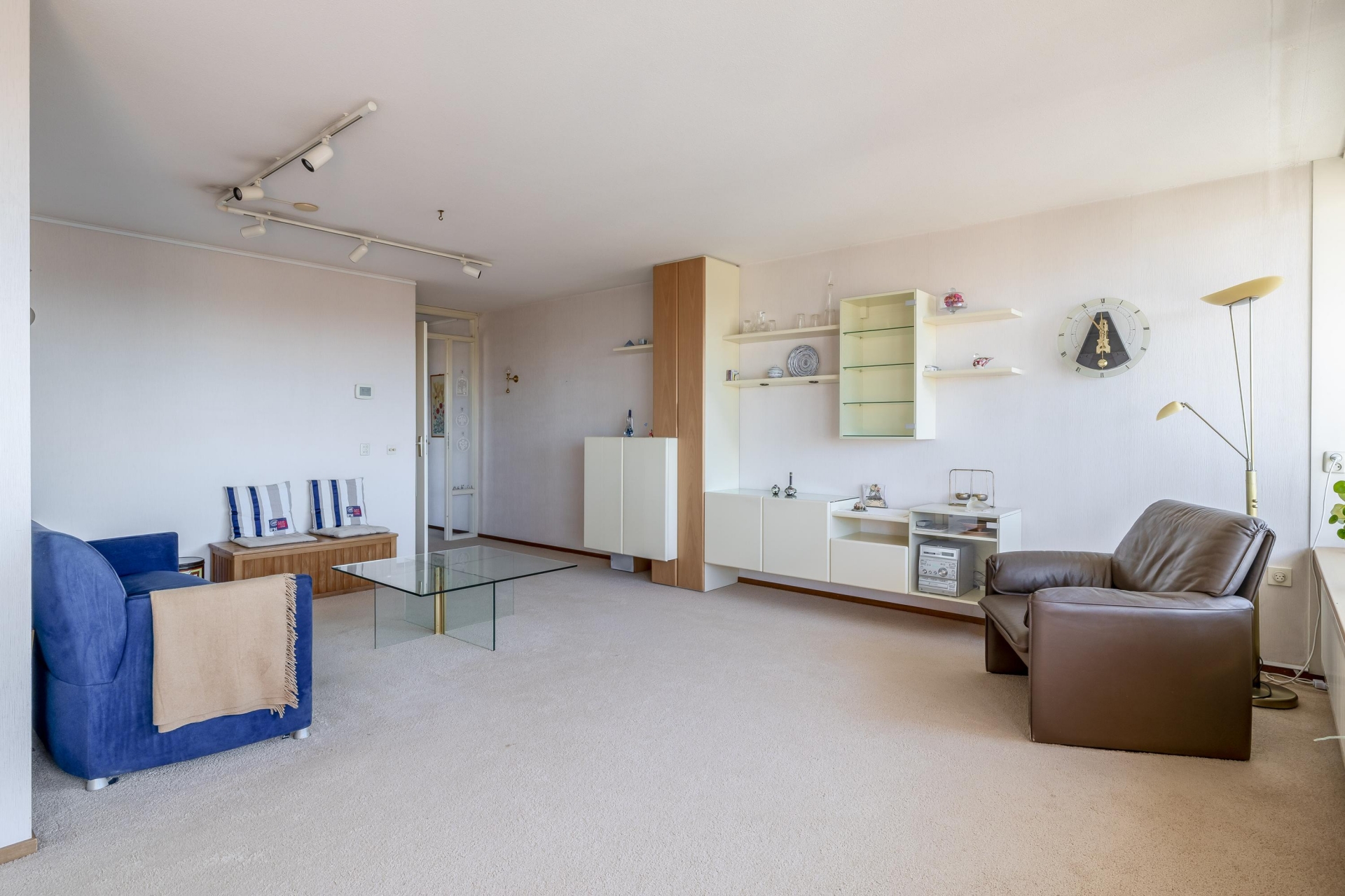 Via een brede schuifpui is hiervandaan toegang tot het brede balkon (10m²) op het noordwesten: een heerlijke plek om tot in de late uurtjes te genieten van zon en vrij uitzicht.
