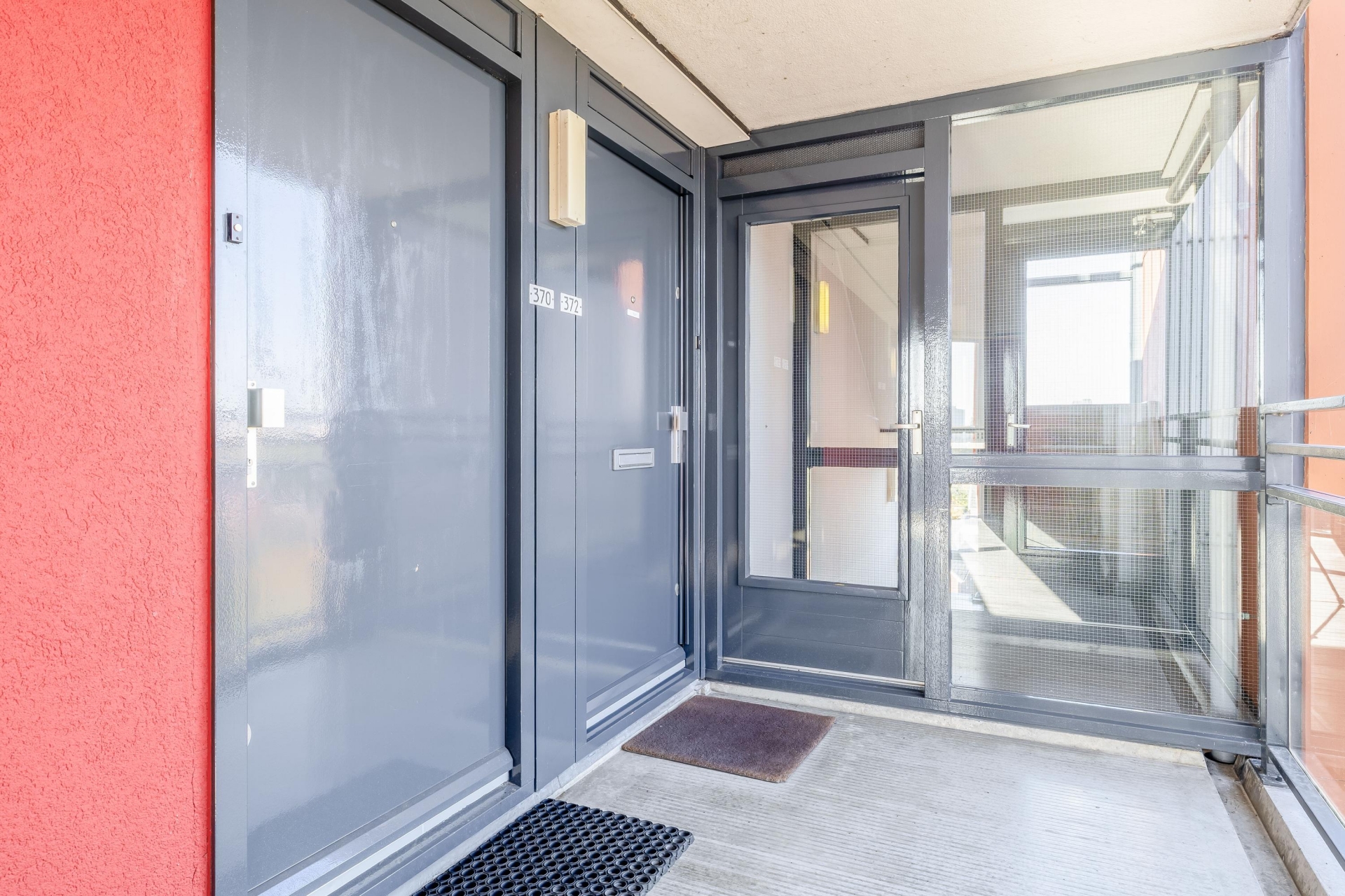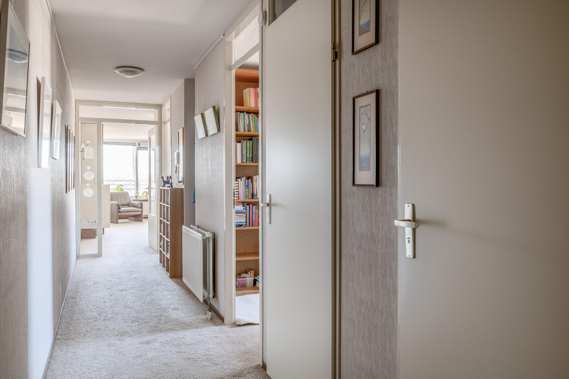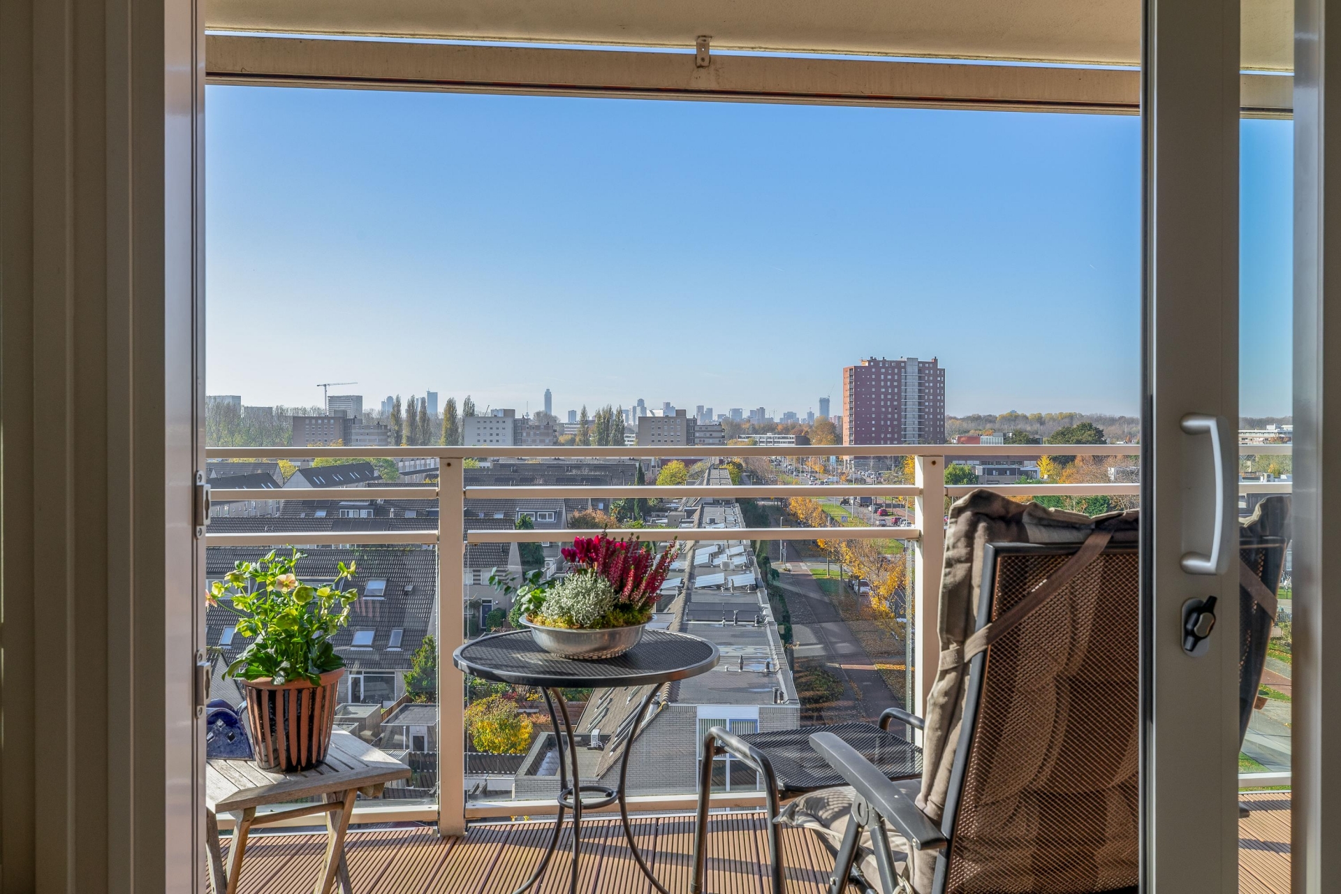 Via een brede schuifpui is hiervandaan toegang tot het brede balkon (10m²) op het noordwesten: een heerlijke plek om tot in de late uurtjes te genieten van zon en vrij uitzicht.