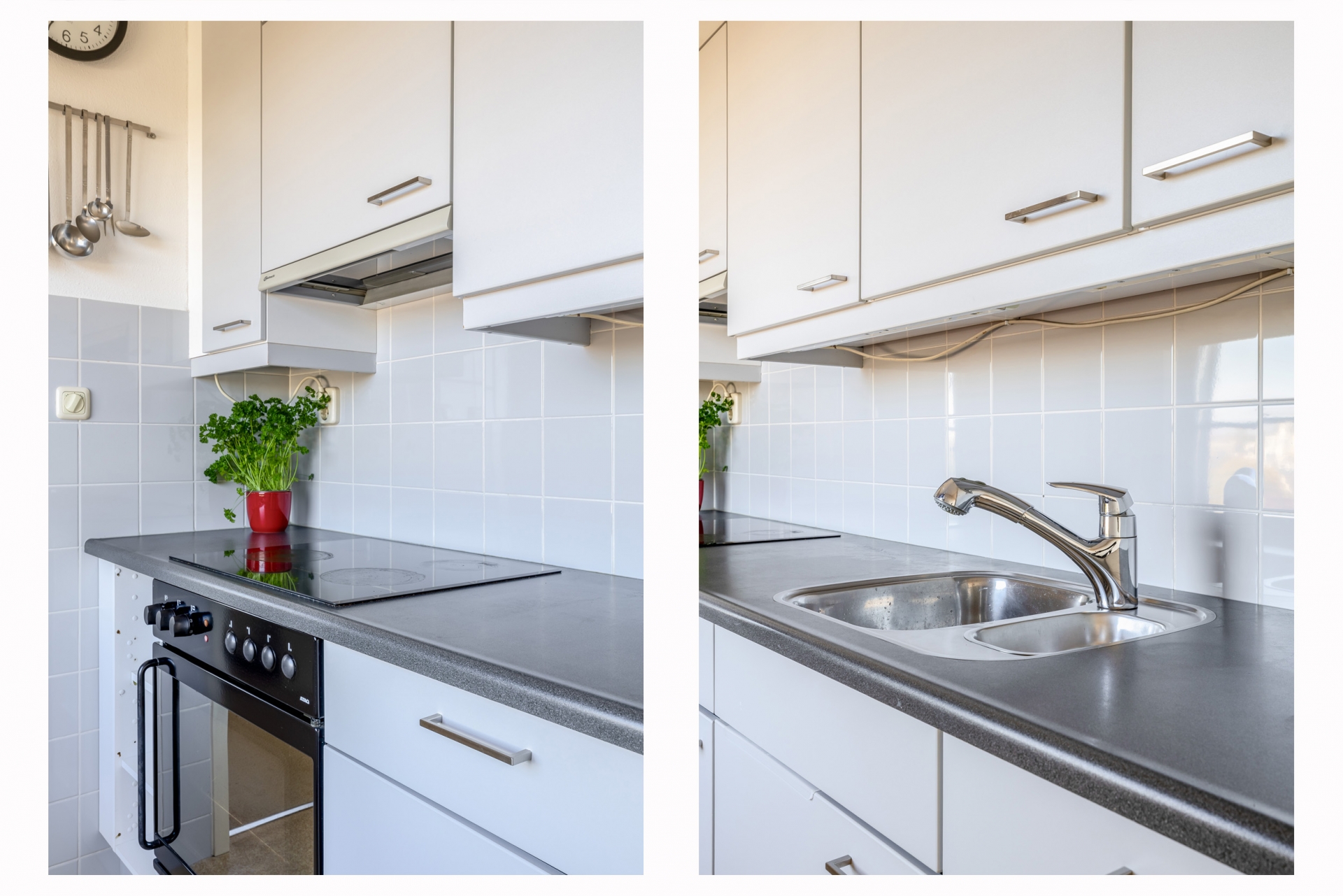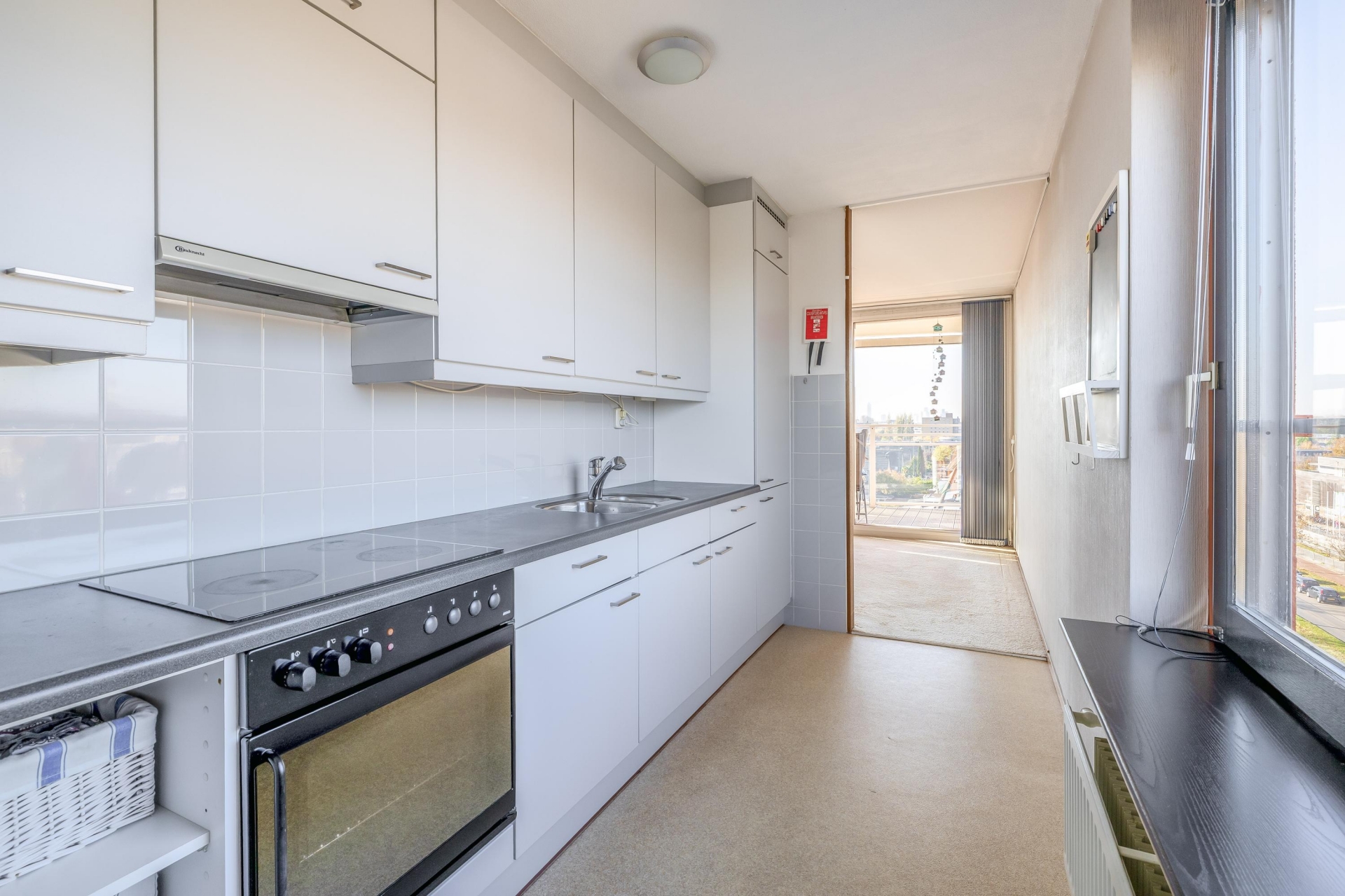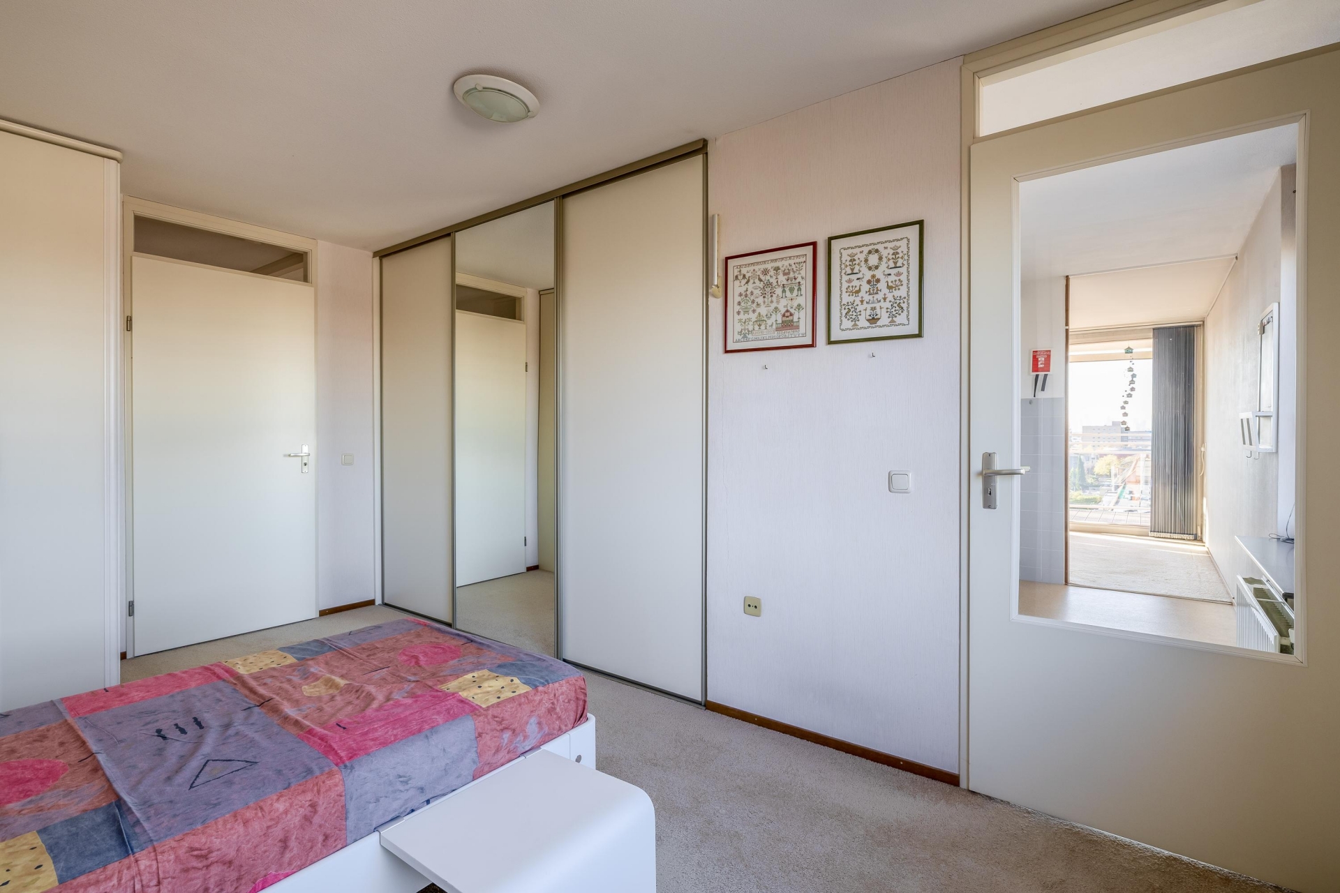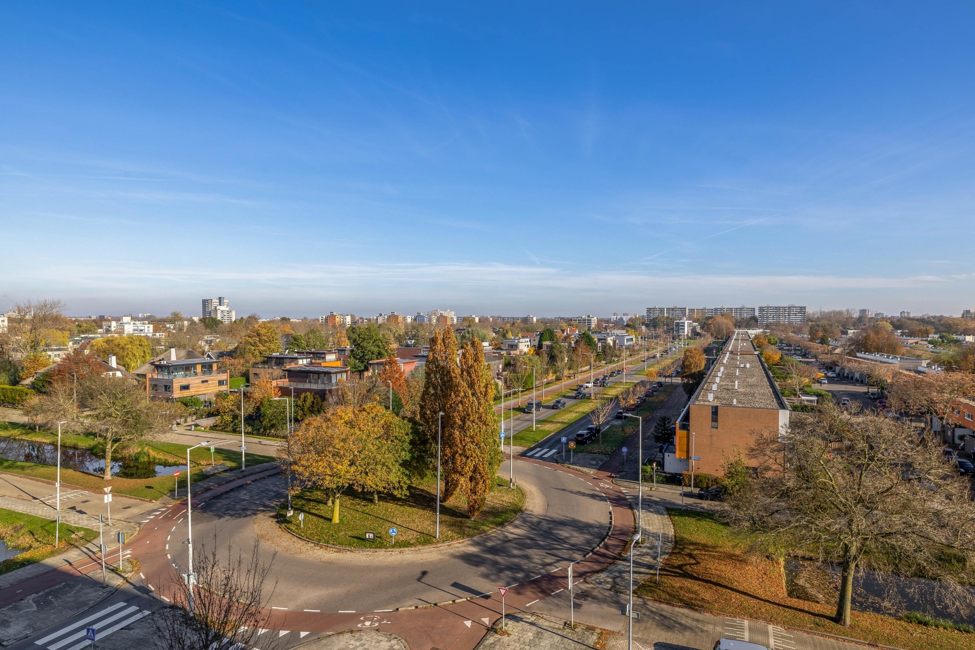 Via een brede schuifpui is hiervandaan toegang tot het brede balkon (10m²) op het noordwesten: een heerlijke plek om tot in de late uurtjes te genieten van zon en vrij uitzicht.