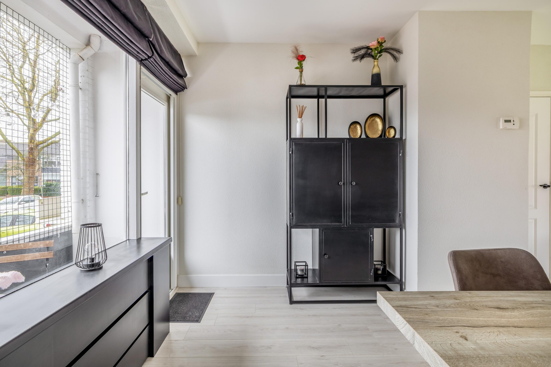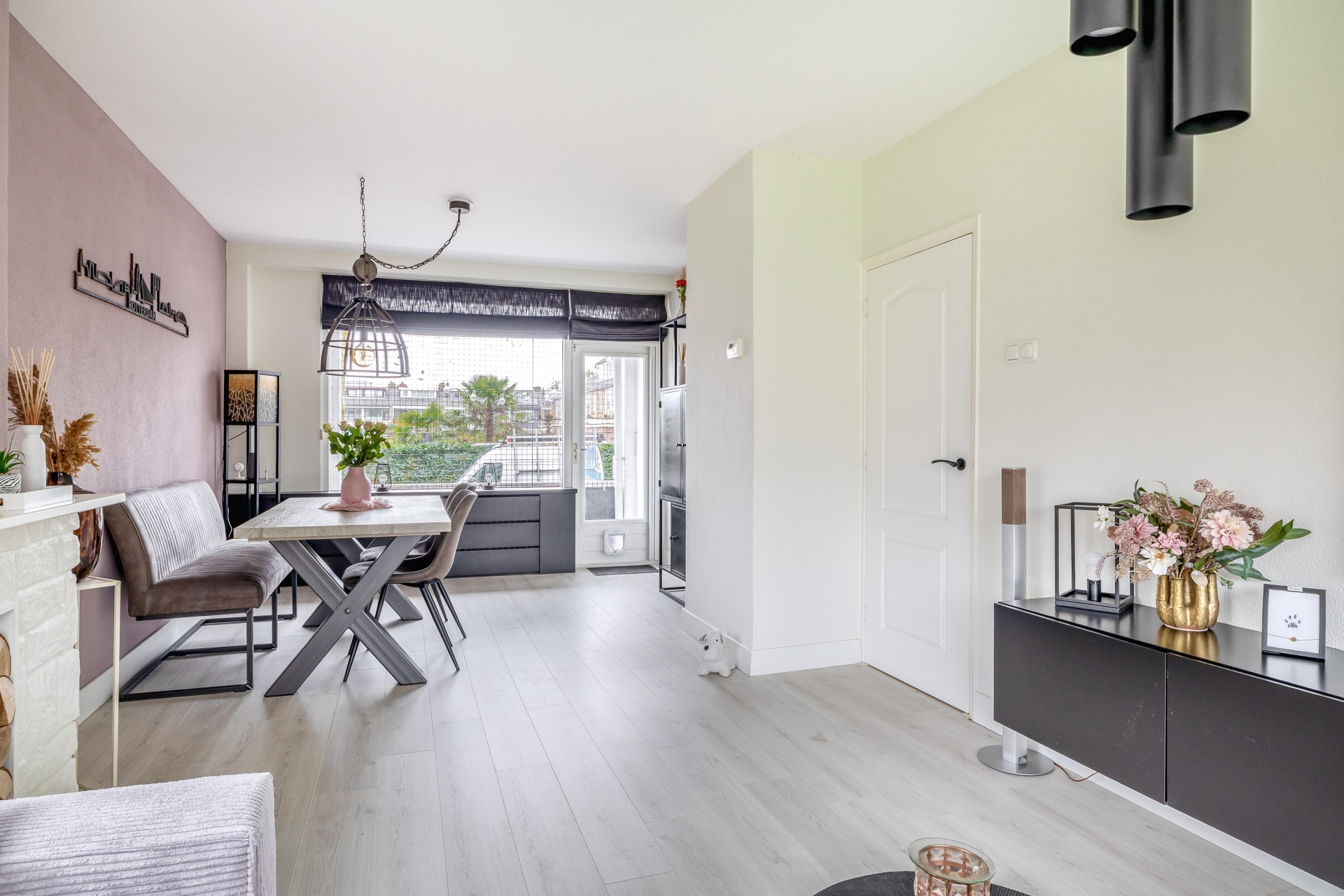 Wat direct opvalt is het licht. Door de hoekligging en de grote ramen aan twee zijden valt het daglicht rijkelijk naar binnen. Vanuit de woonkamer kijk je vrij weg over het groen, wat zorgt voor een prettig en open gevoel.