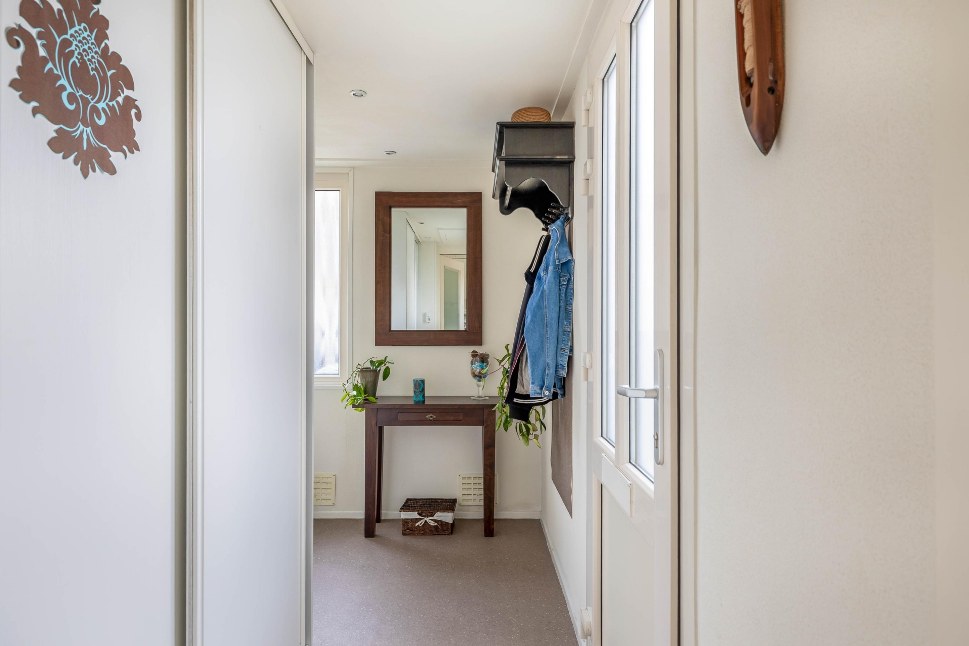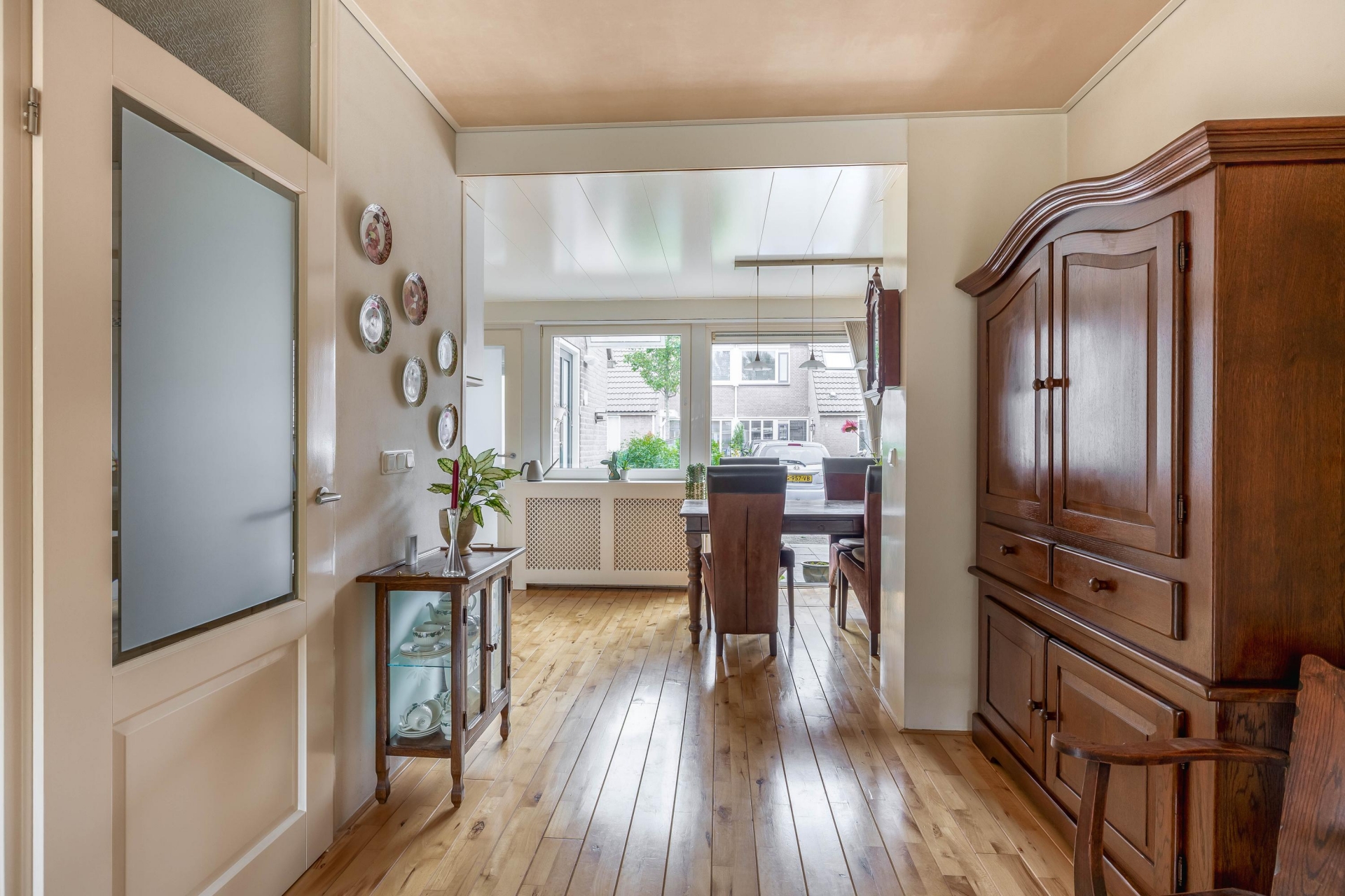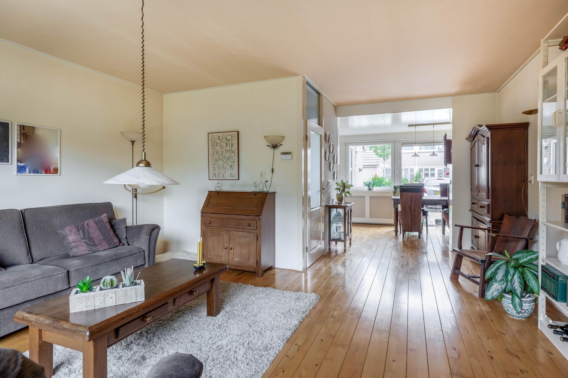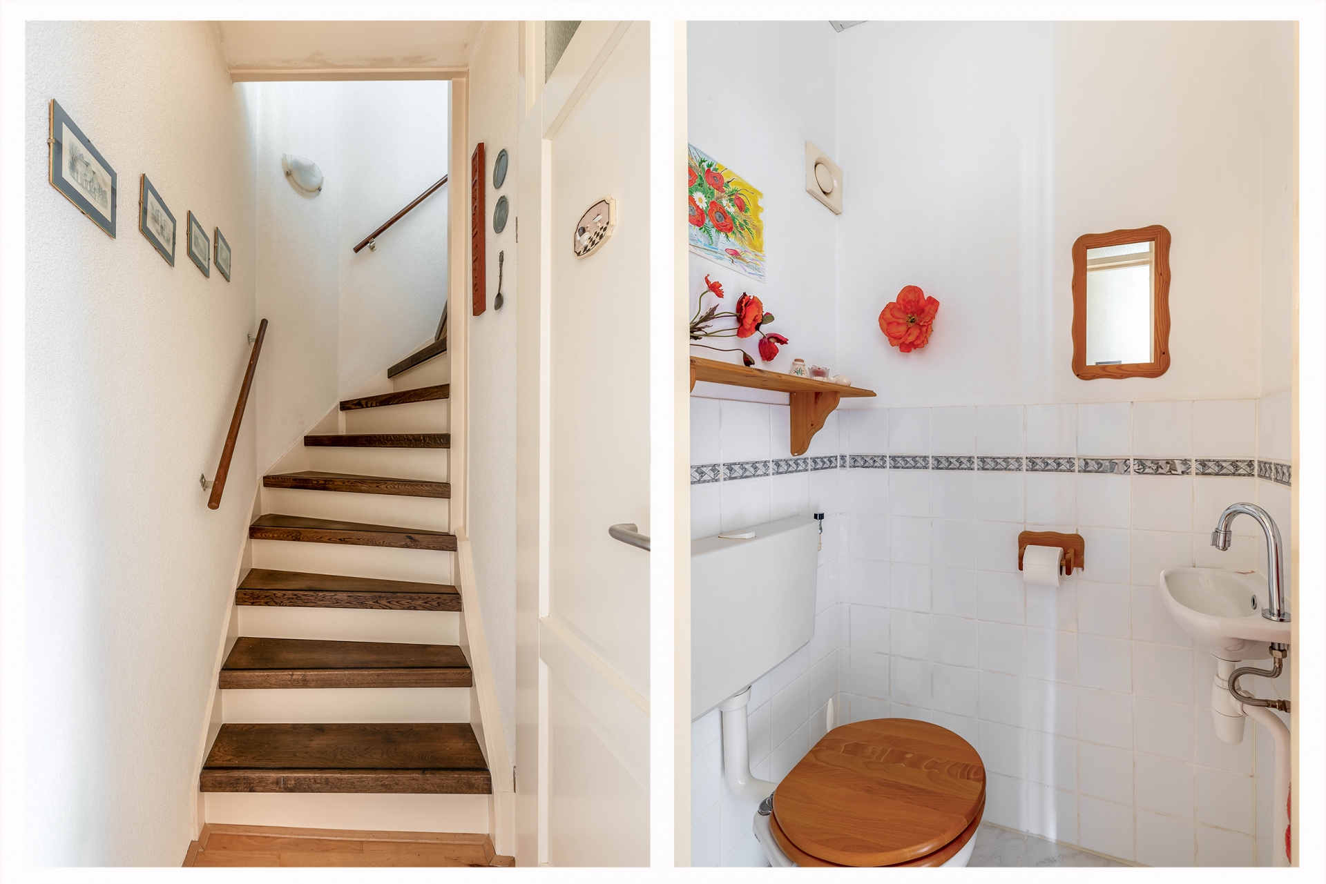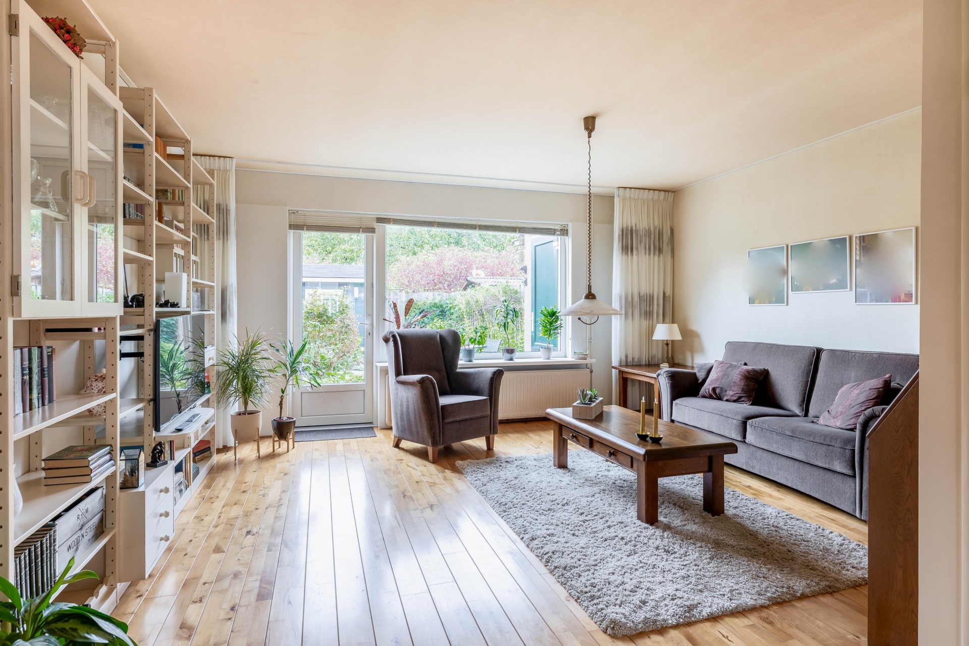 Bij binnenkomst in de hal valt direct de fijne lichtinval op. De hal biedt voldoende ruimte voor jassen en schoenen en is er een vliering aanwezig voor extra bergruimte. De woonkamer is ruim opgezet en heeft een prettige doorzonindeling. Dankzij het grote raam en de deur naar de tuin voelt de ruimte nog ruimer aan. De houten vloer geeft warmte en karakter, terwijl de neutrale afwerking zorgt voor een rustige basis waar je zó je eigen draai aan kunt geven. Vanuit de zithoek kijk je mooi uit op het groen in de achtertuin – privacy gegarandeerd.