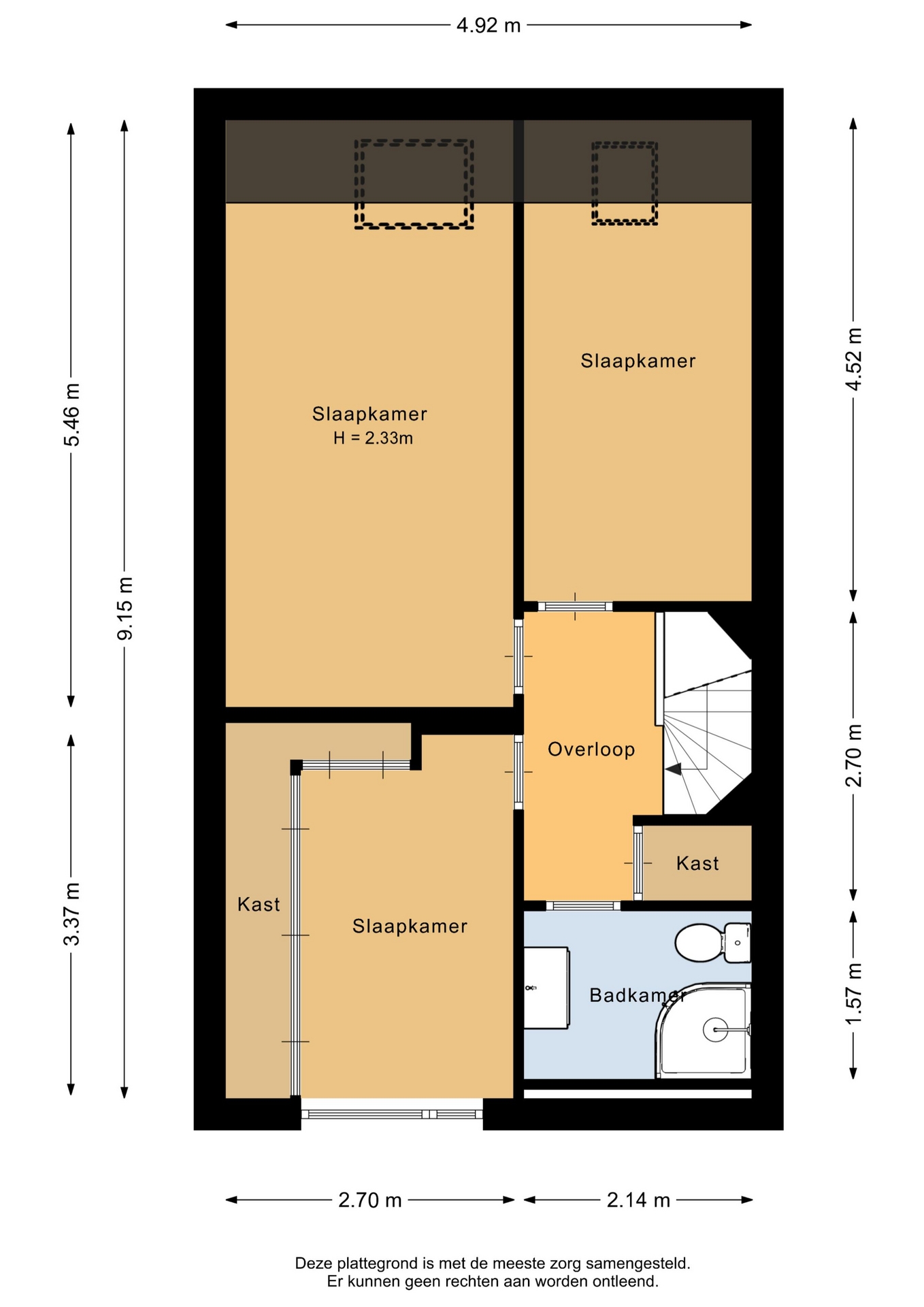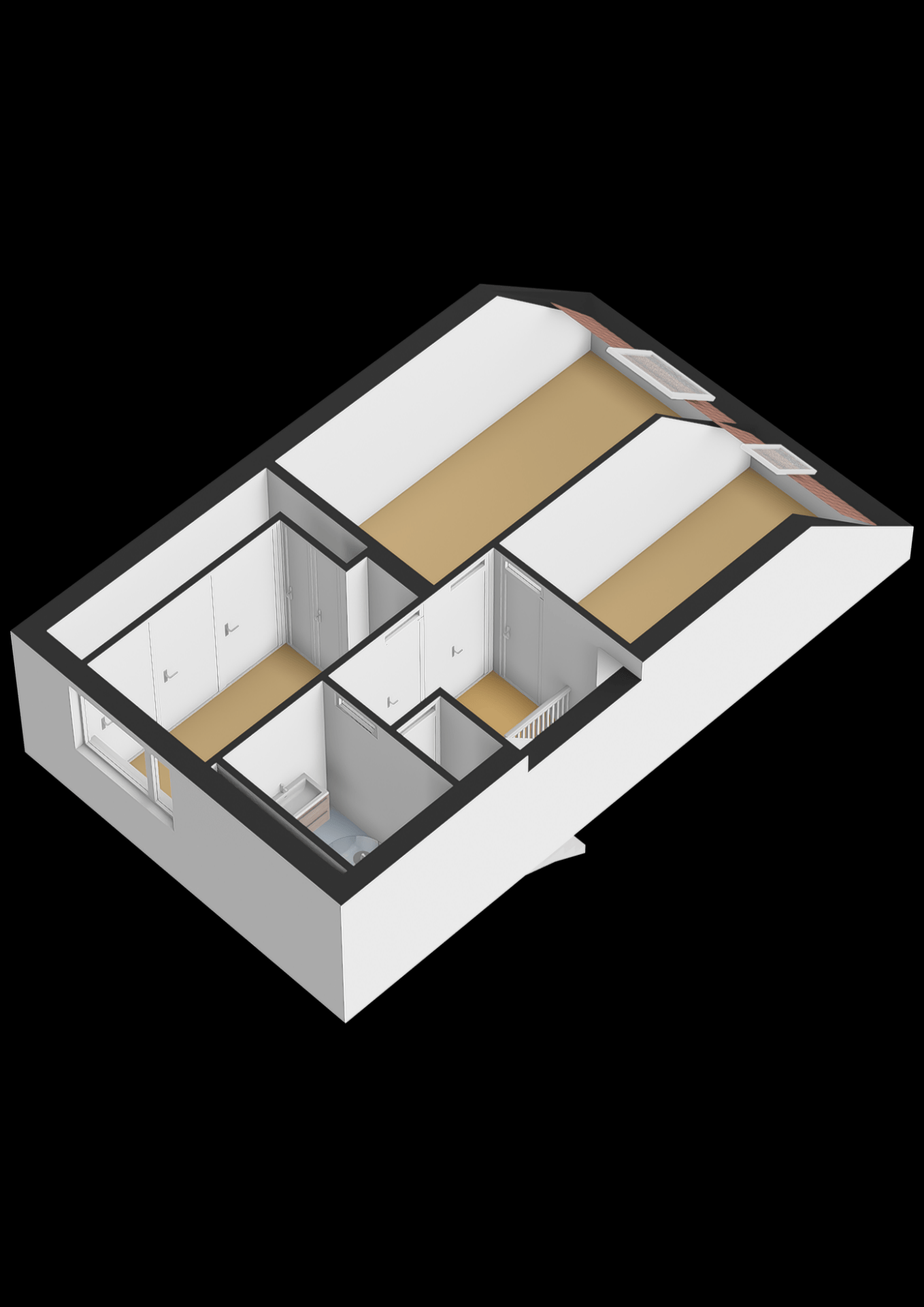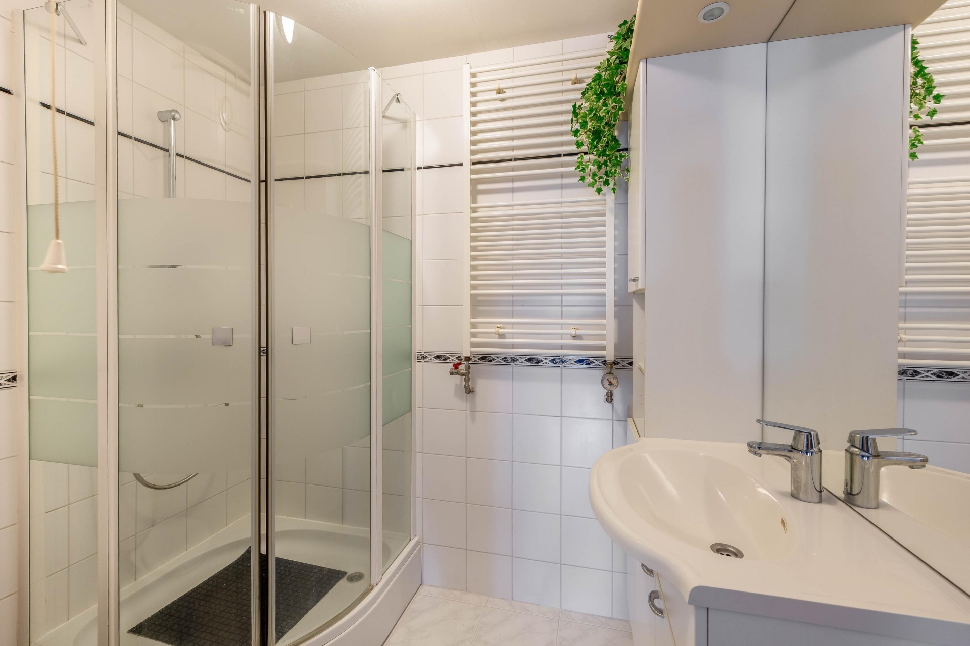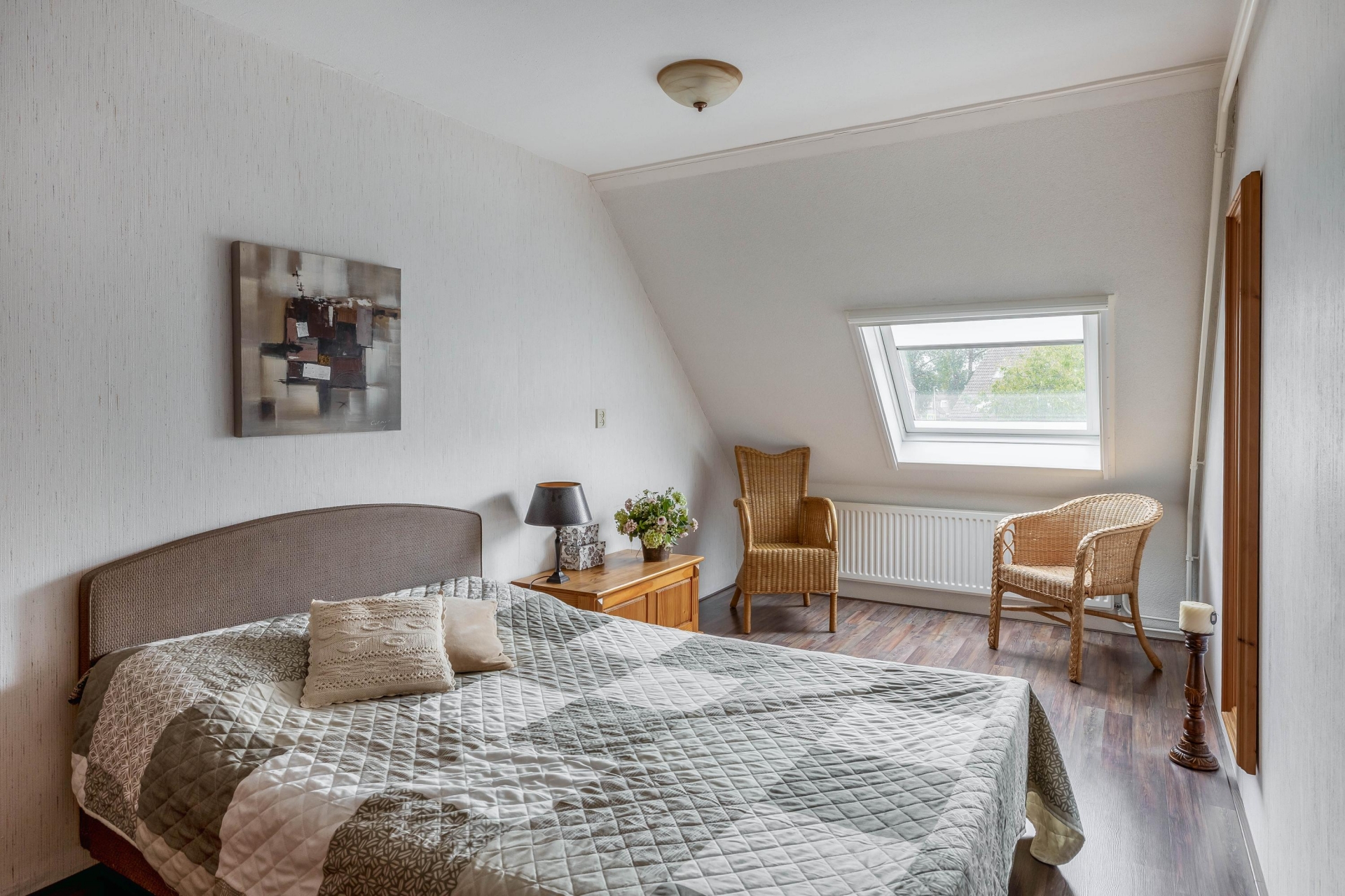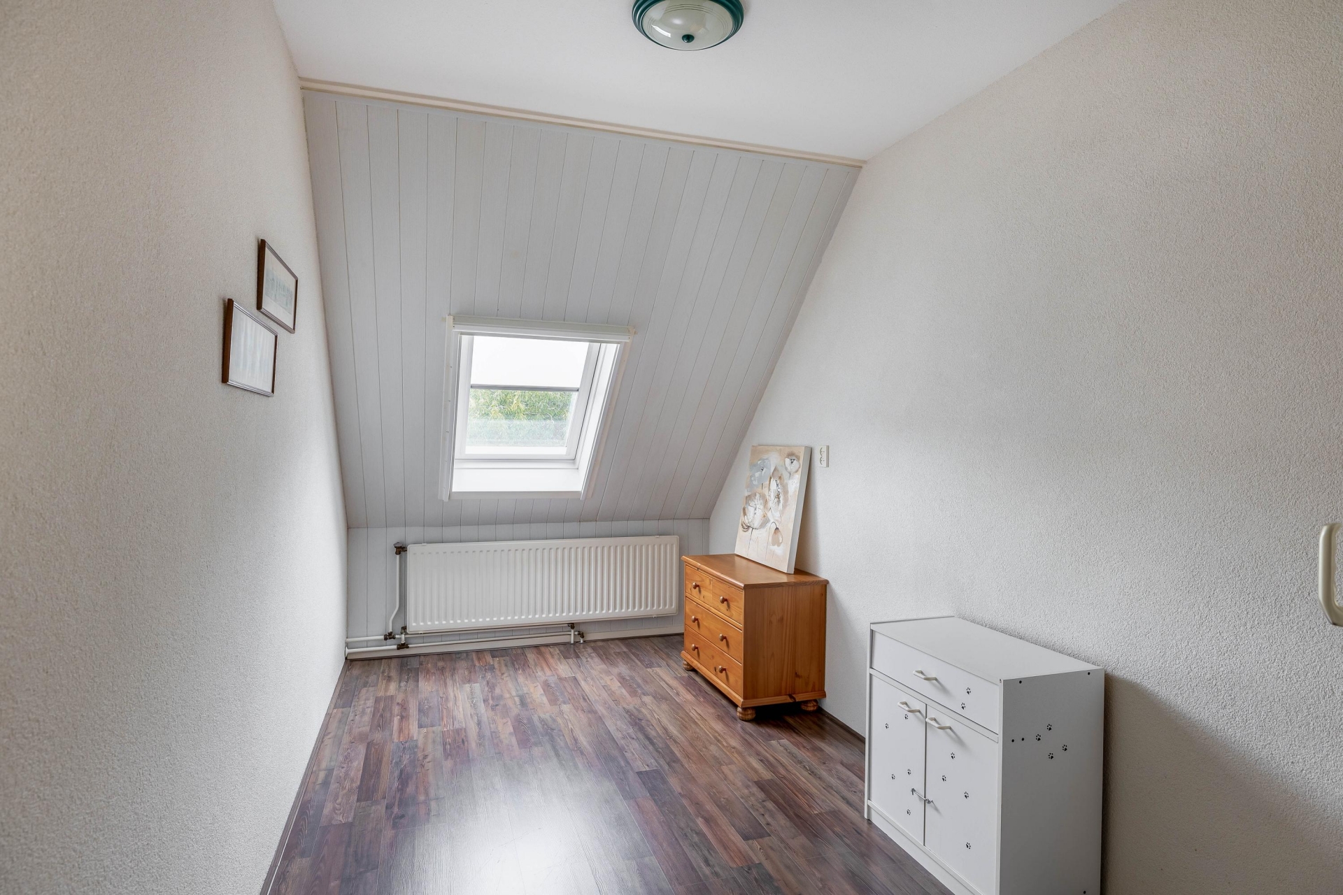 Op de eerste verdieping bevinden zich drie slaapkamers, allemaal van goed formaat. De grootste slaapkamer ligt aan de achterzijde en biedt uitzicht op de tuin. De twee overige kamers zijn ideaal als kinderkamer, logeerkamer of thuiskantoor. De badkamer is compact maar praktisch ingedeeld met douche, wastafel en toilet.